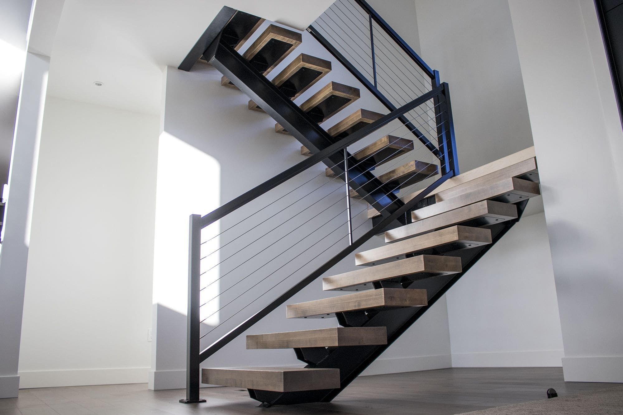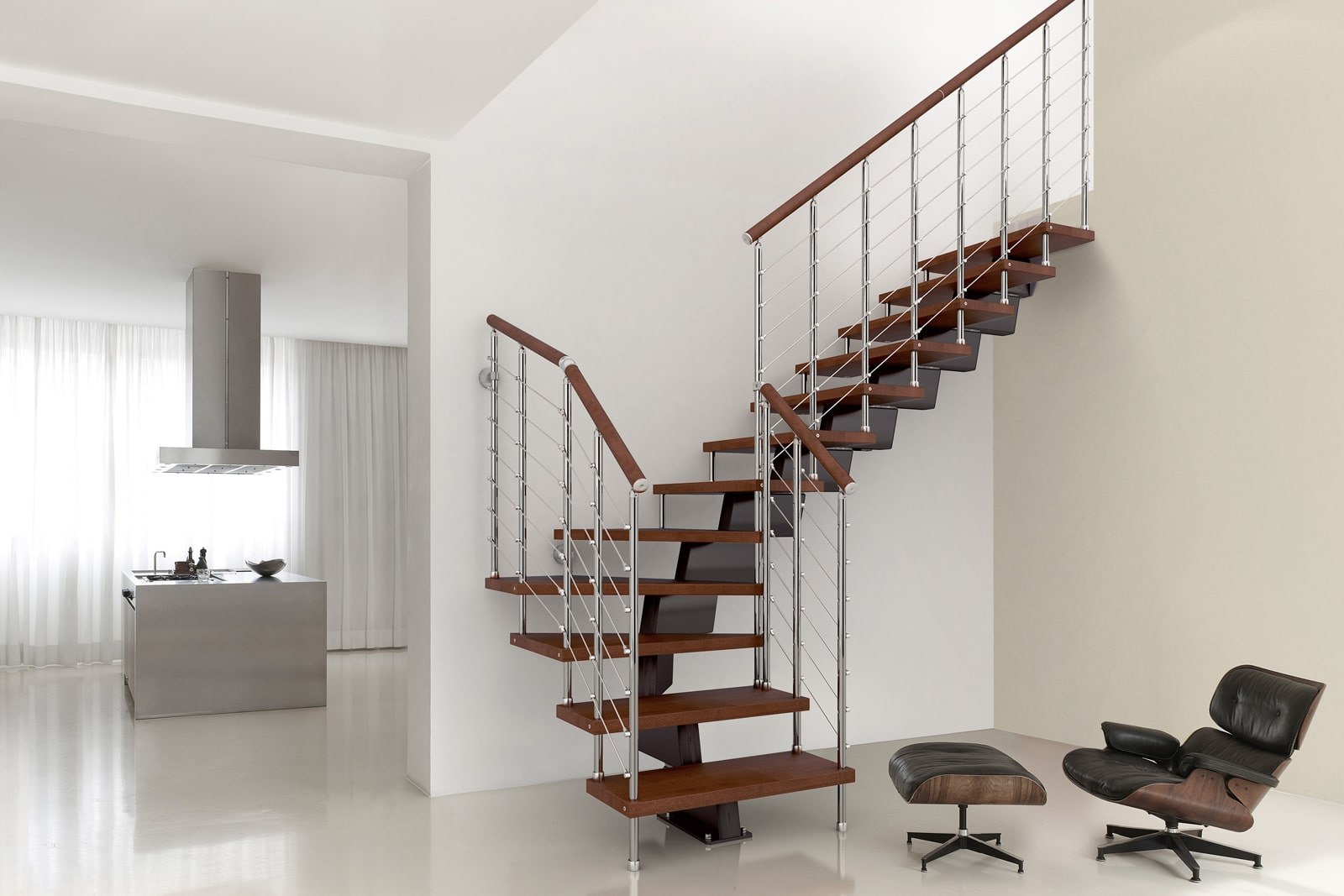 Лестница на металлокаркасе с забежными ступенями на 90 градусов