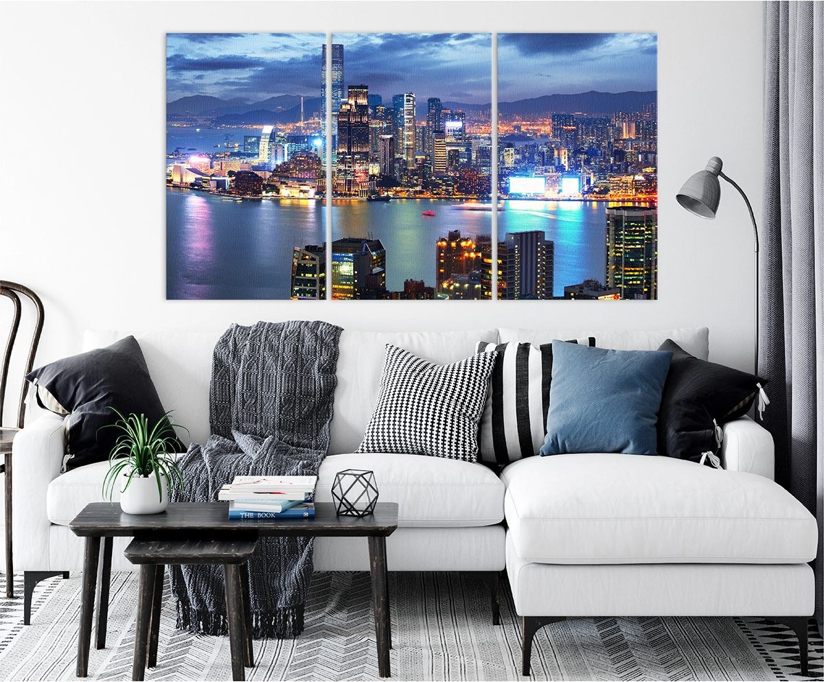 Модульная картина синий город в интерьере