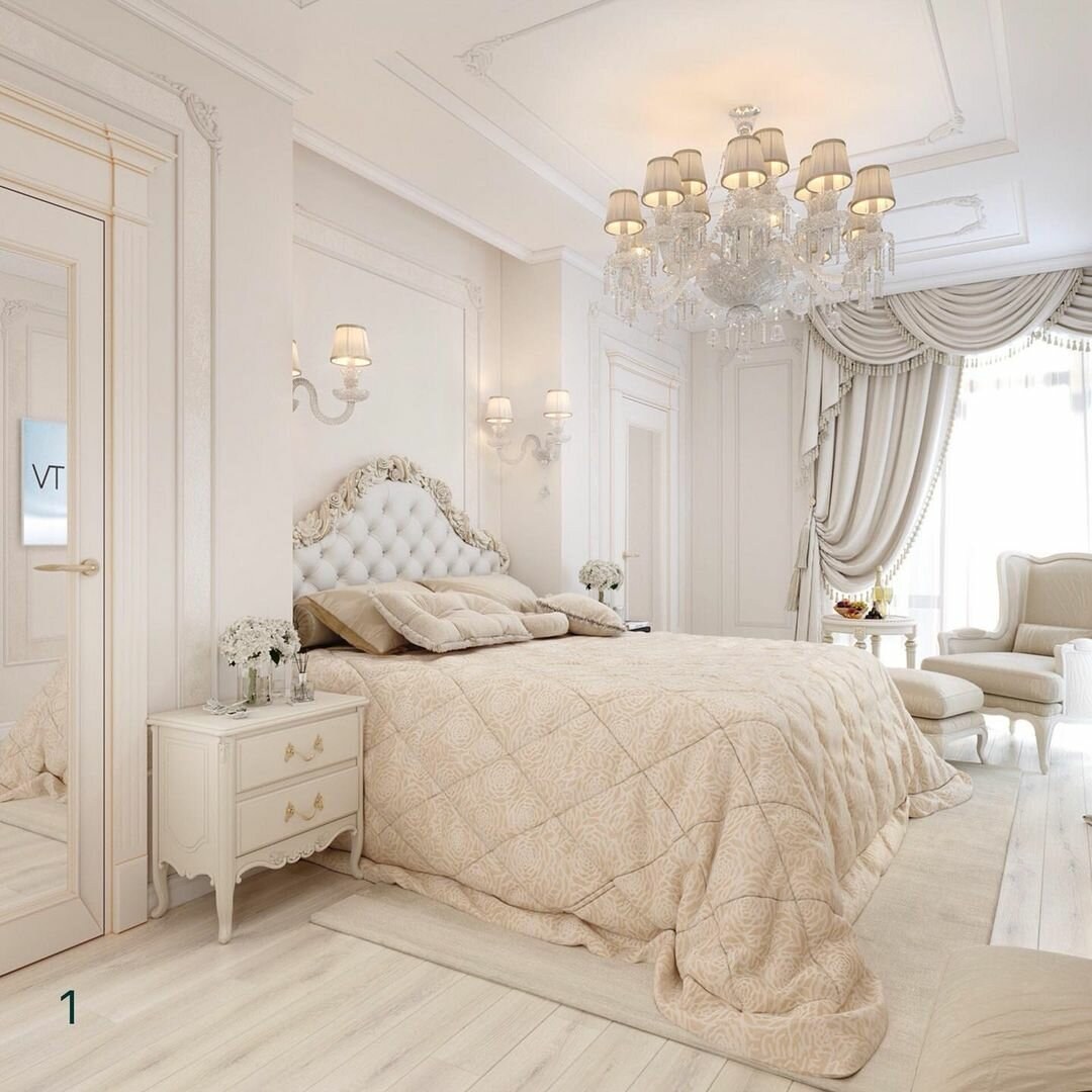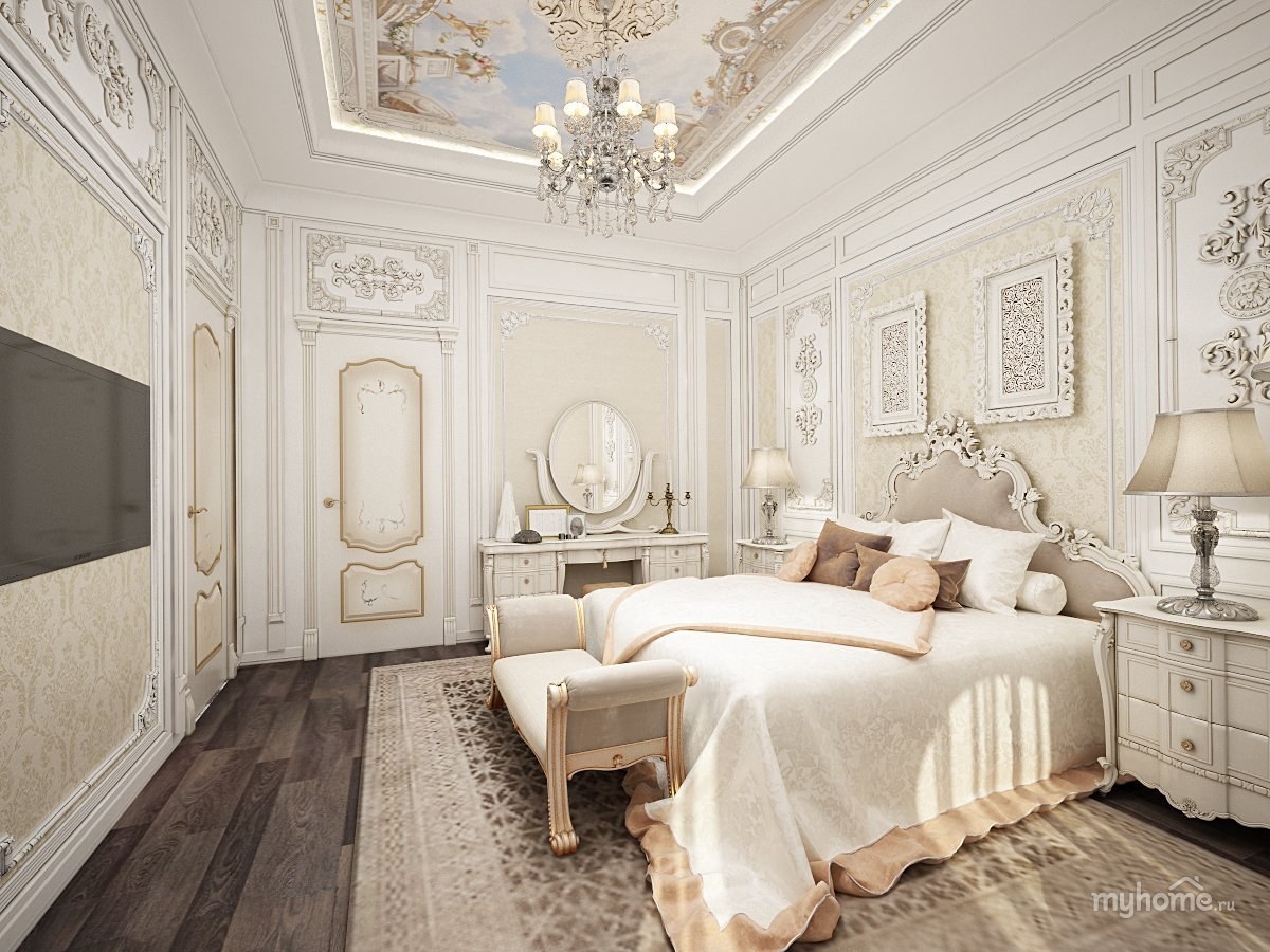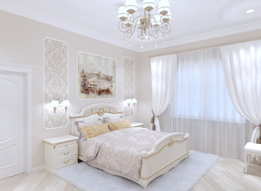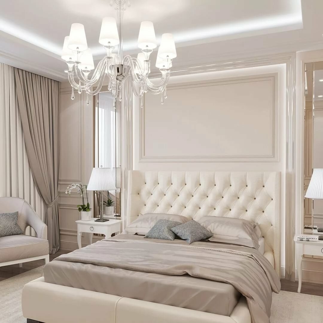 Спальня в классическом стиле в светлых тонах (59 фото)