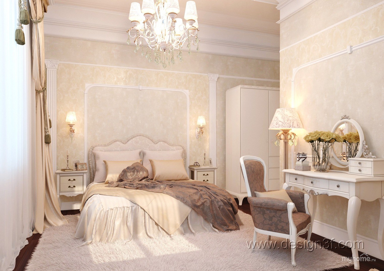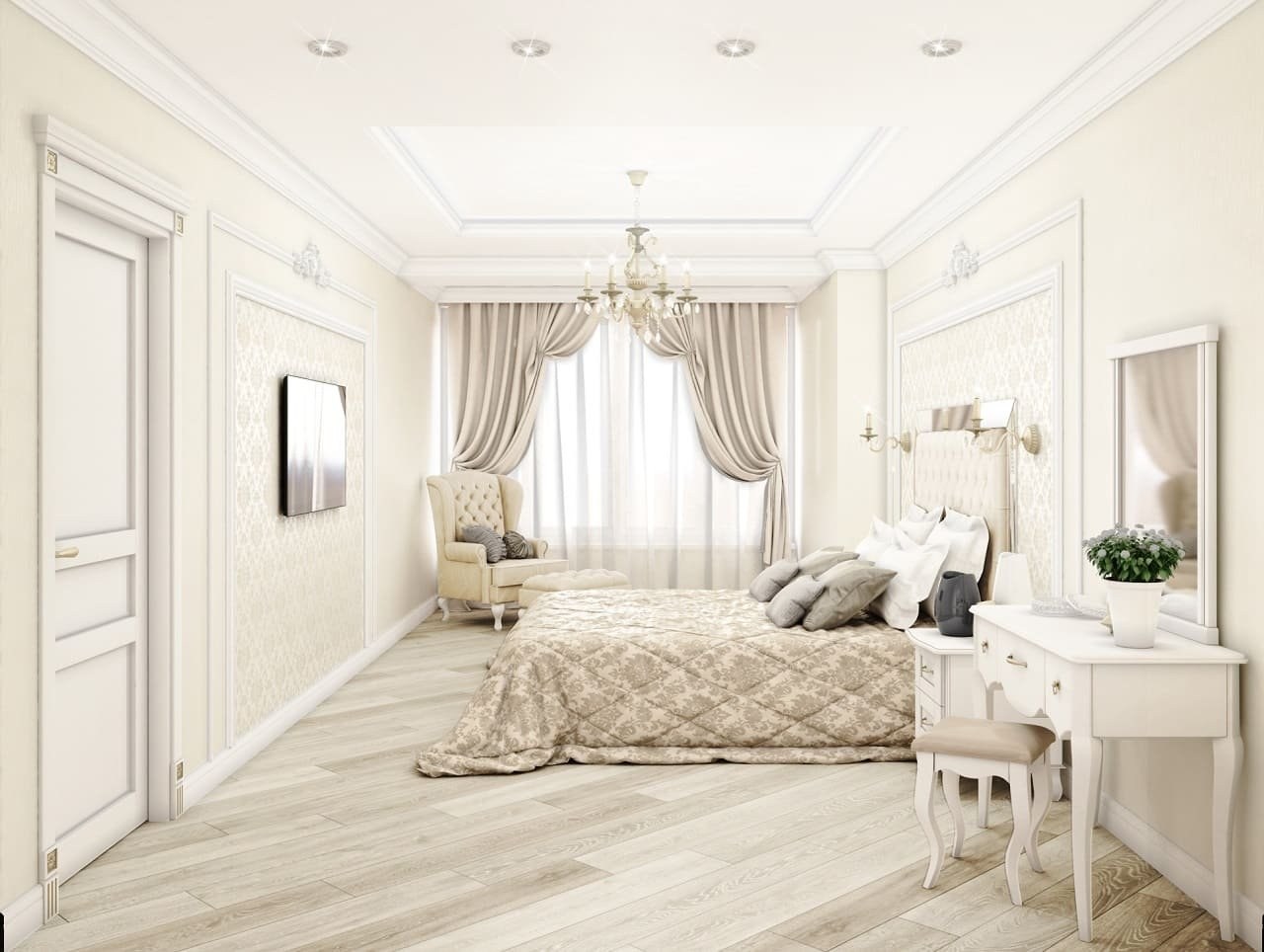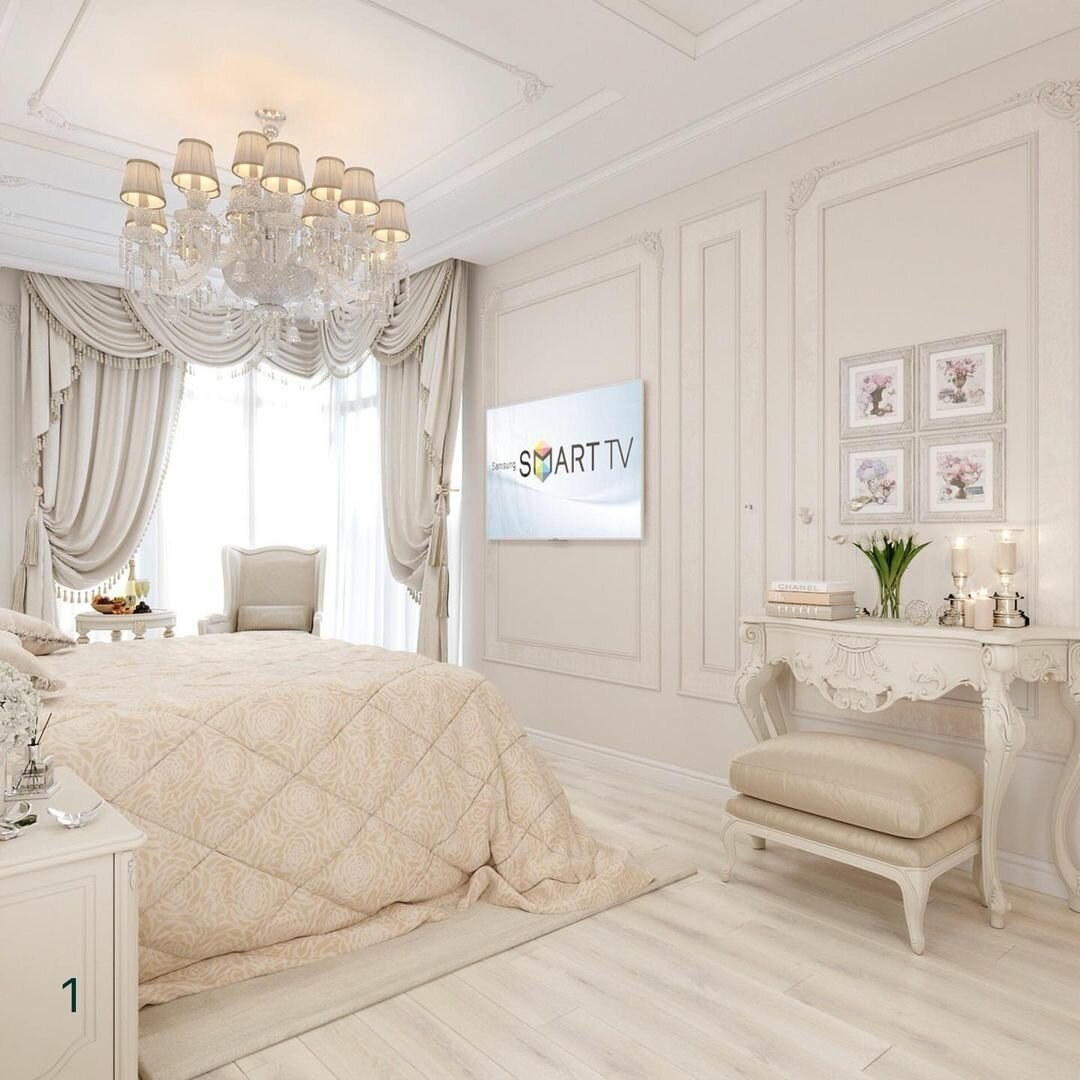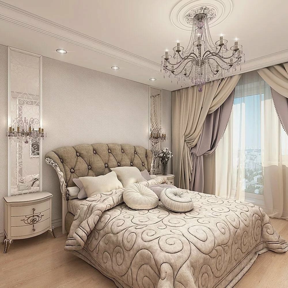 Спальня в классическом стиле в светлых тонах (59 фото)