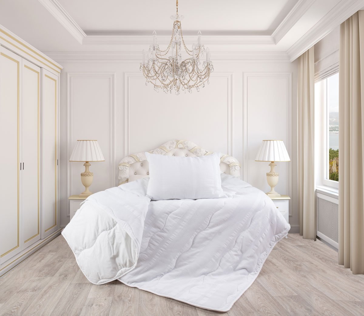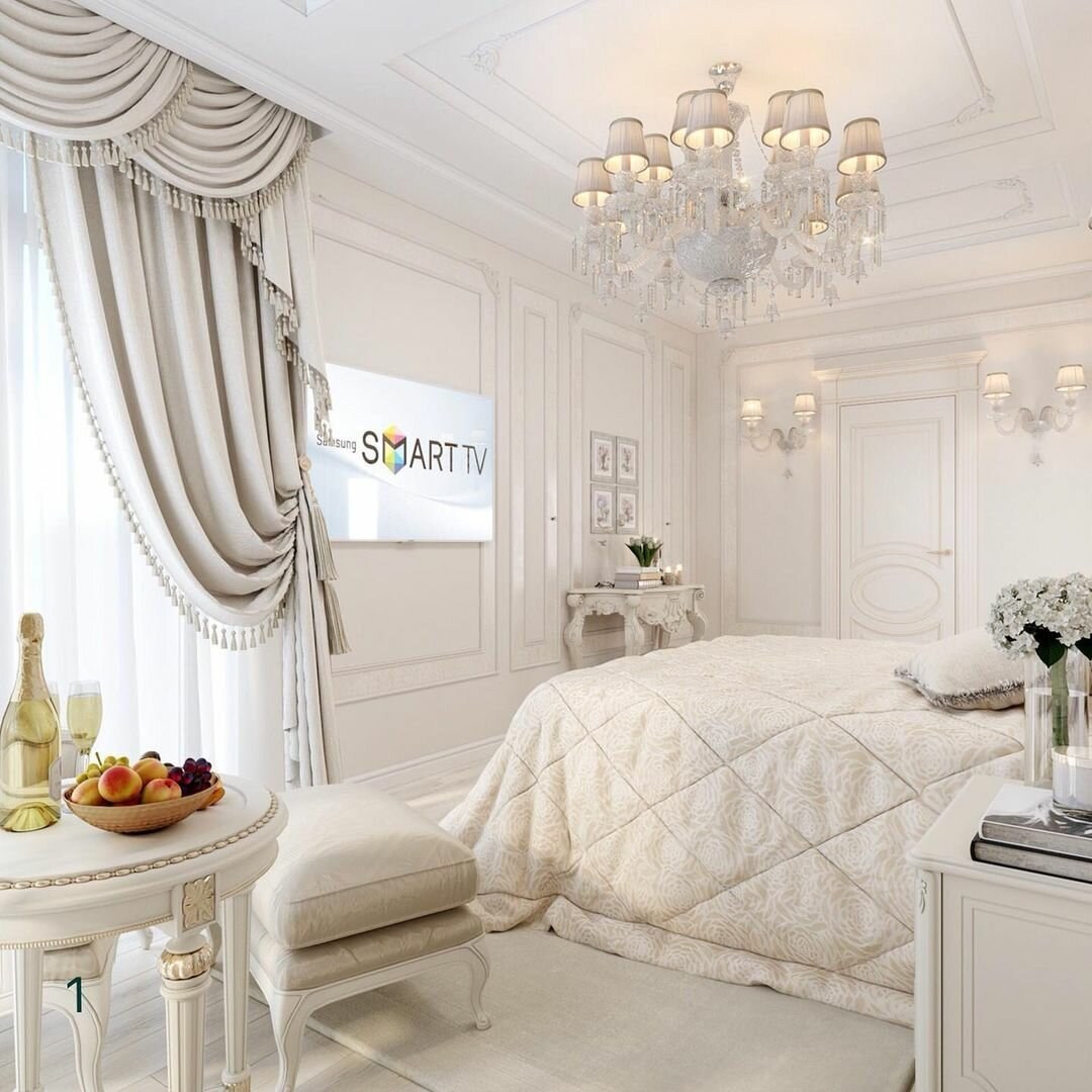 Белая спальня в классическом стиле