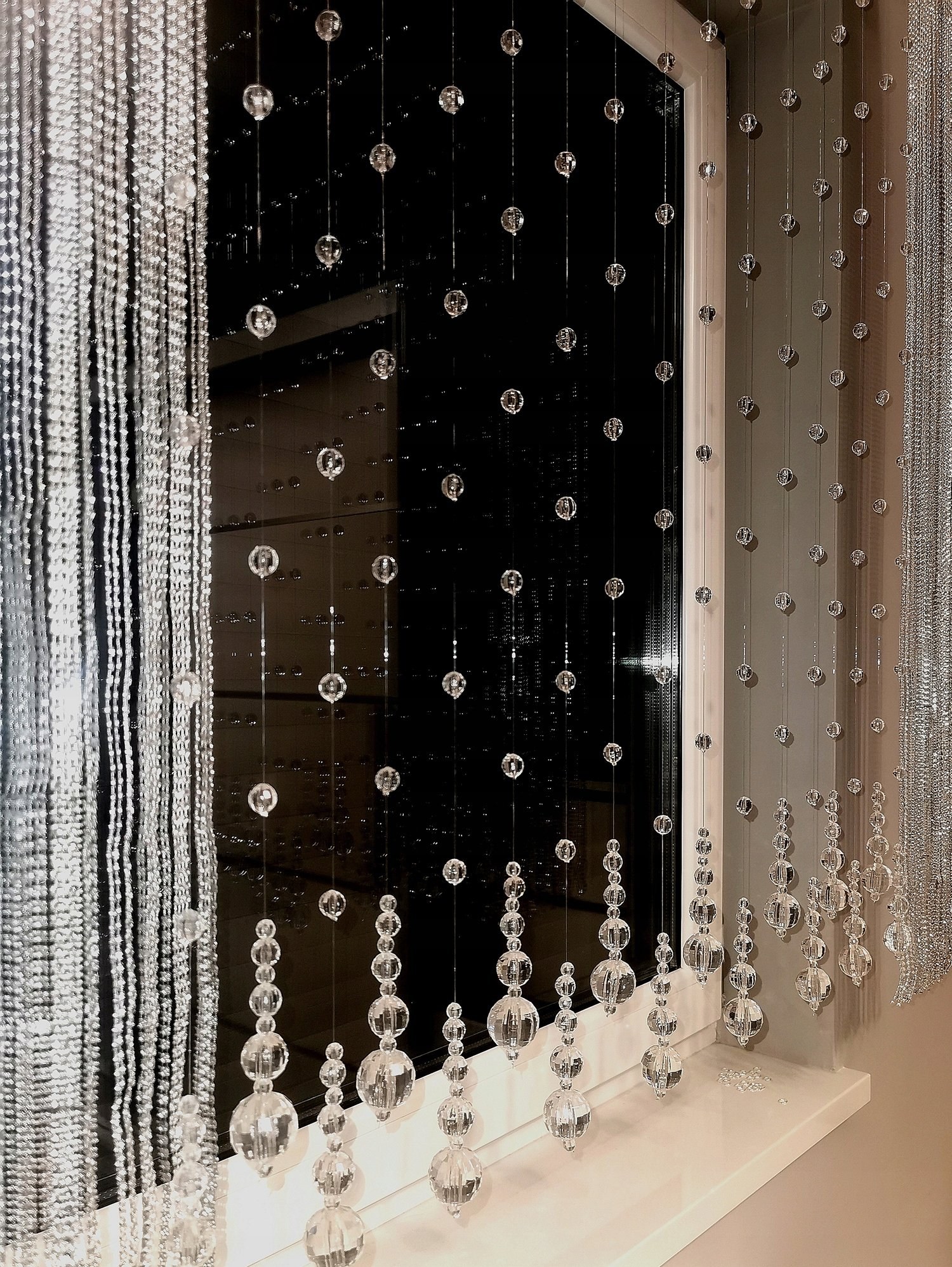 Кисея шторы нити блистер 9+111 (черные нити +белый Жемчужины )