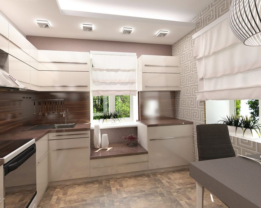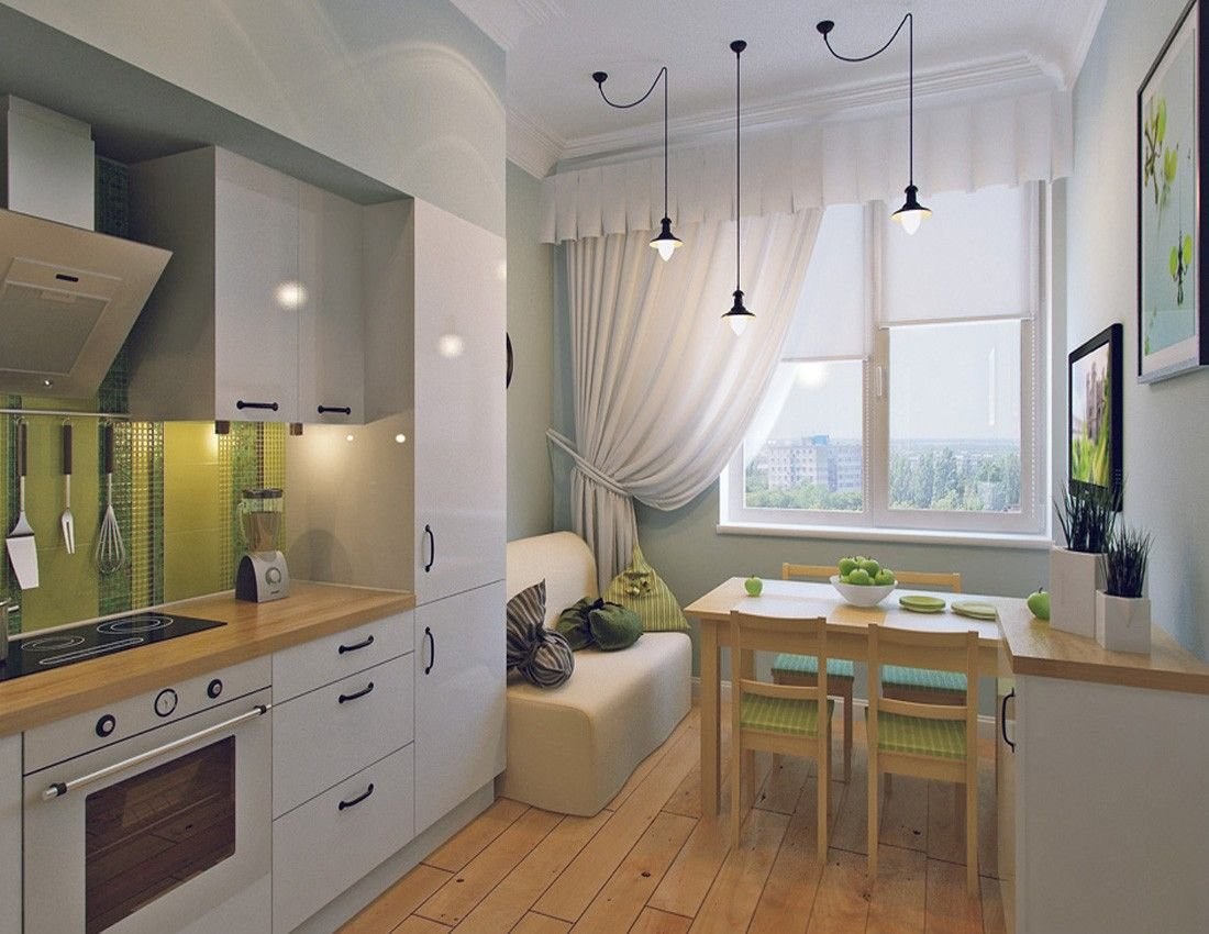 Интерьер кухни 11м2 с выходом на балкон квадратная