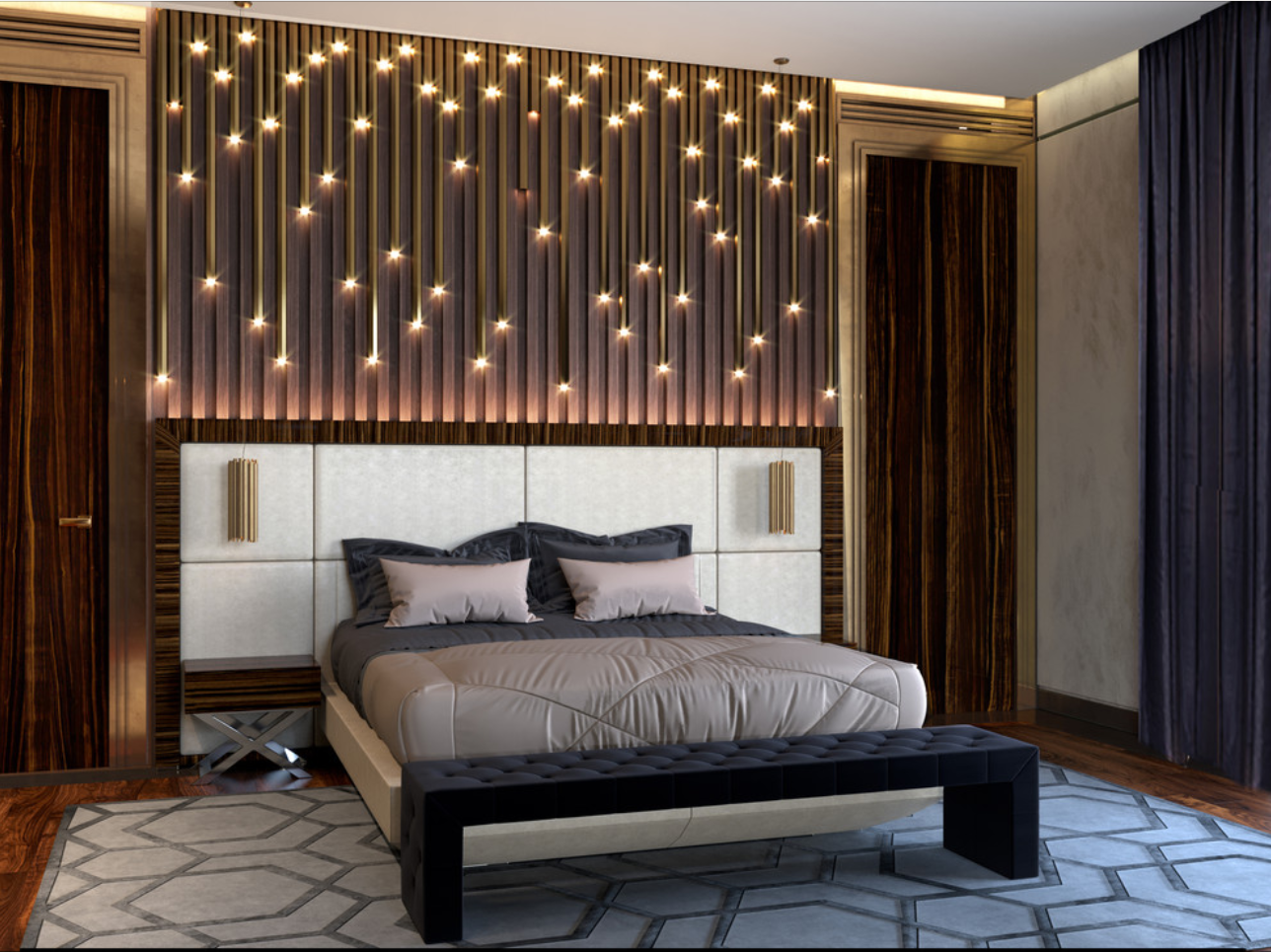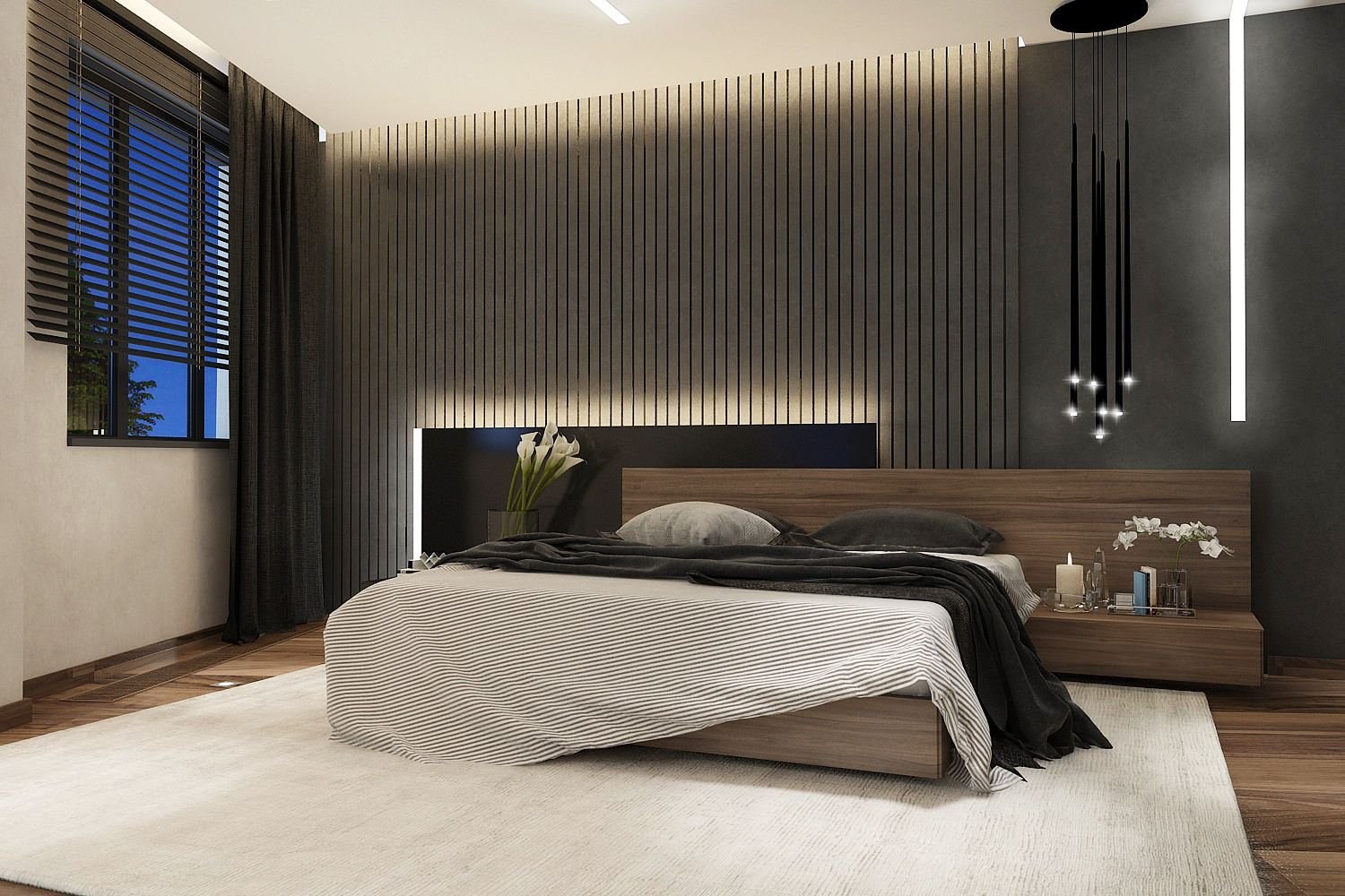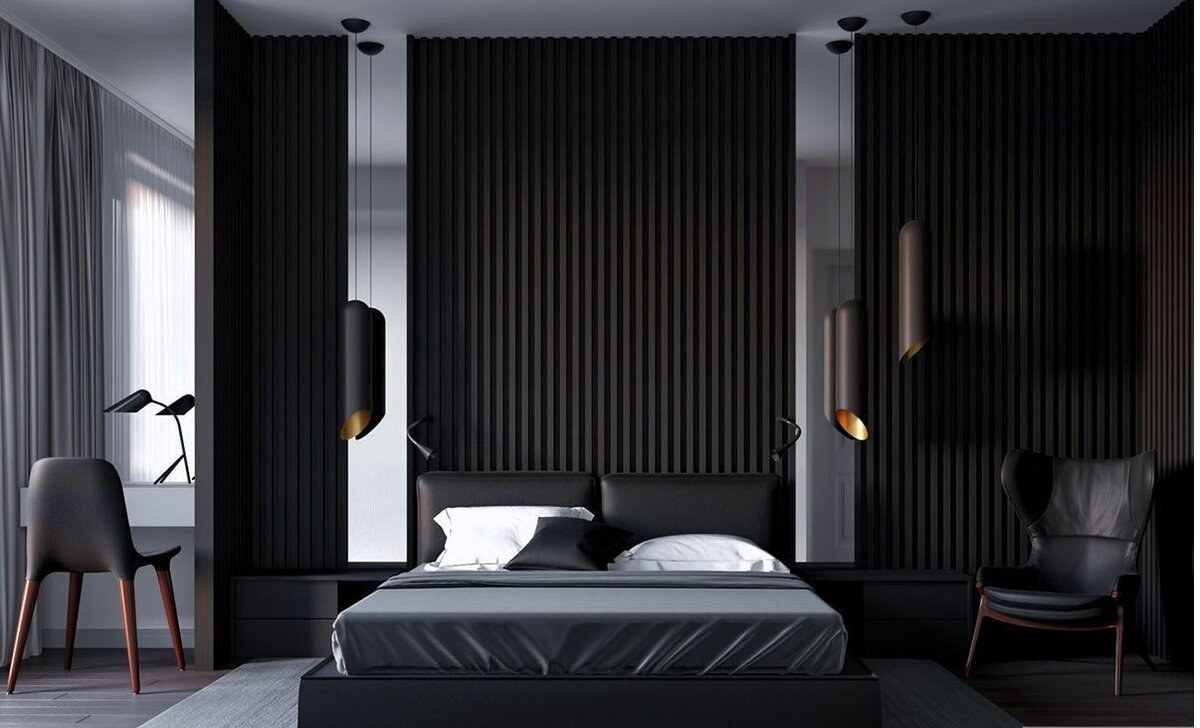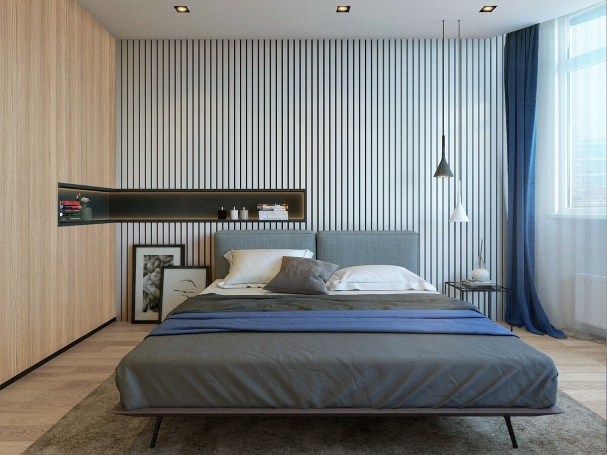 Спальня в современном стиле с рейками