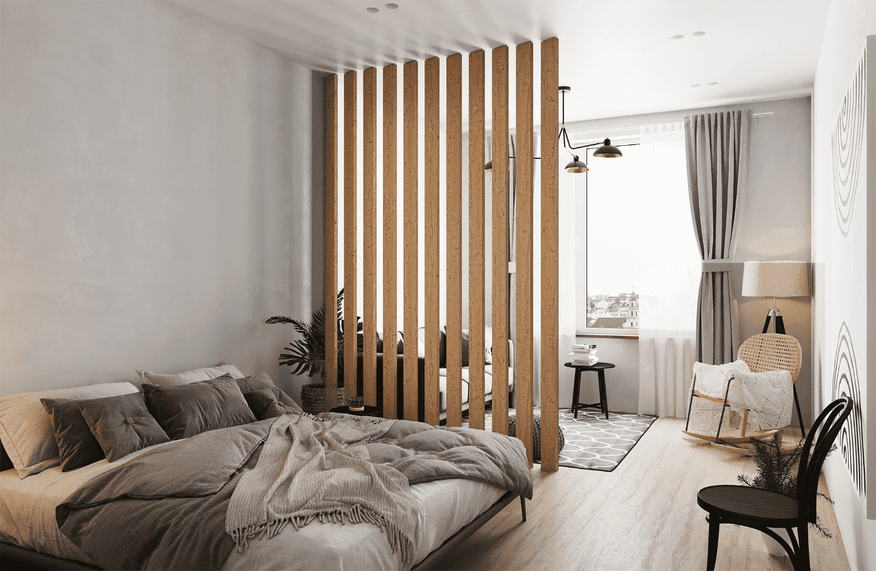 Деревянная перегородка в спальне