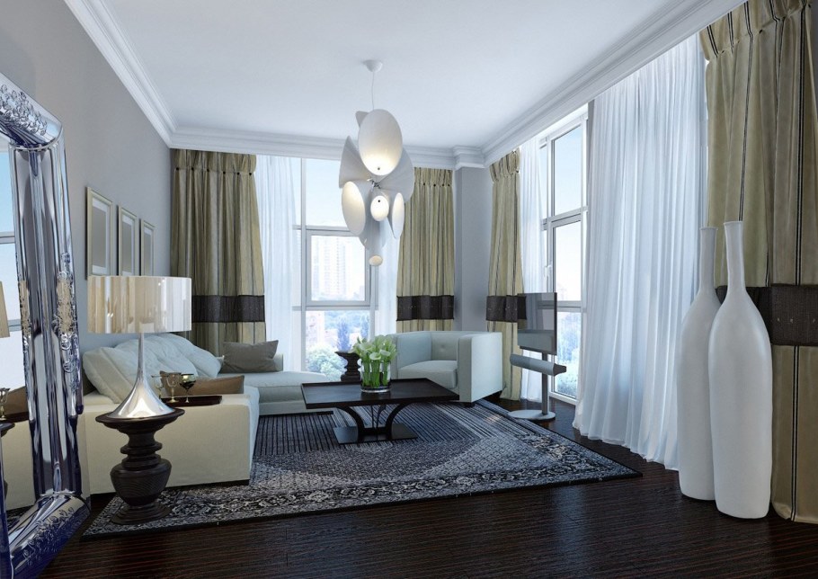 Шторы на угловые окна в гостиной