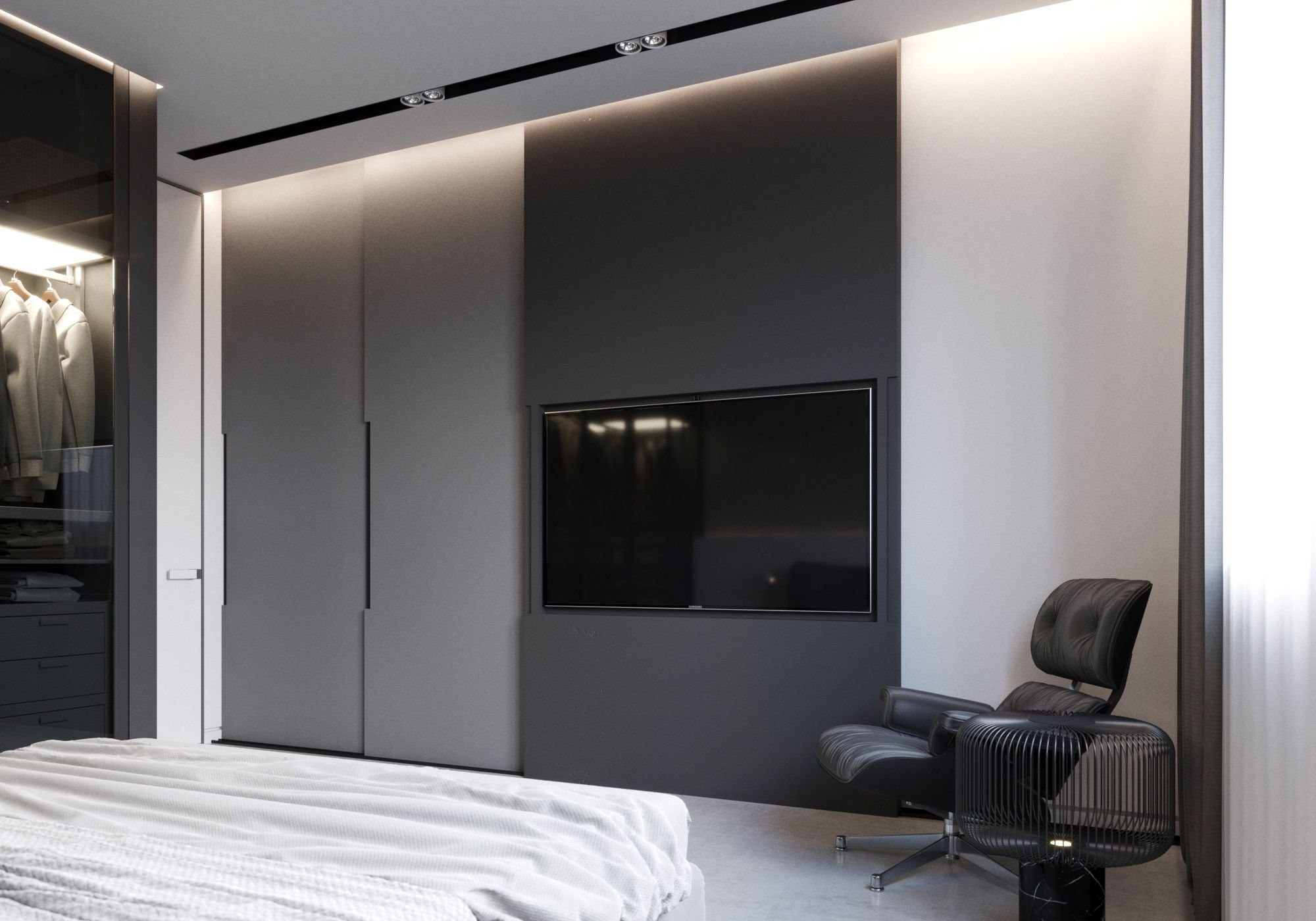 Телевизор встроенный в шкаф в спальне