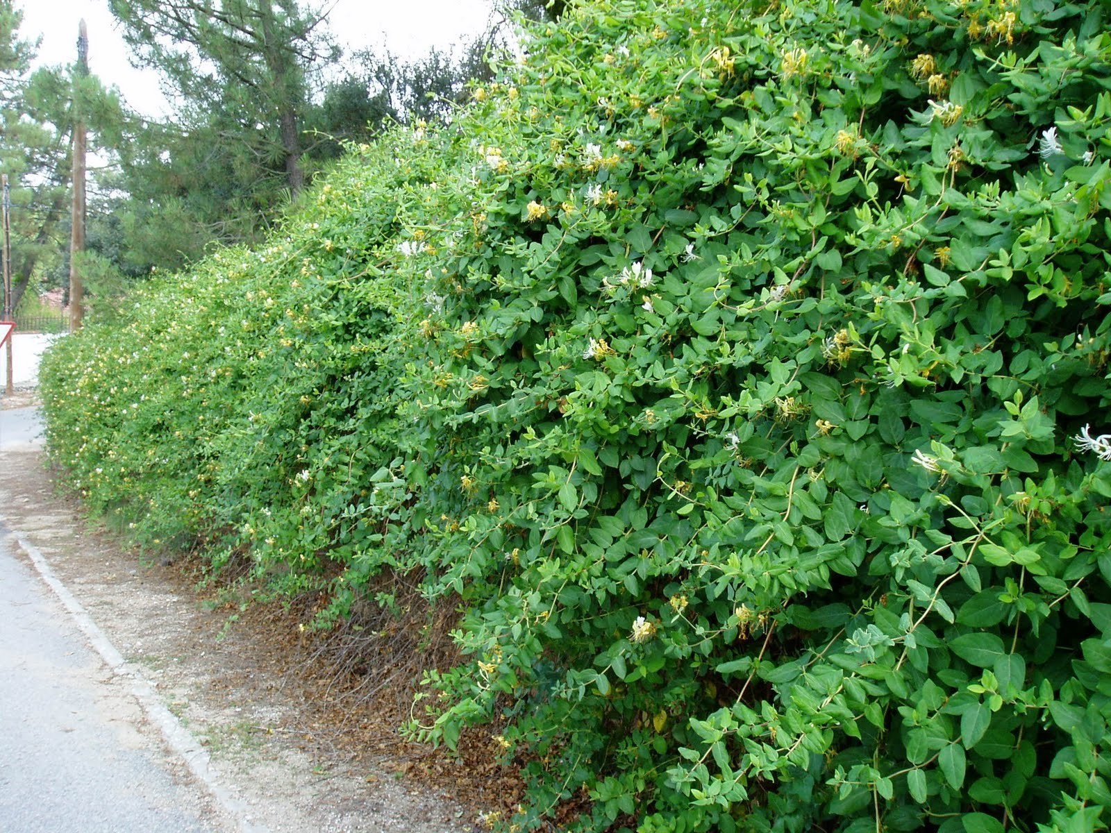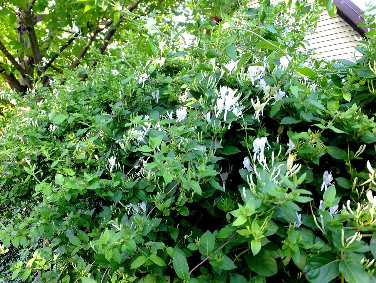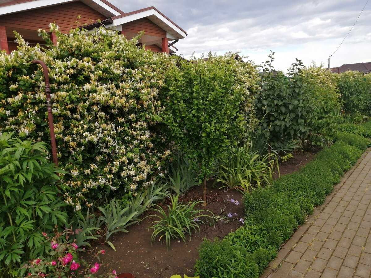 Жимолость каприфоль вдоль забора