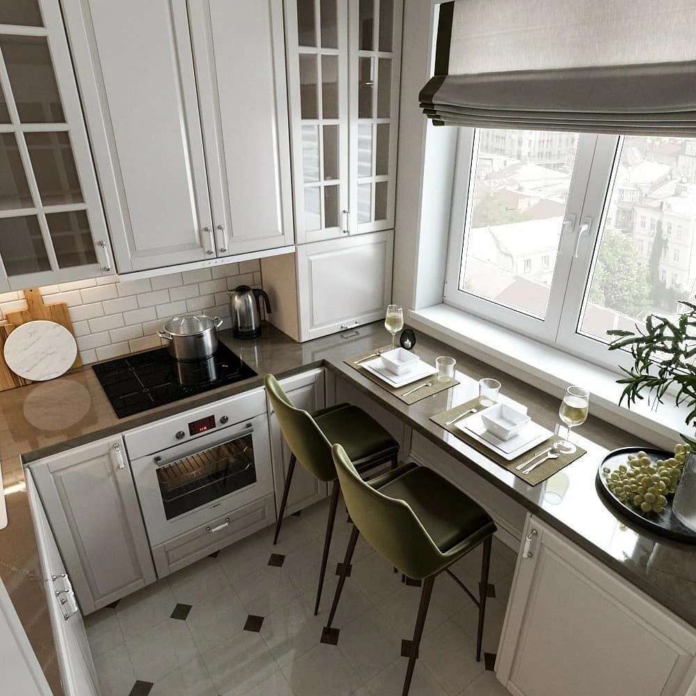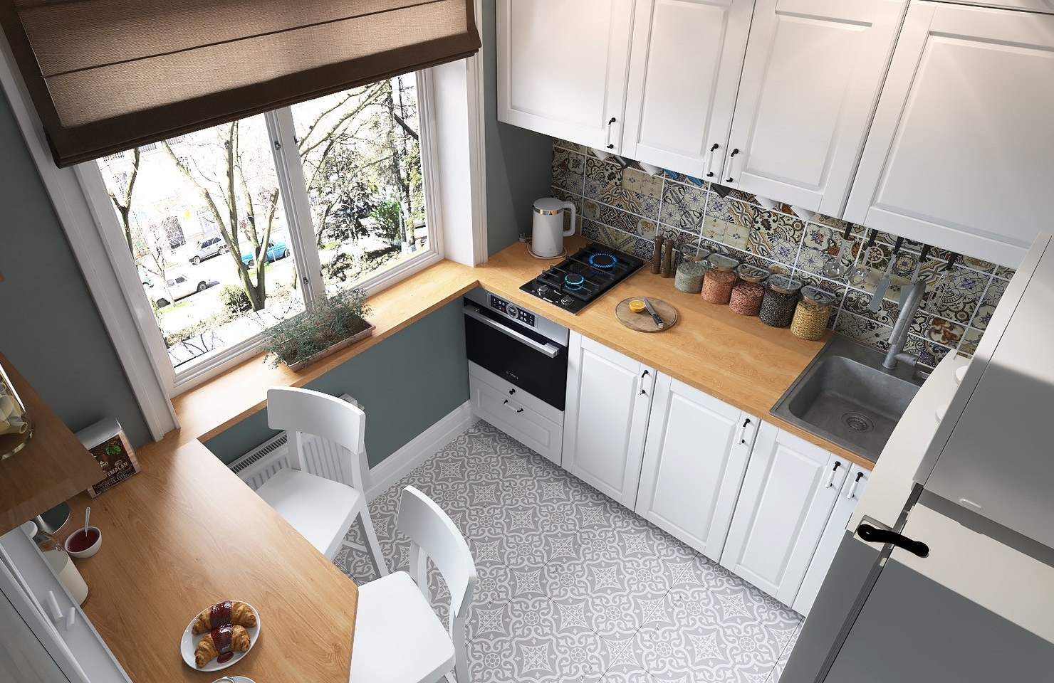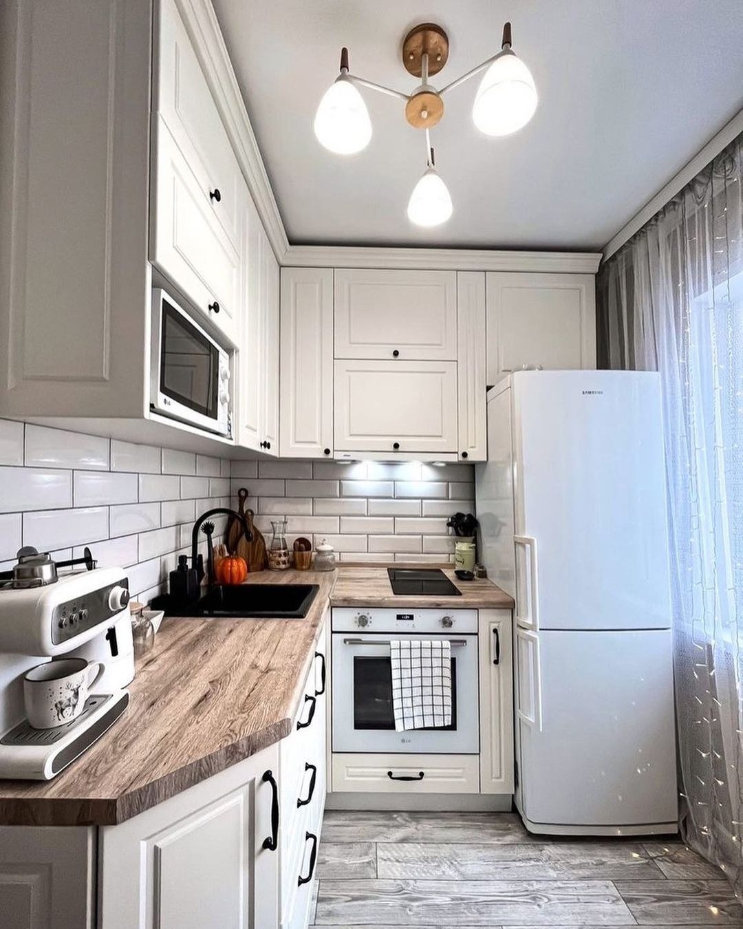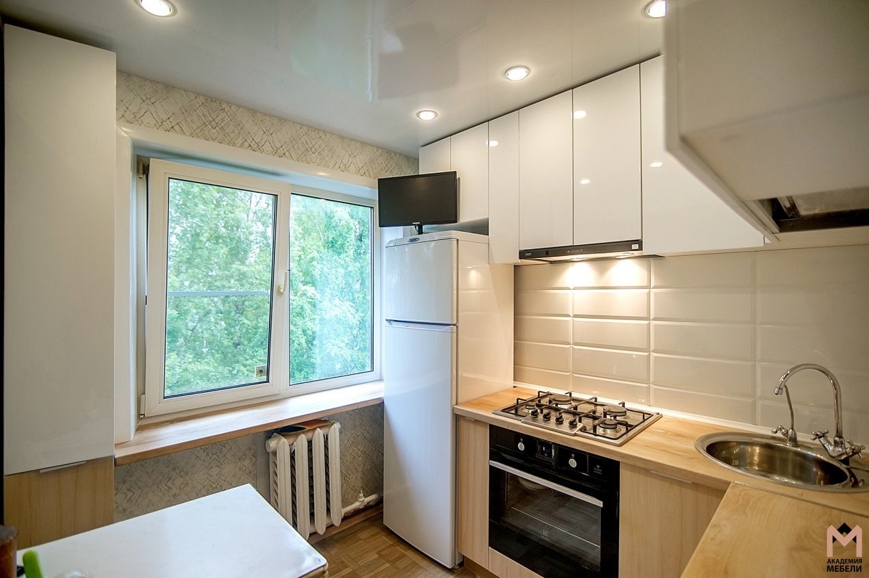 Интерьер маленькой кухни 9 квадратных метров с холодильником и окном (57 фото)