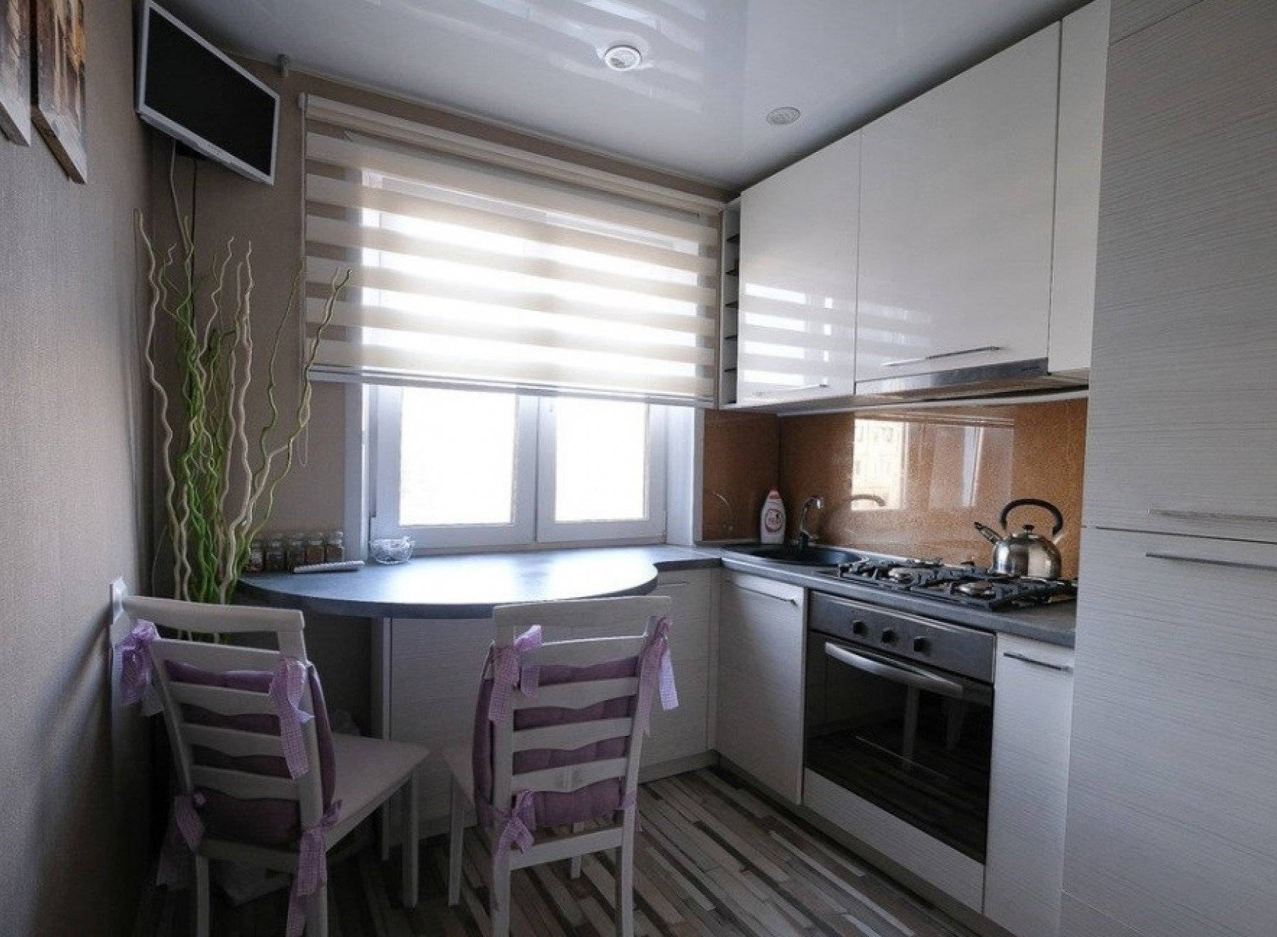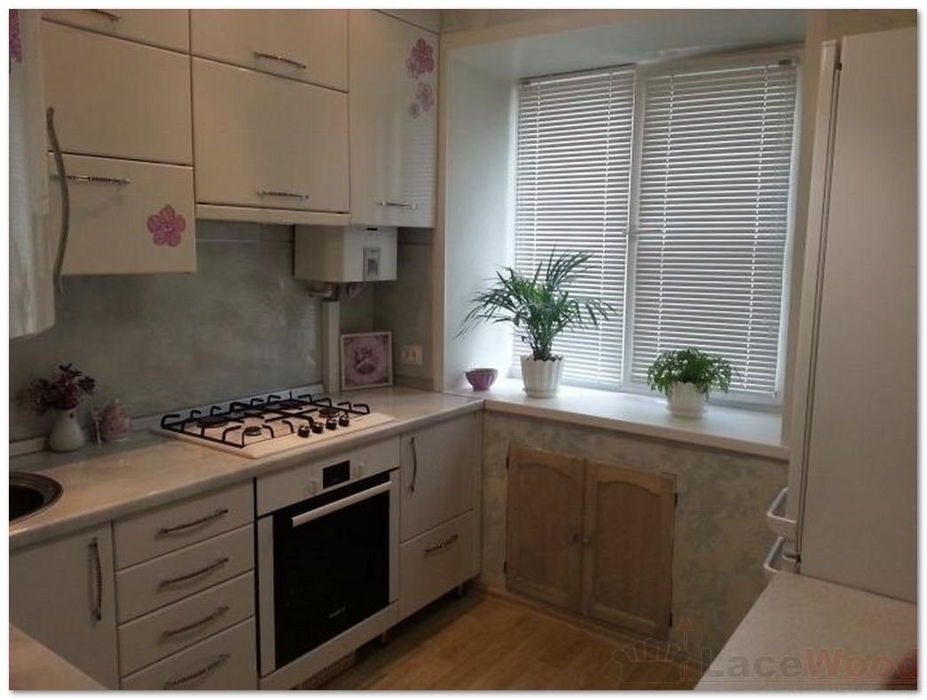 Кухни 5.5м в хрущевке с холодильником и колонкой