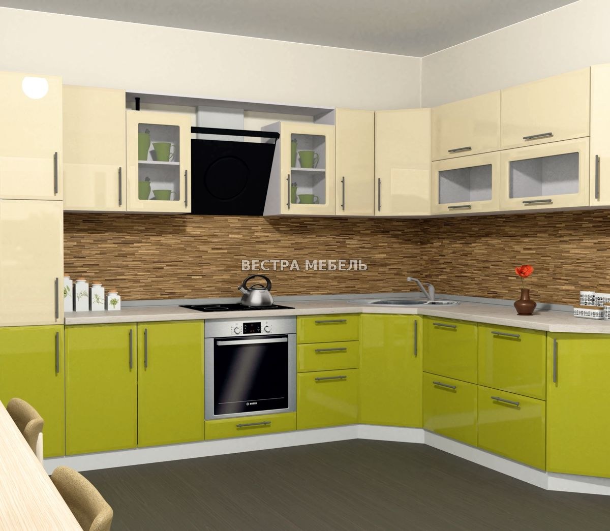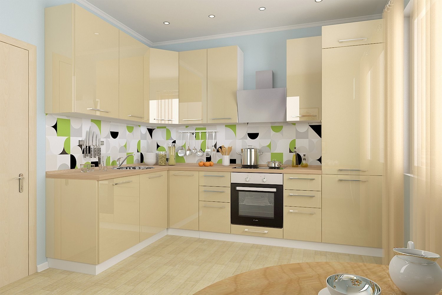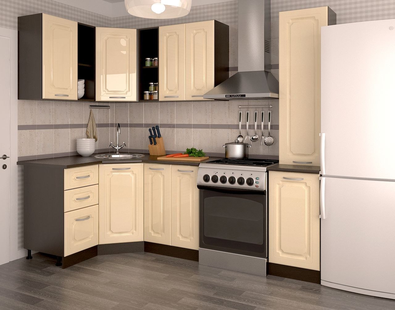 Кухни угловые цвет ваниль глянец
