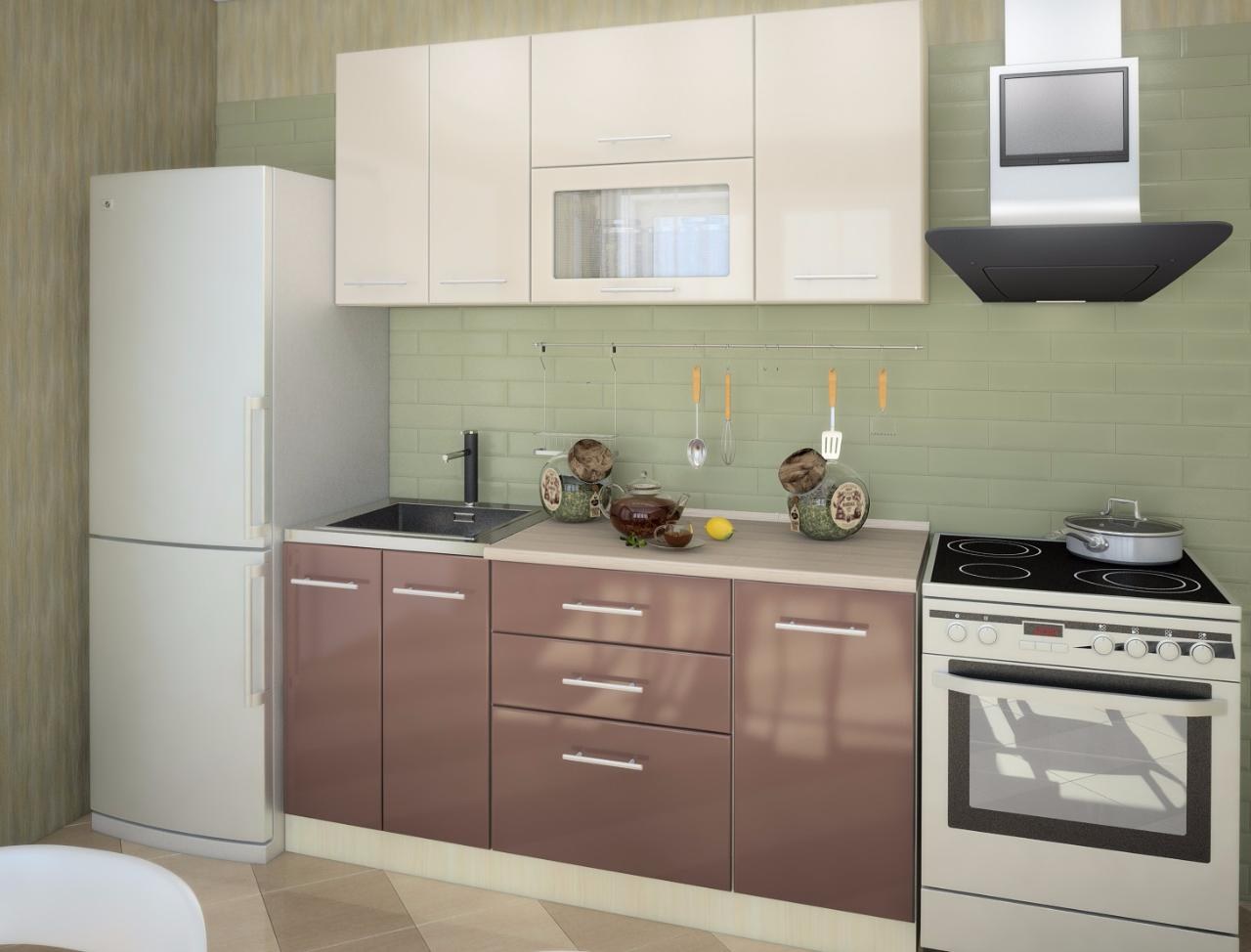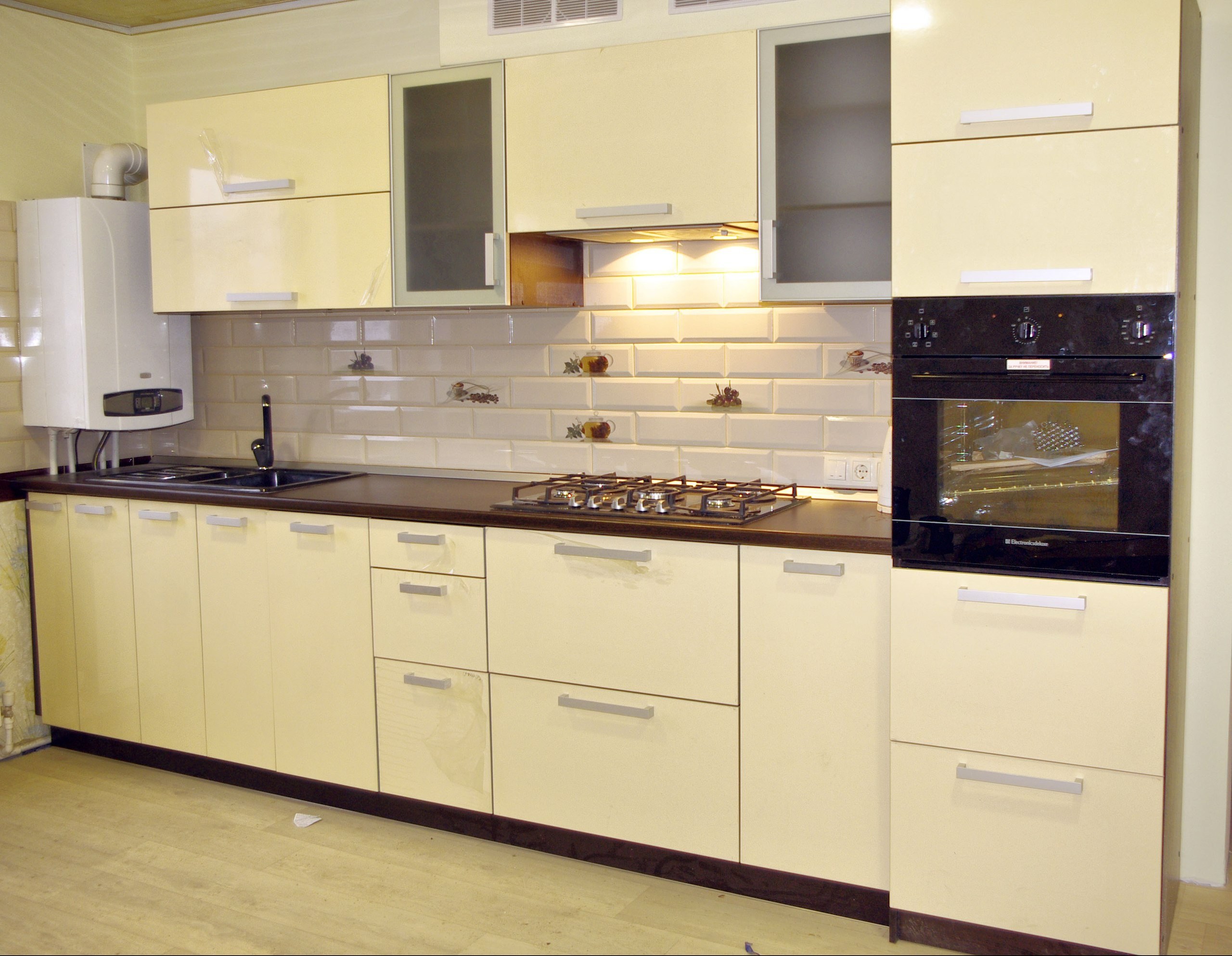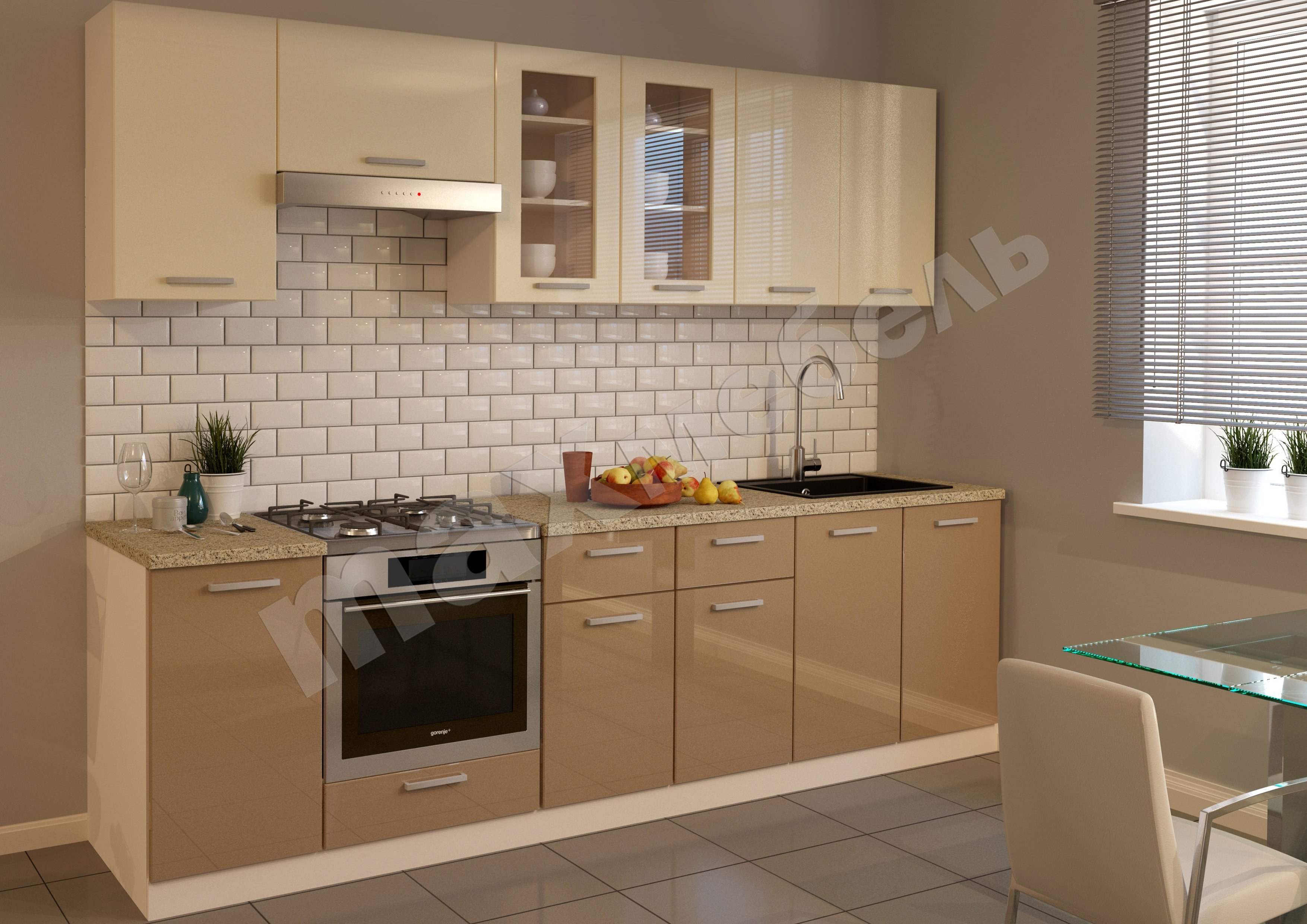 Кухонный гарнитур "волна" ваниль глянец/капучино 2200