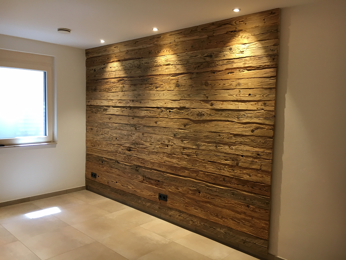 Стена из амбарной доски в интерьере