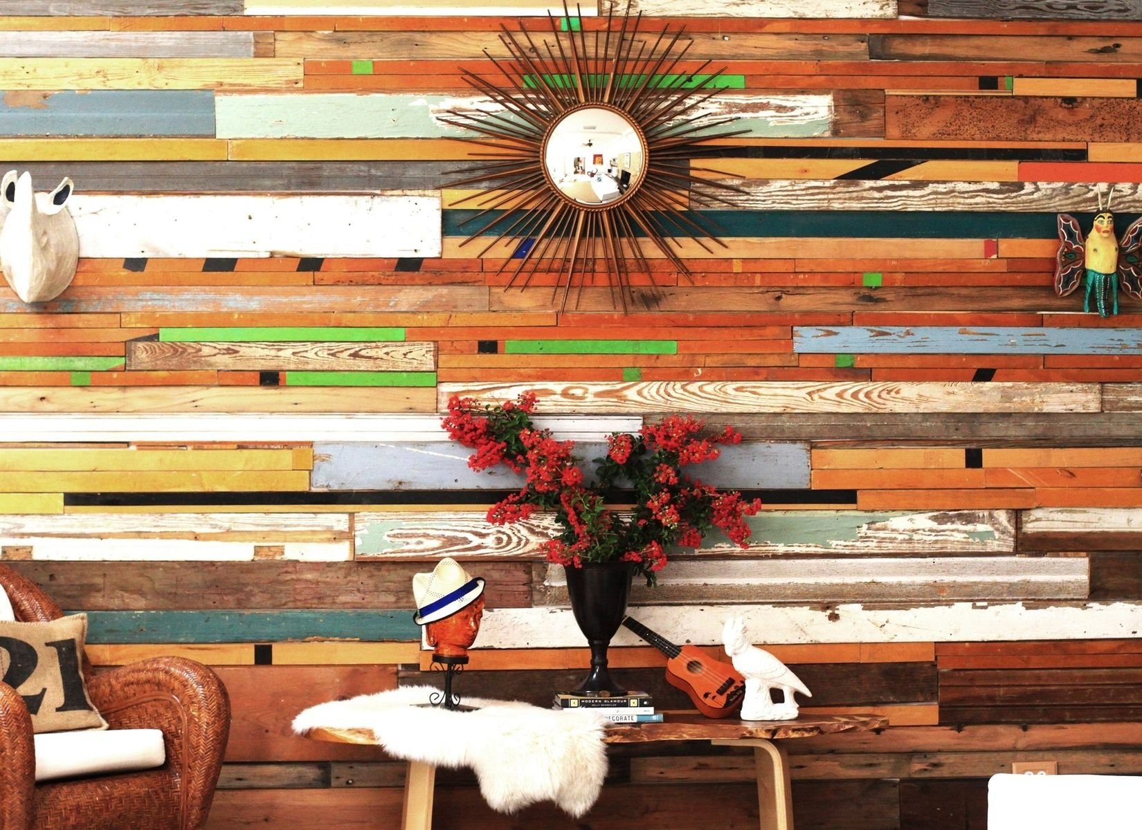 Стена из досок в интерьере