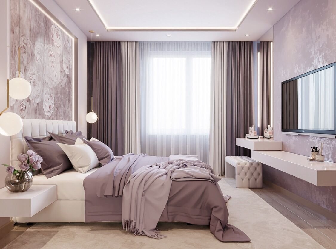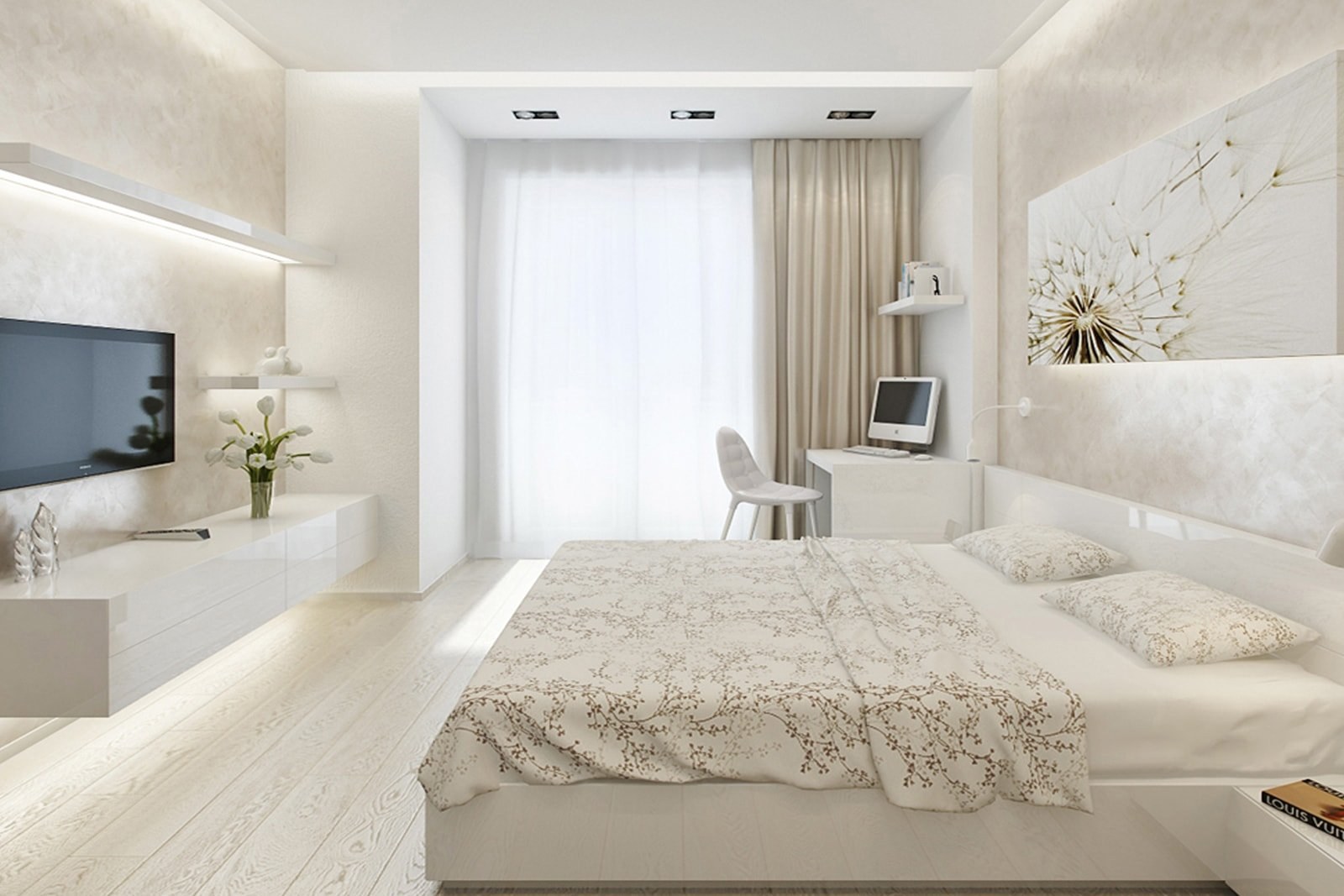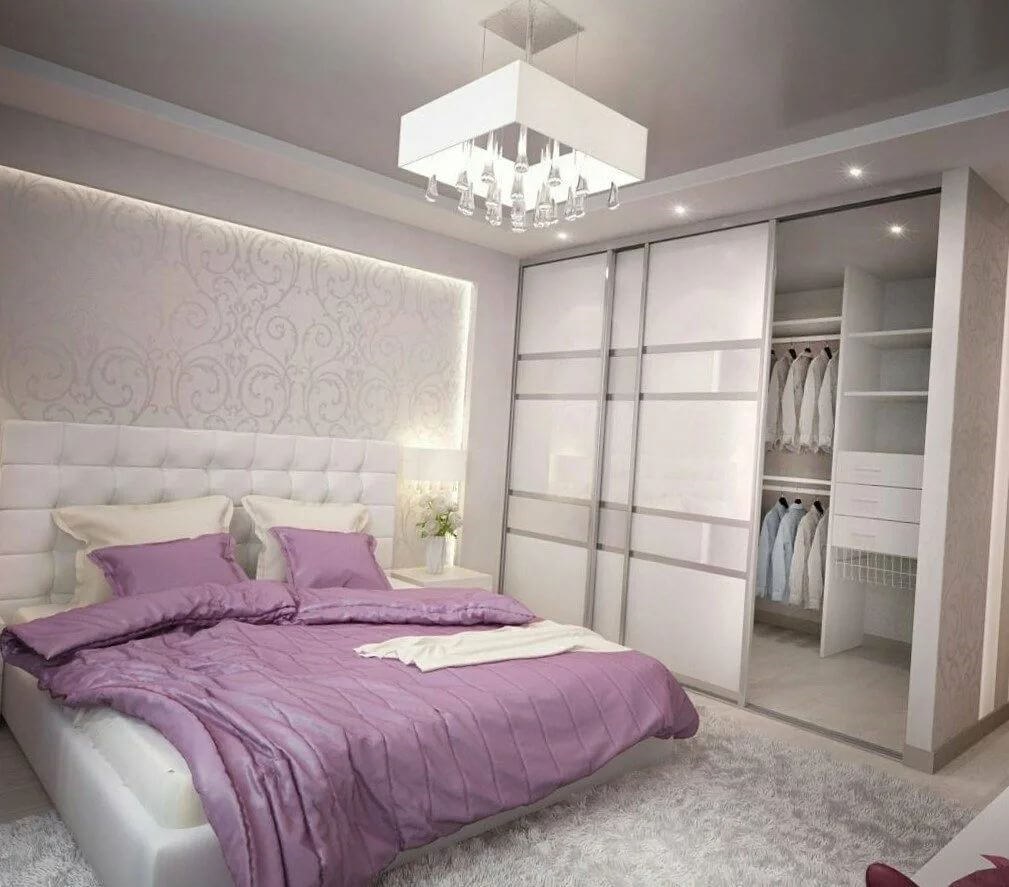 Спальня в современном стиле в светлых тонах 14 кв интерьер