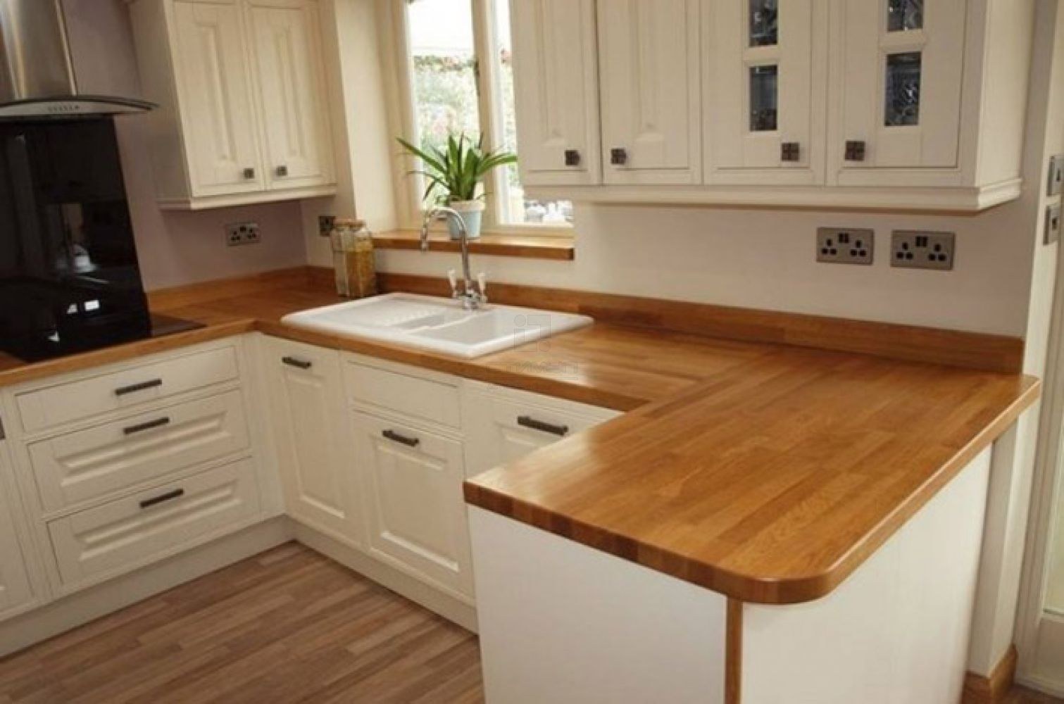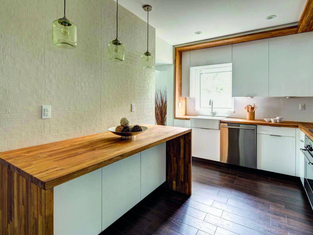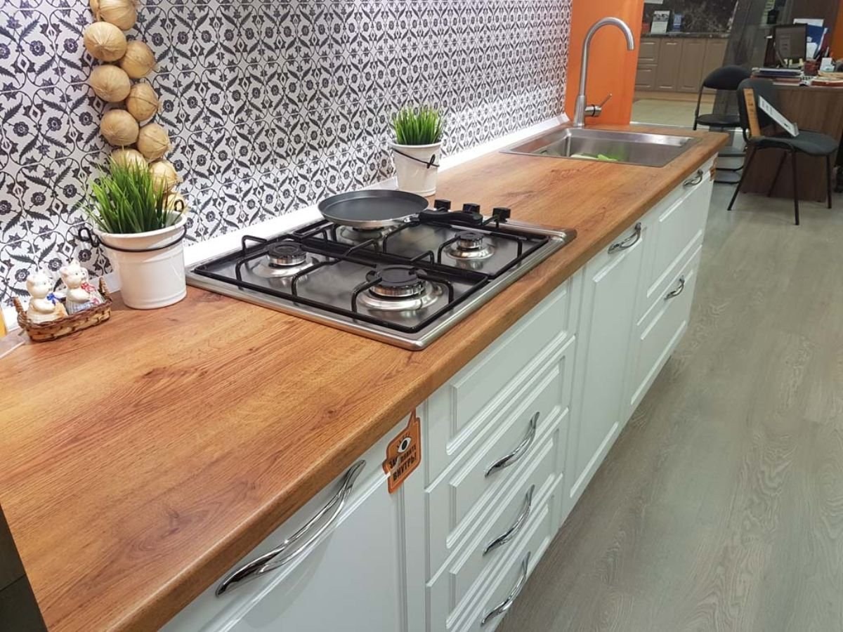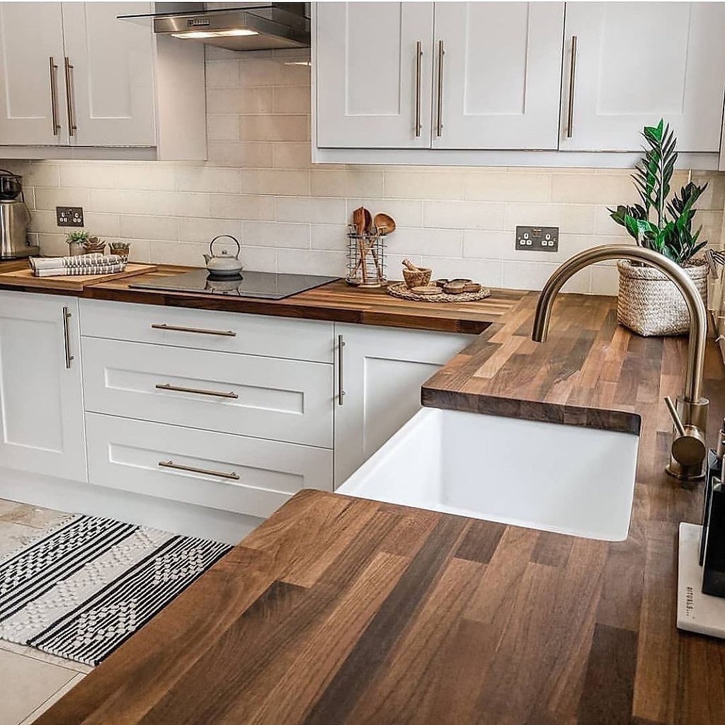 Белая кухня с деревянной столешницей в скандинавском стиле