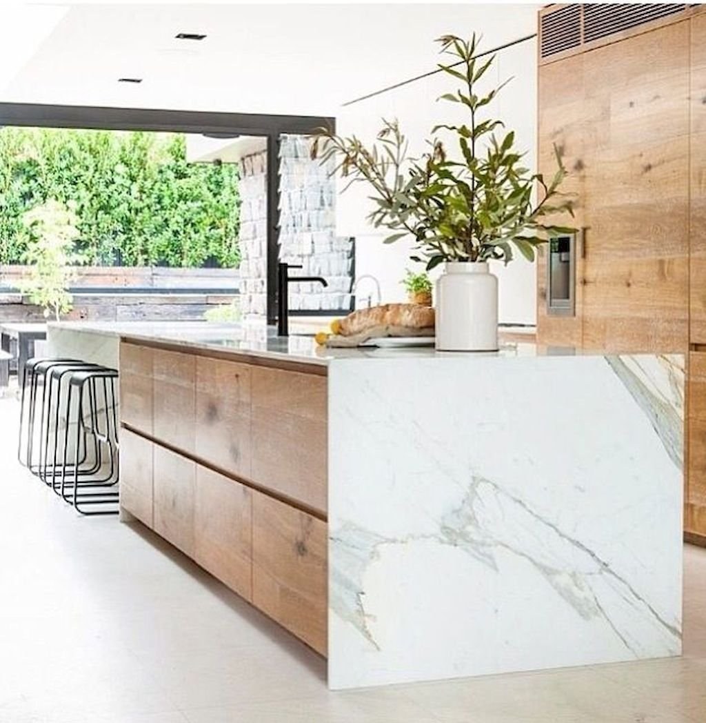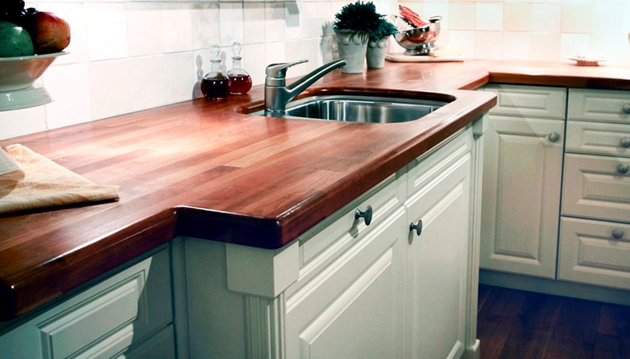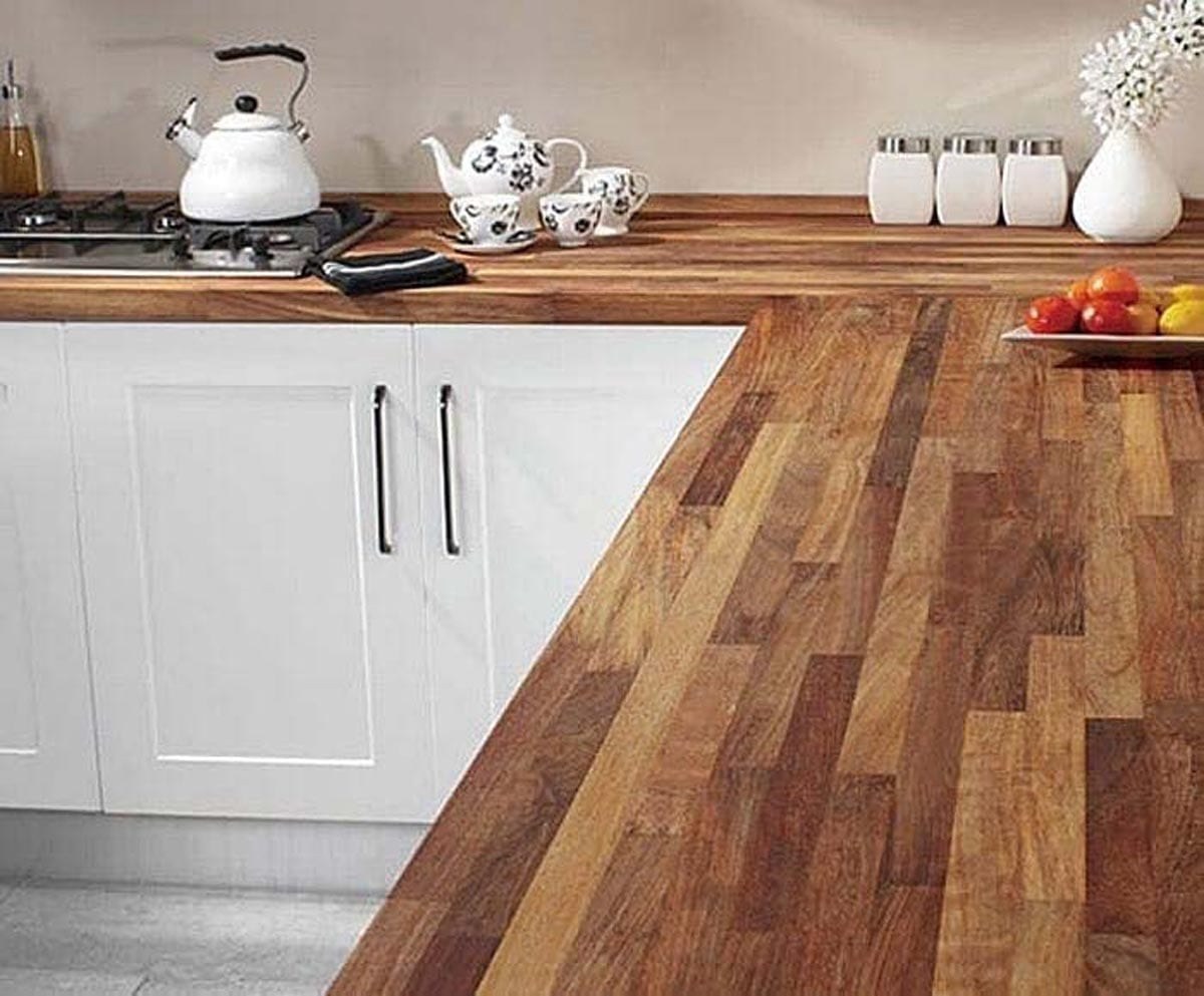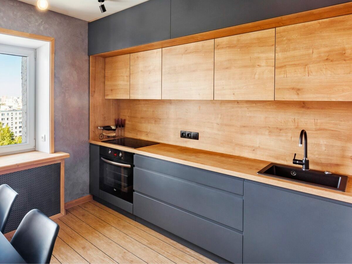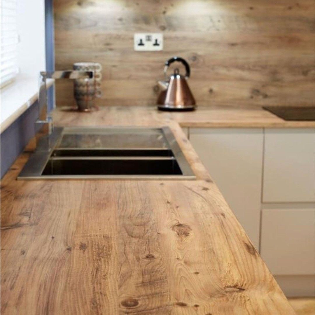 Белая кухня с деревянной столешницей в скандинавском стиле