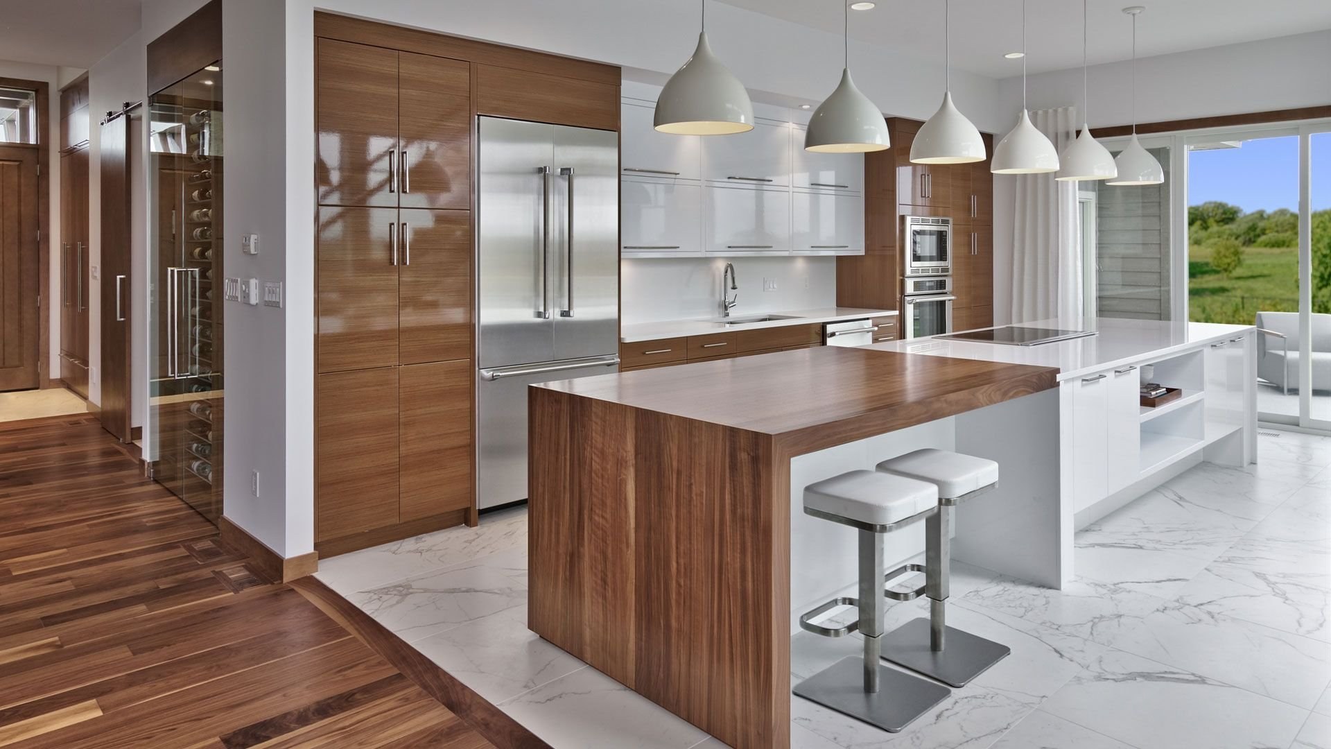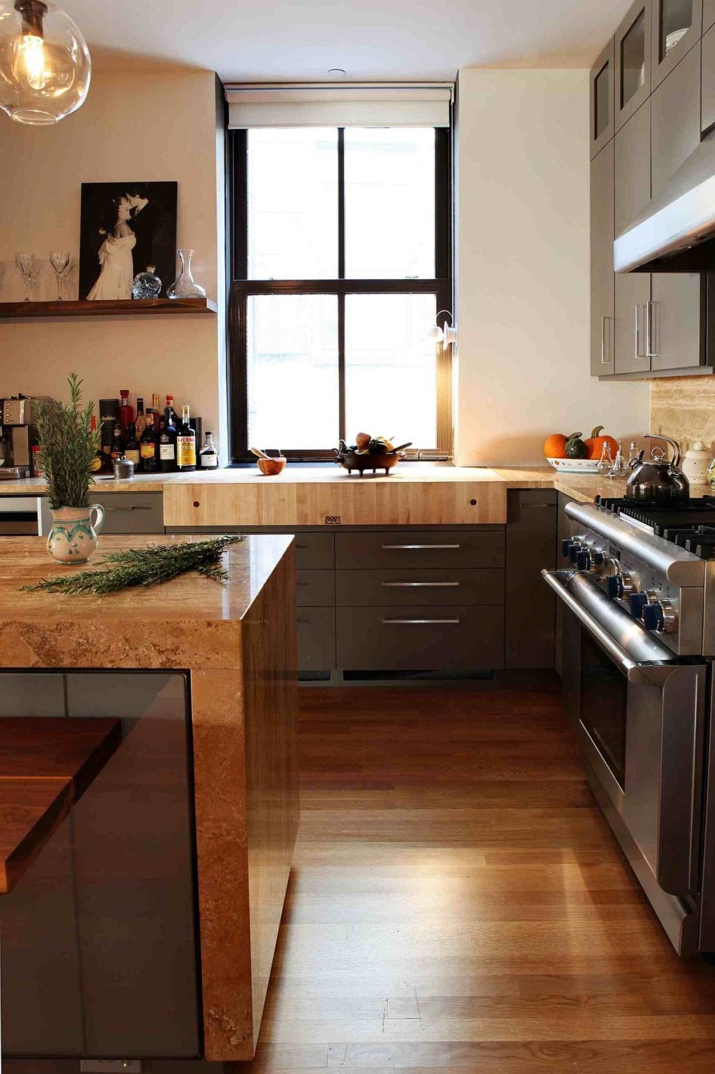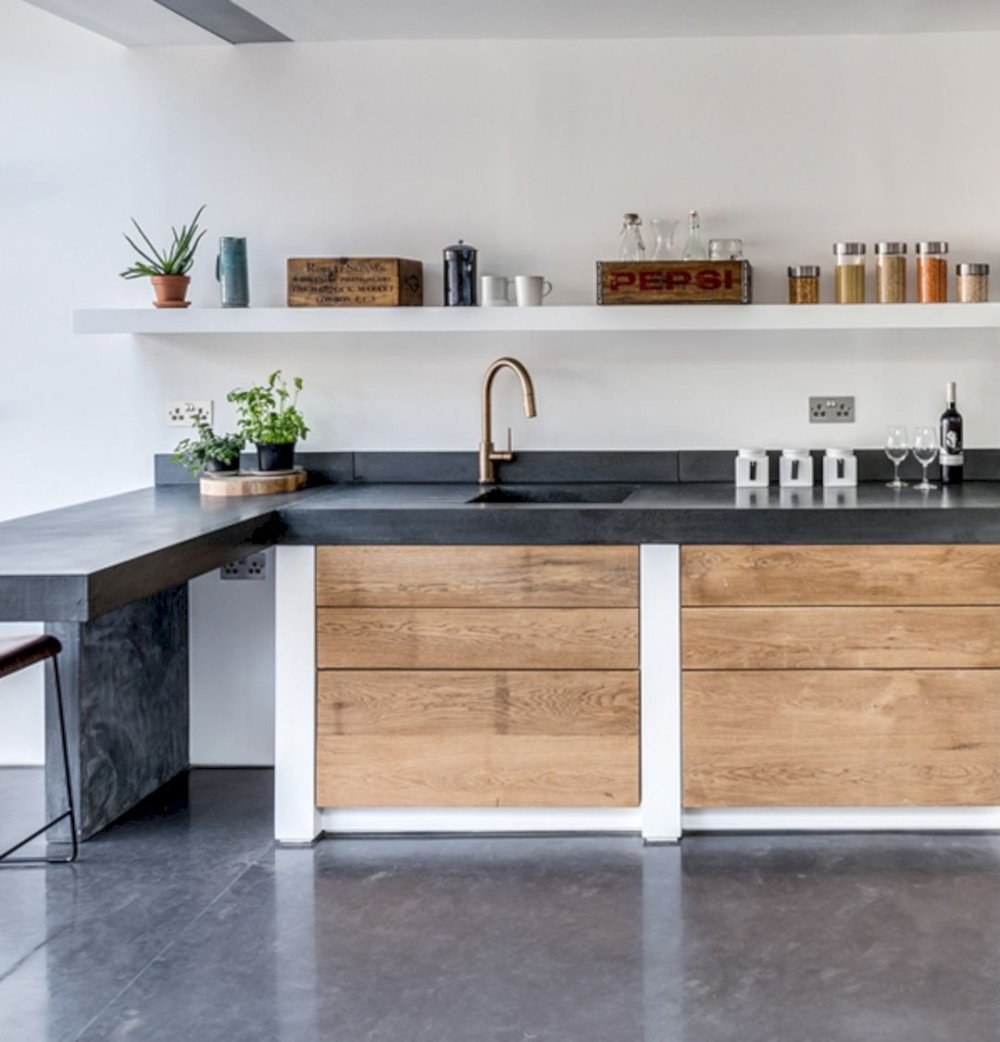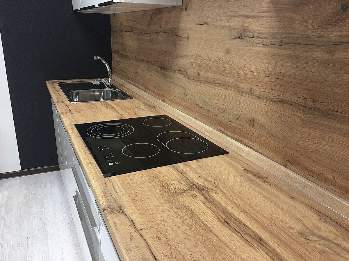 Белая кухня с деревянной столешницей в скандинавском стиле
