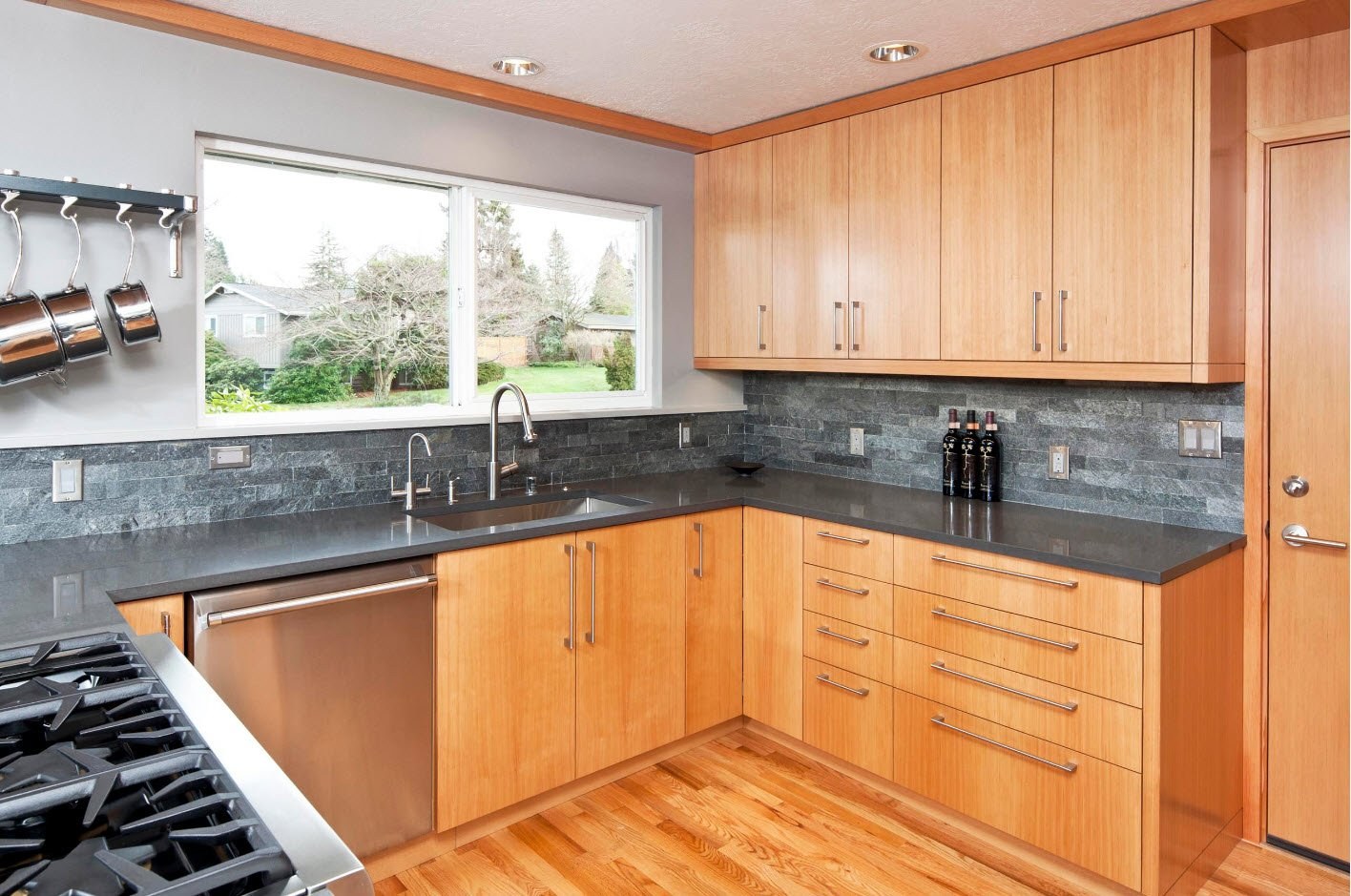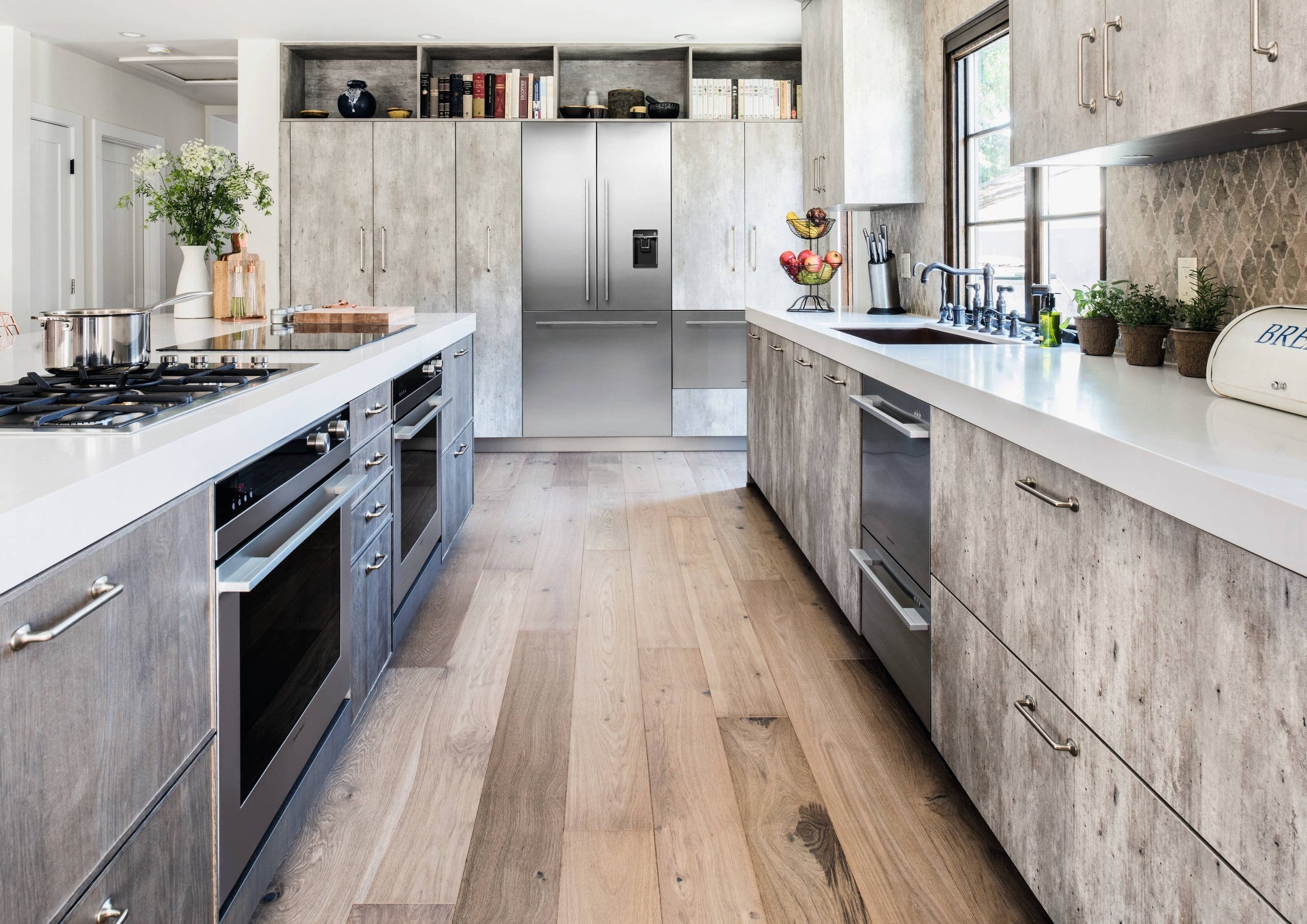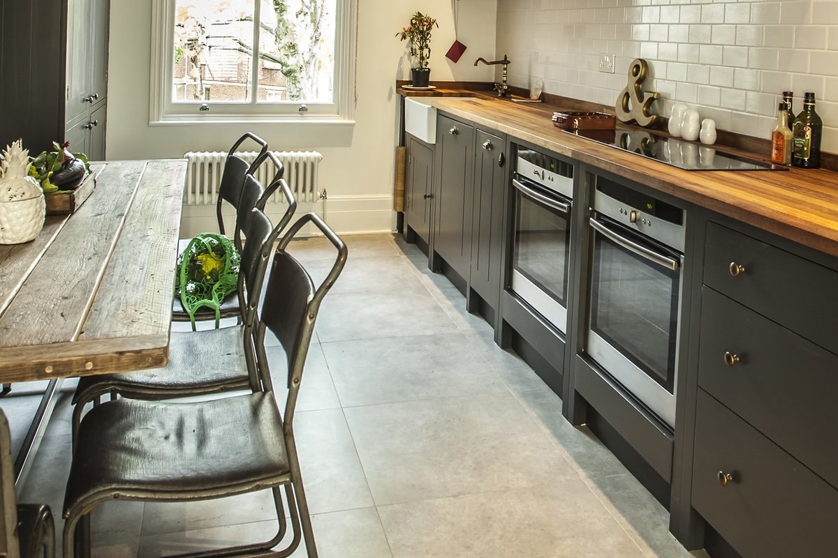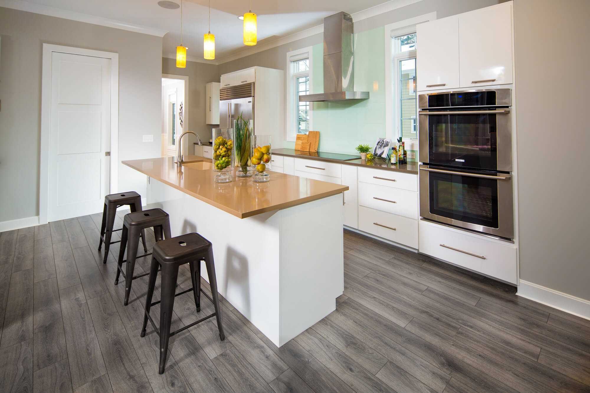 Белая кухня с деревянной столешницей в скандинавском стиле