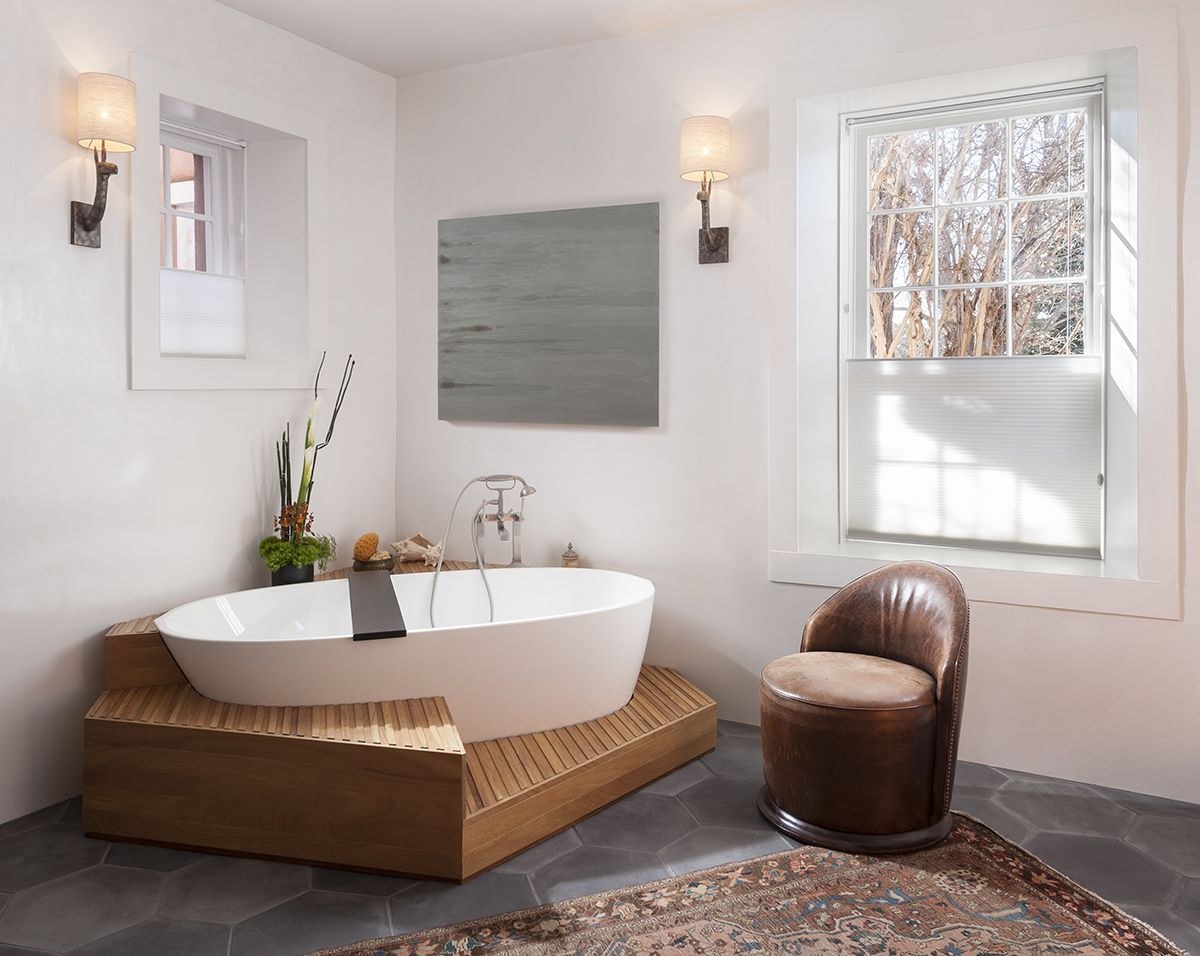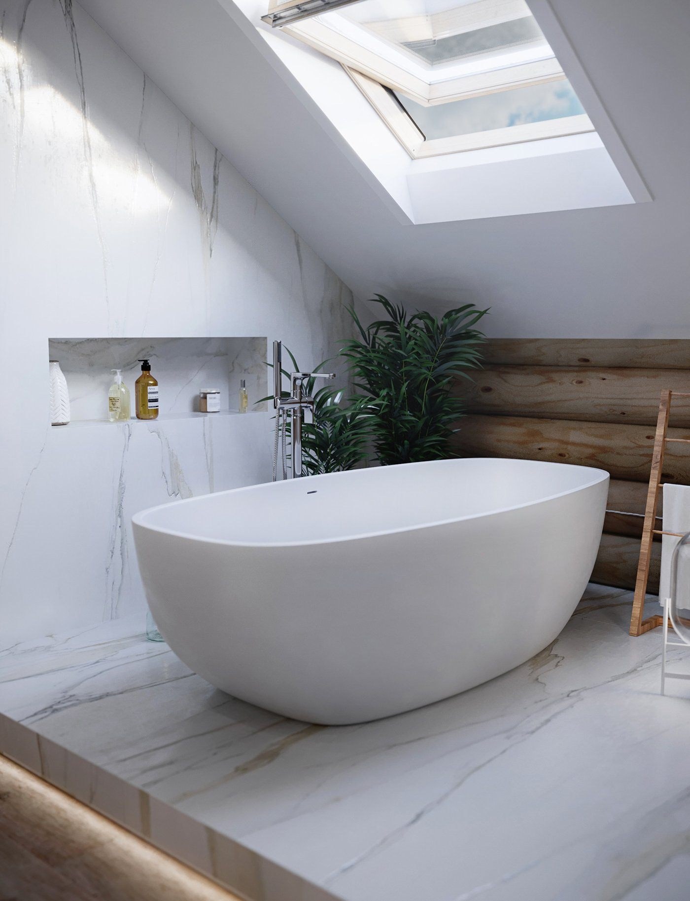 Овальная ванна в интерьере с чем сочетается (48 фото)