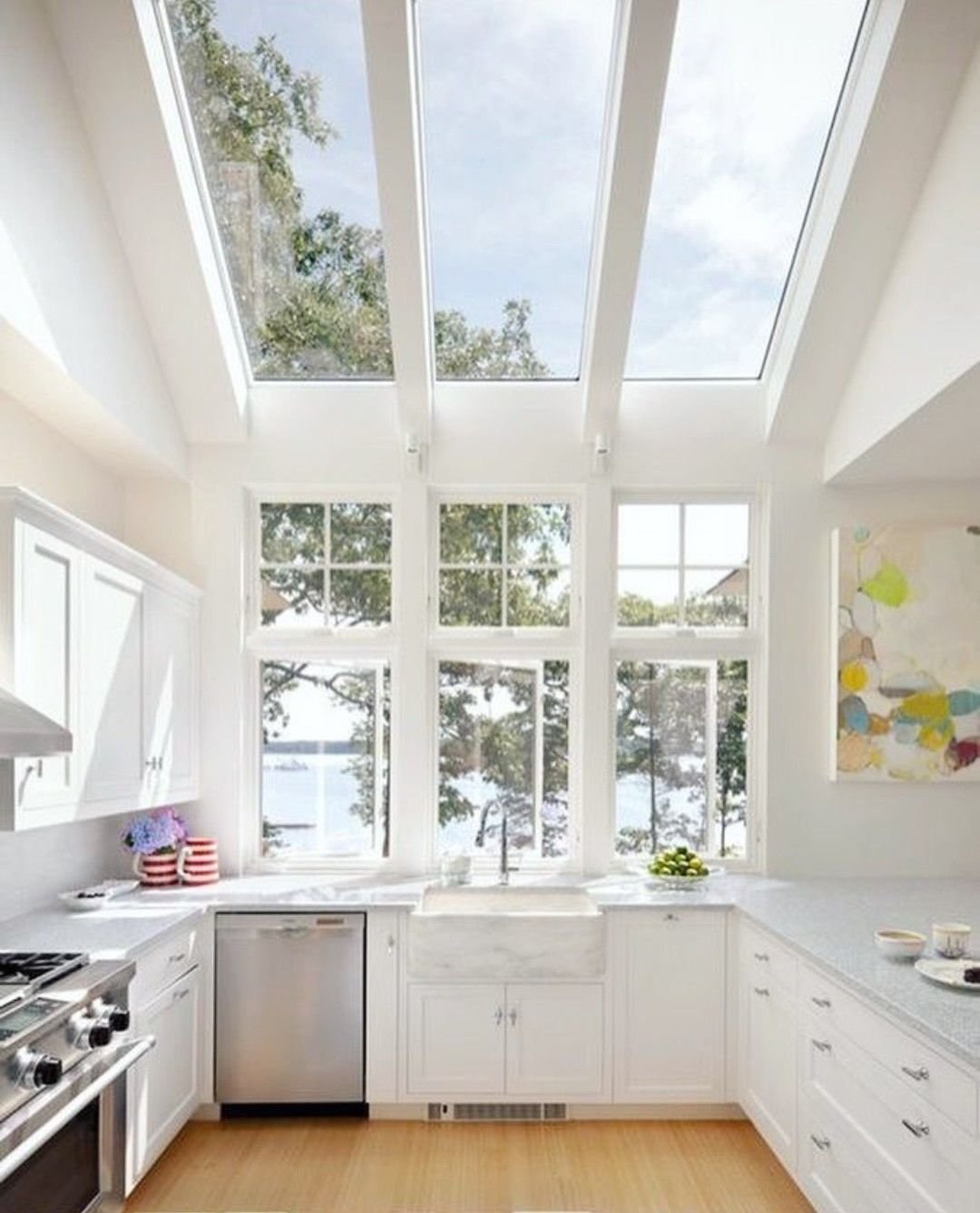 Кухня с большими окнами