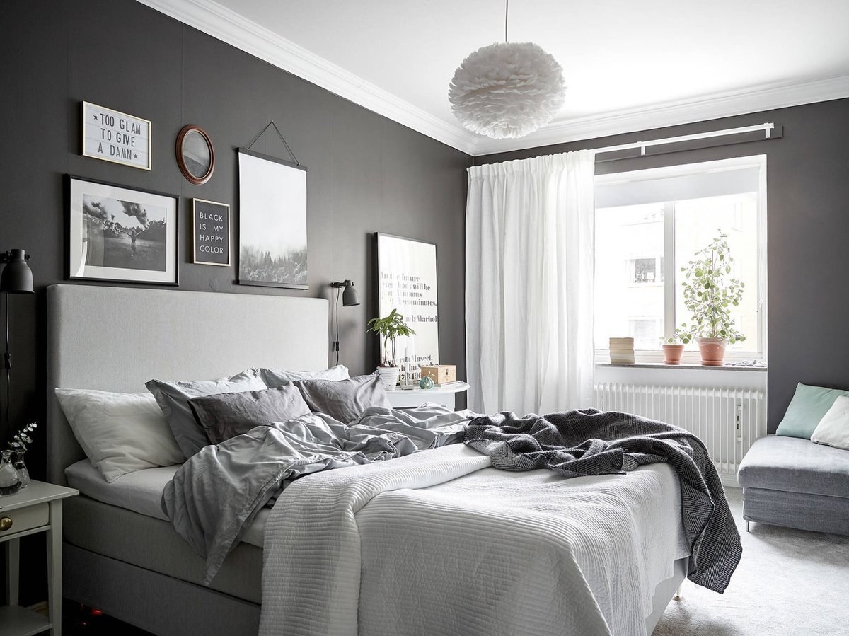 Серые стены в спальне