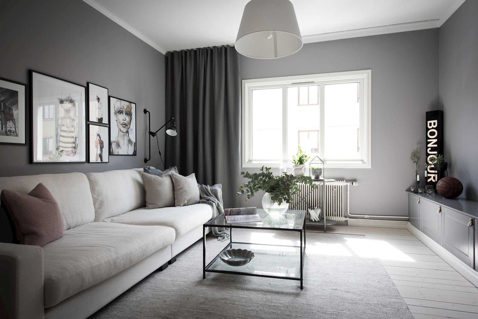 Серые стены в гостиной