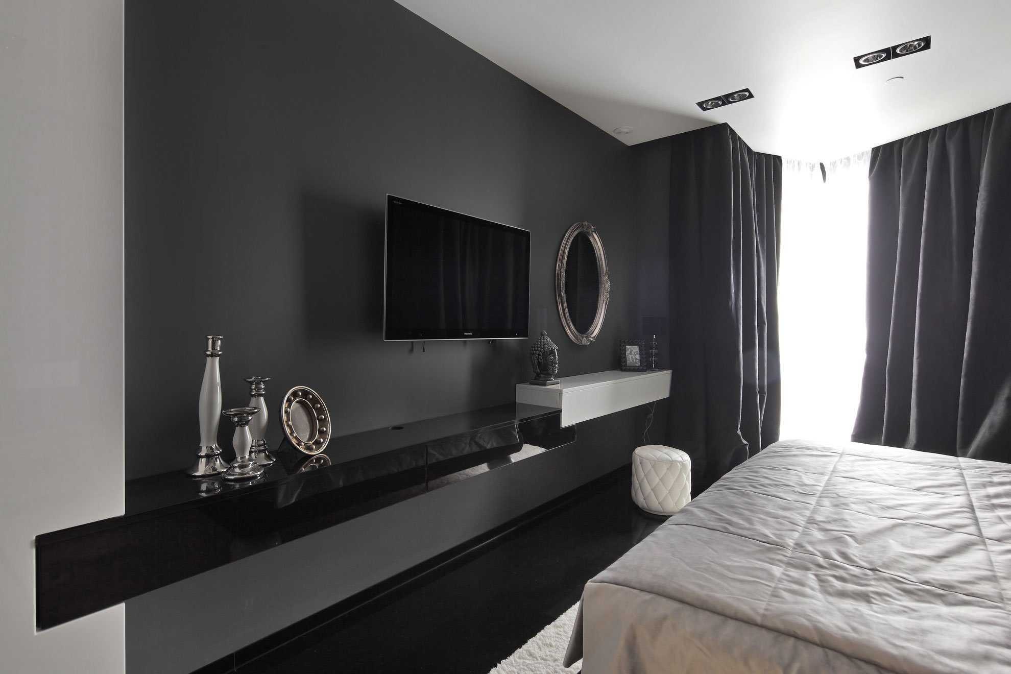 Черно белый интерьер спальни