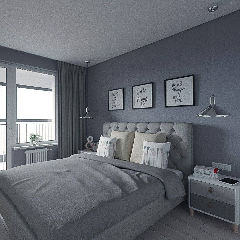 Серые стены в интерьере спальни
