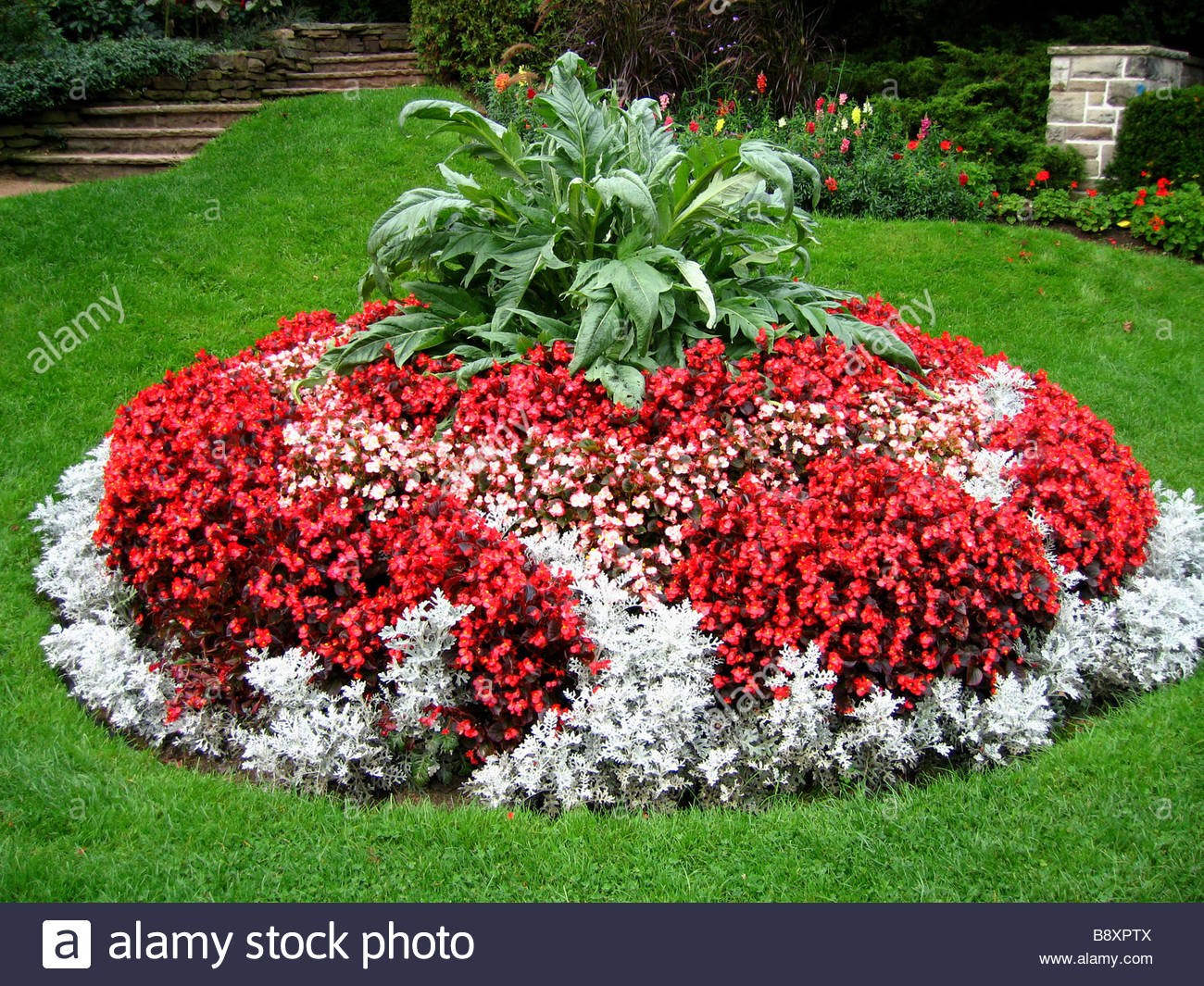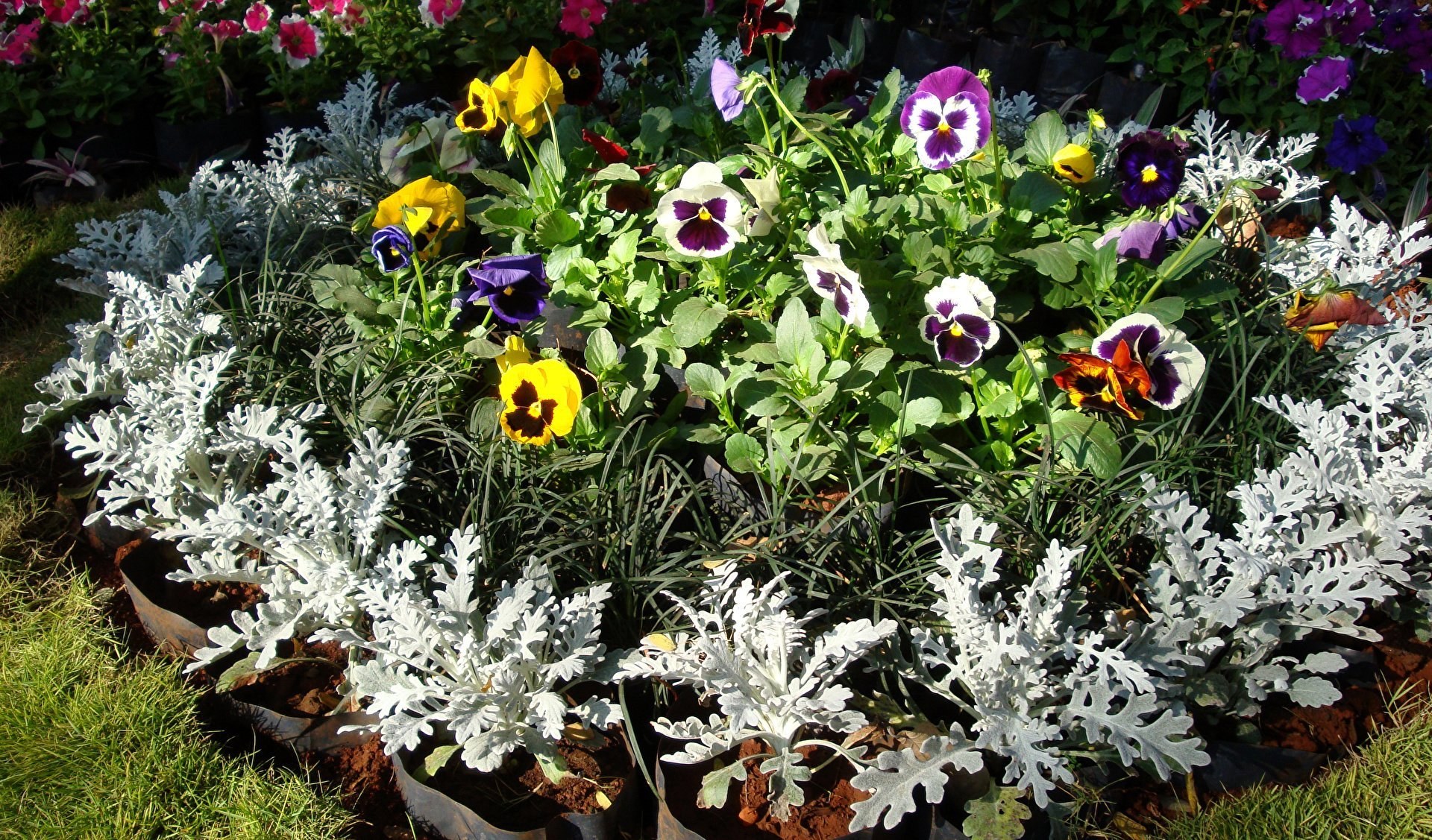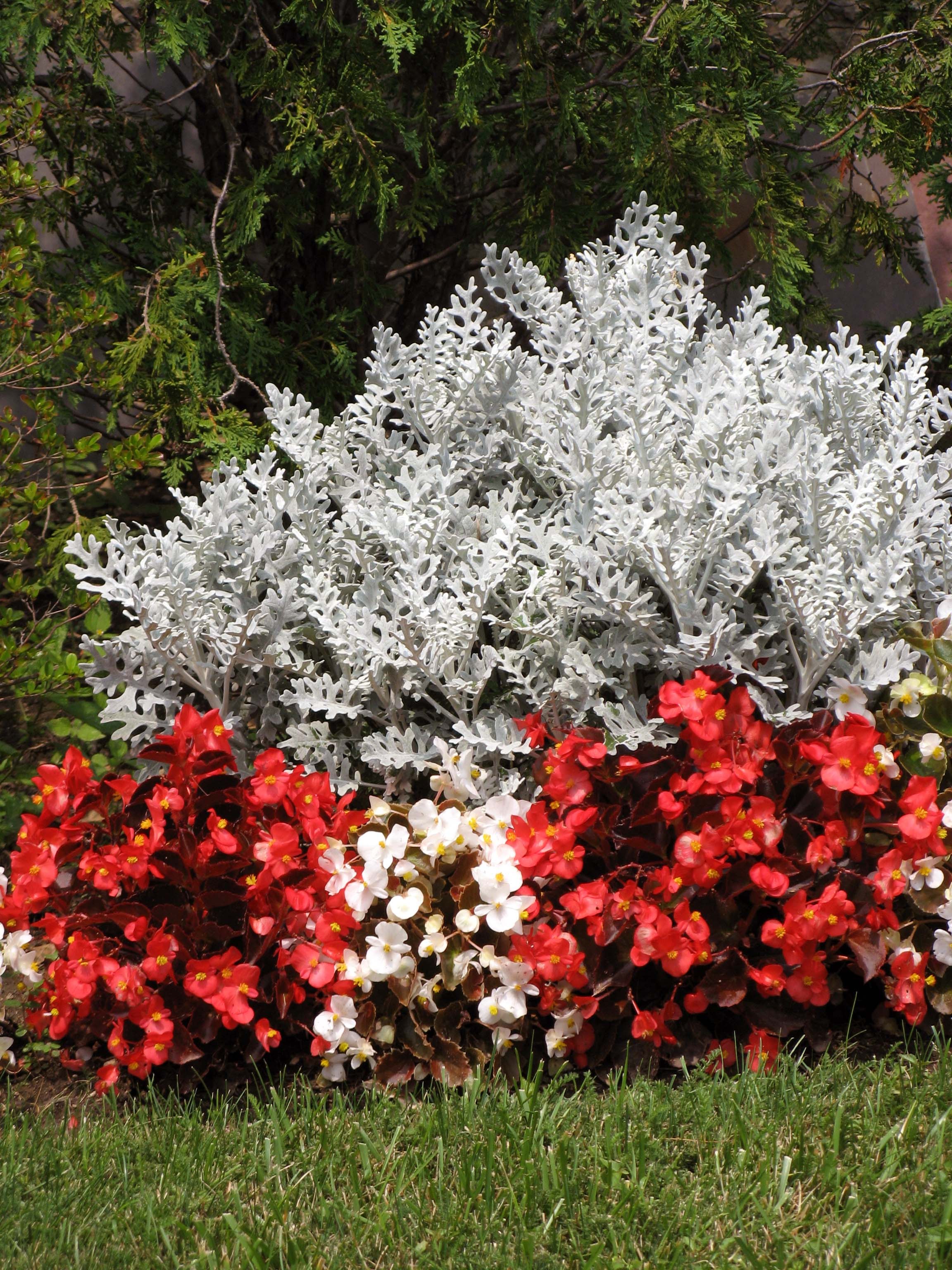 Герань и цинерария на клумбе