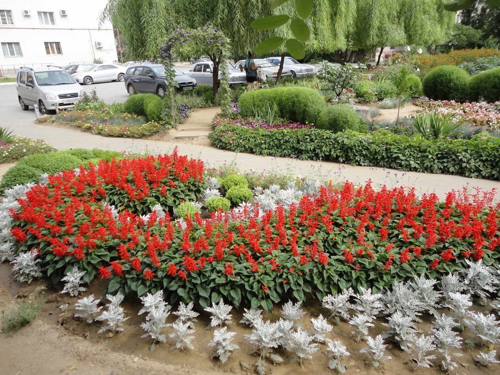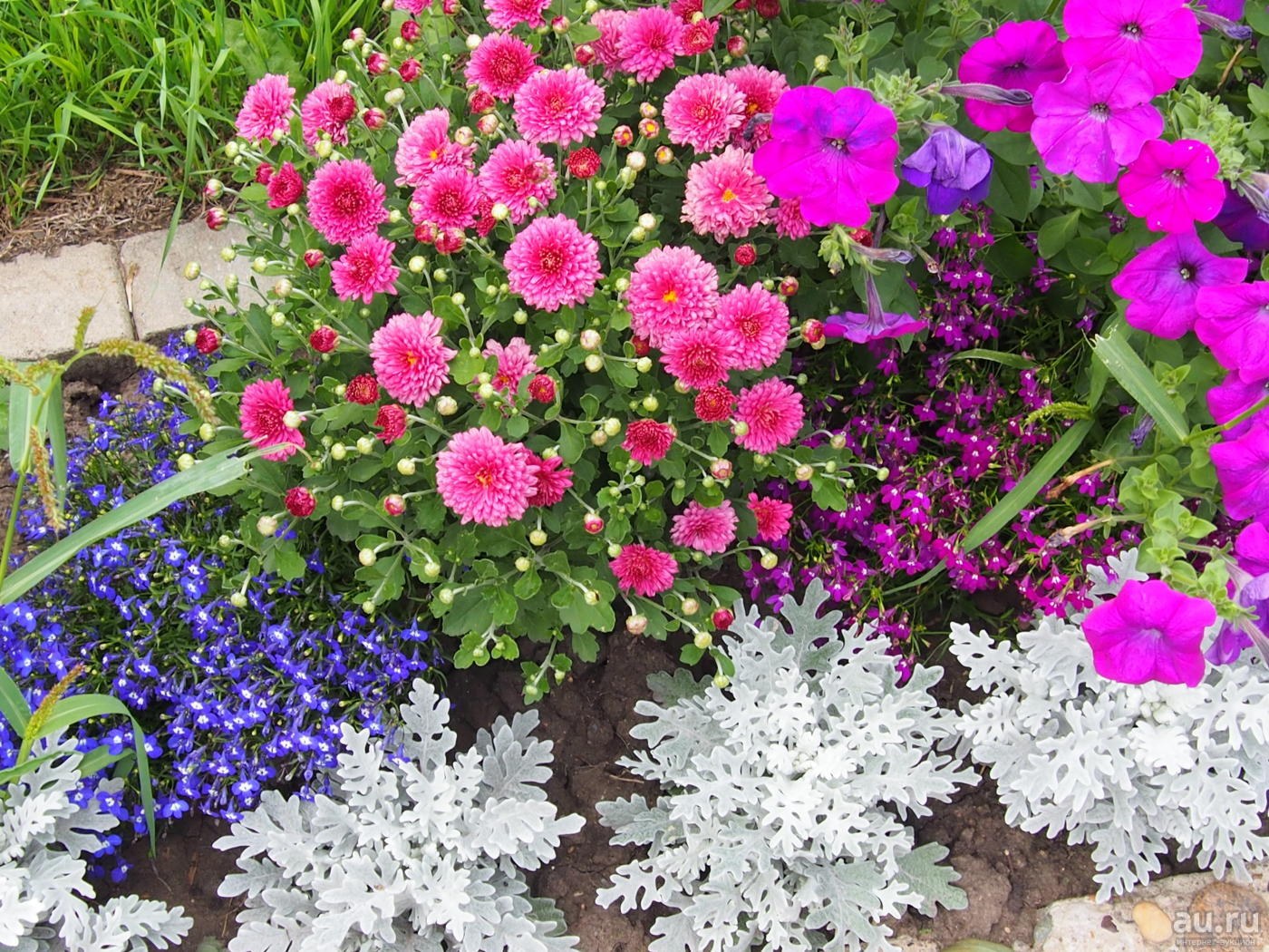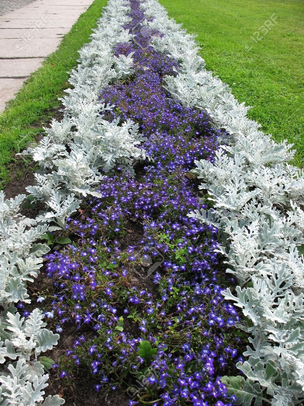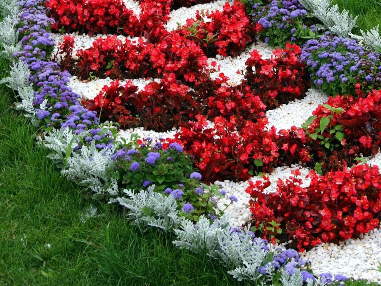 Клумба Сальвия алиссум цинерария