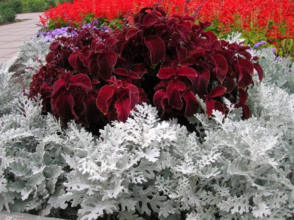 Цинерария серебристая и колеус