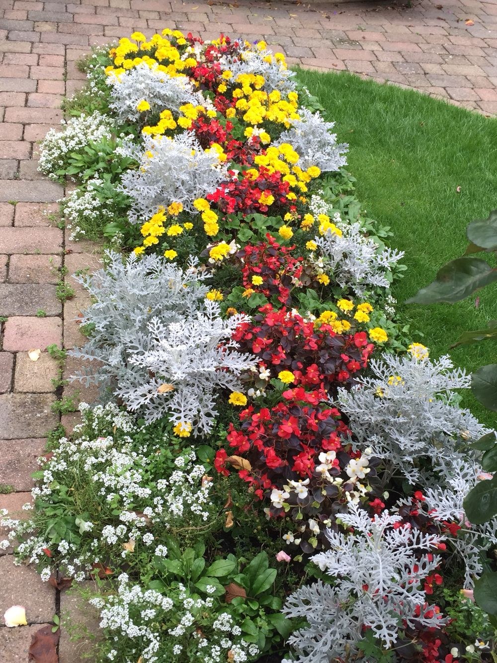 Рабатка с бархатцами и цинерарией