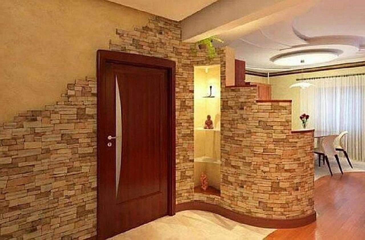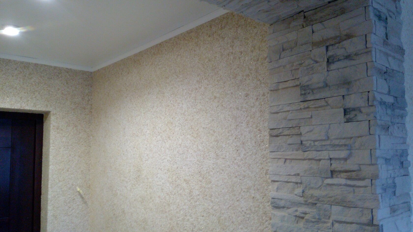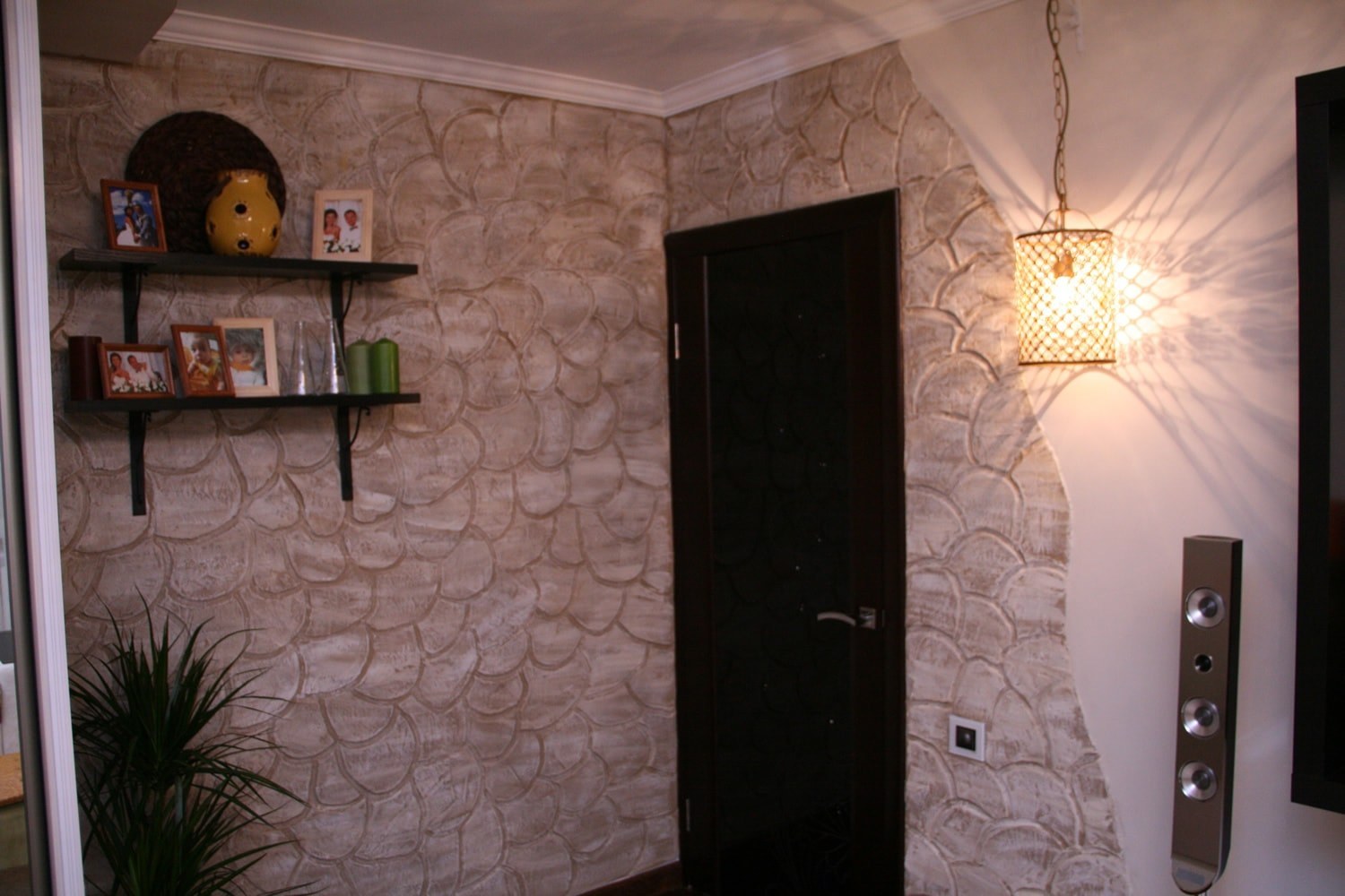 Жидкие обои и декоративный камень в интерьере (61 фото)