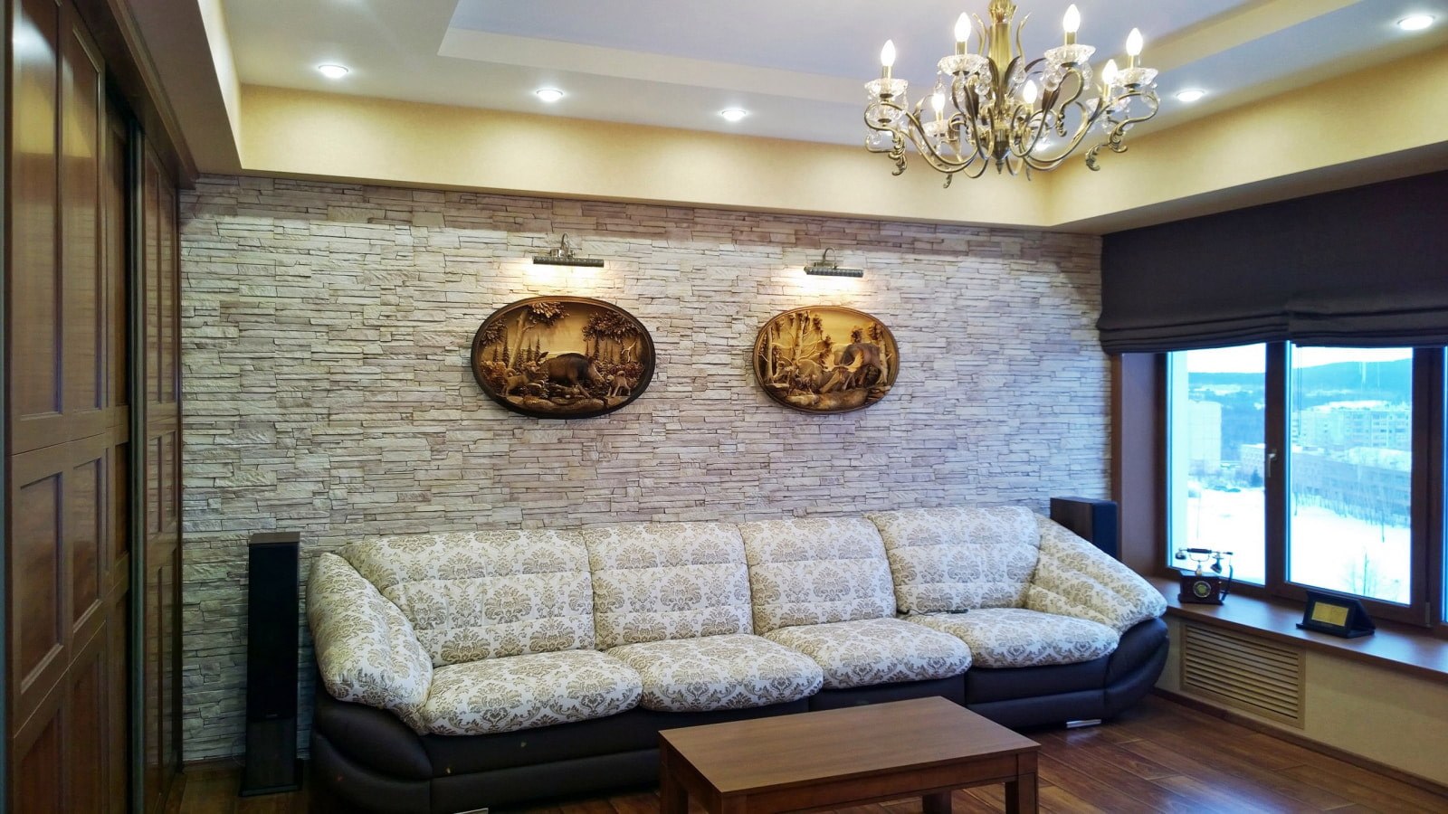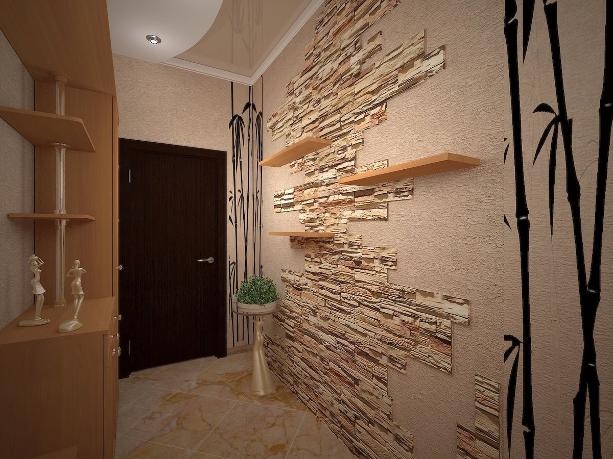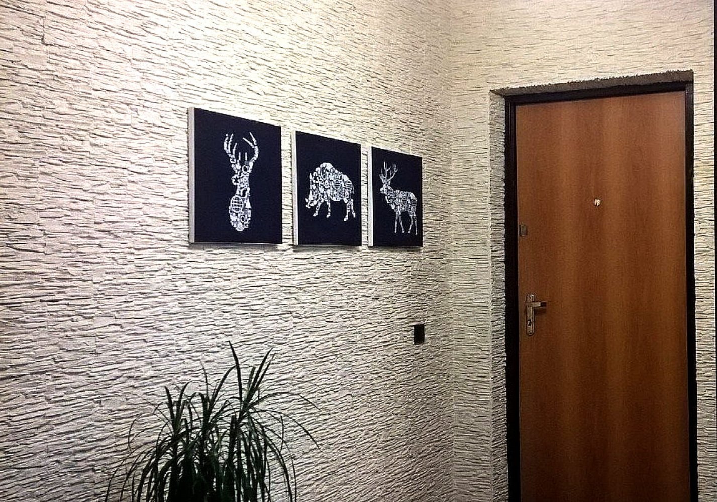 Жидкие обои и декоративный камень в интерьере (61 фото)