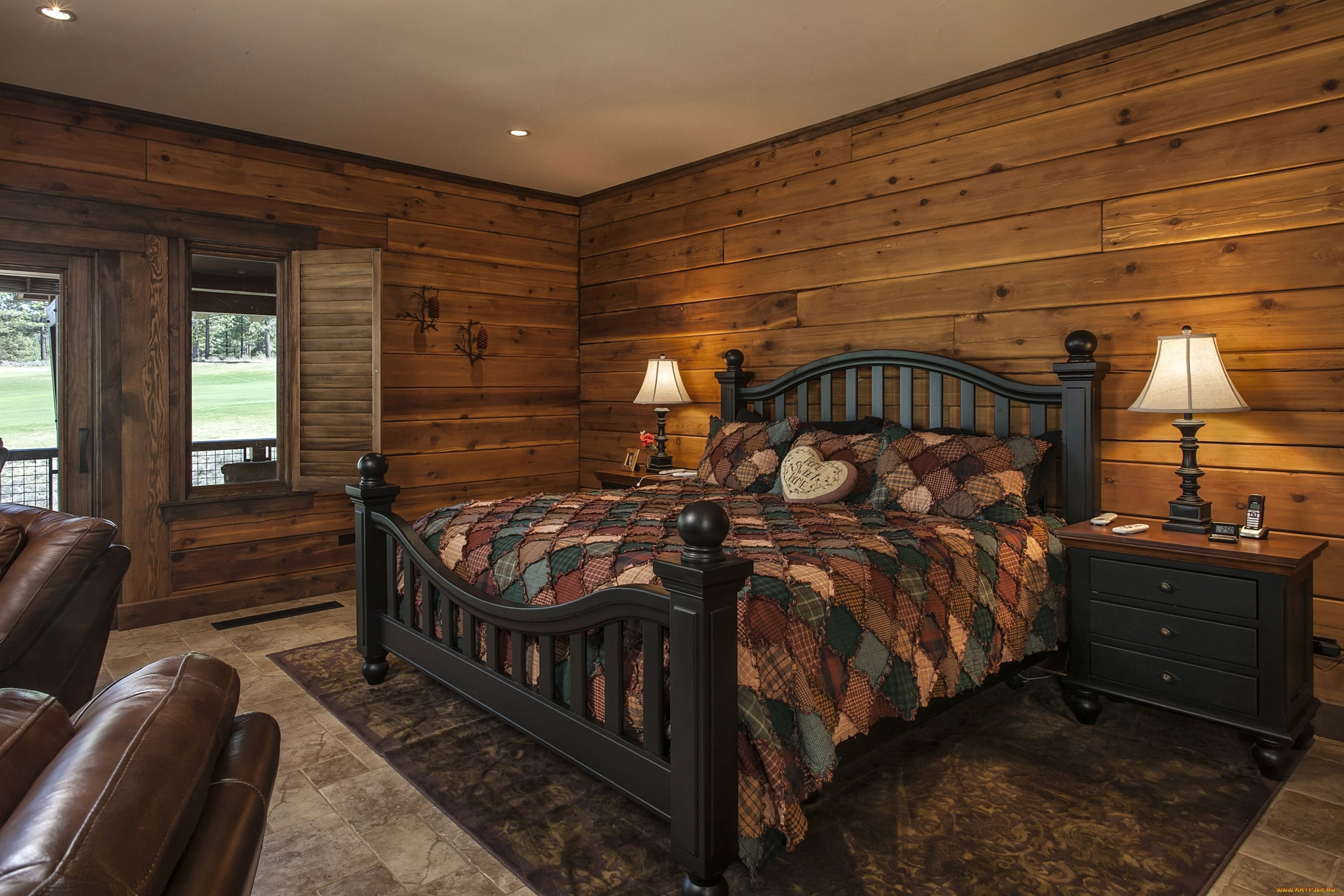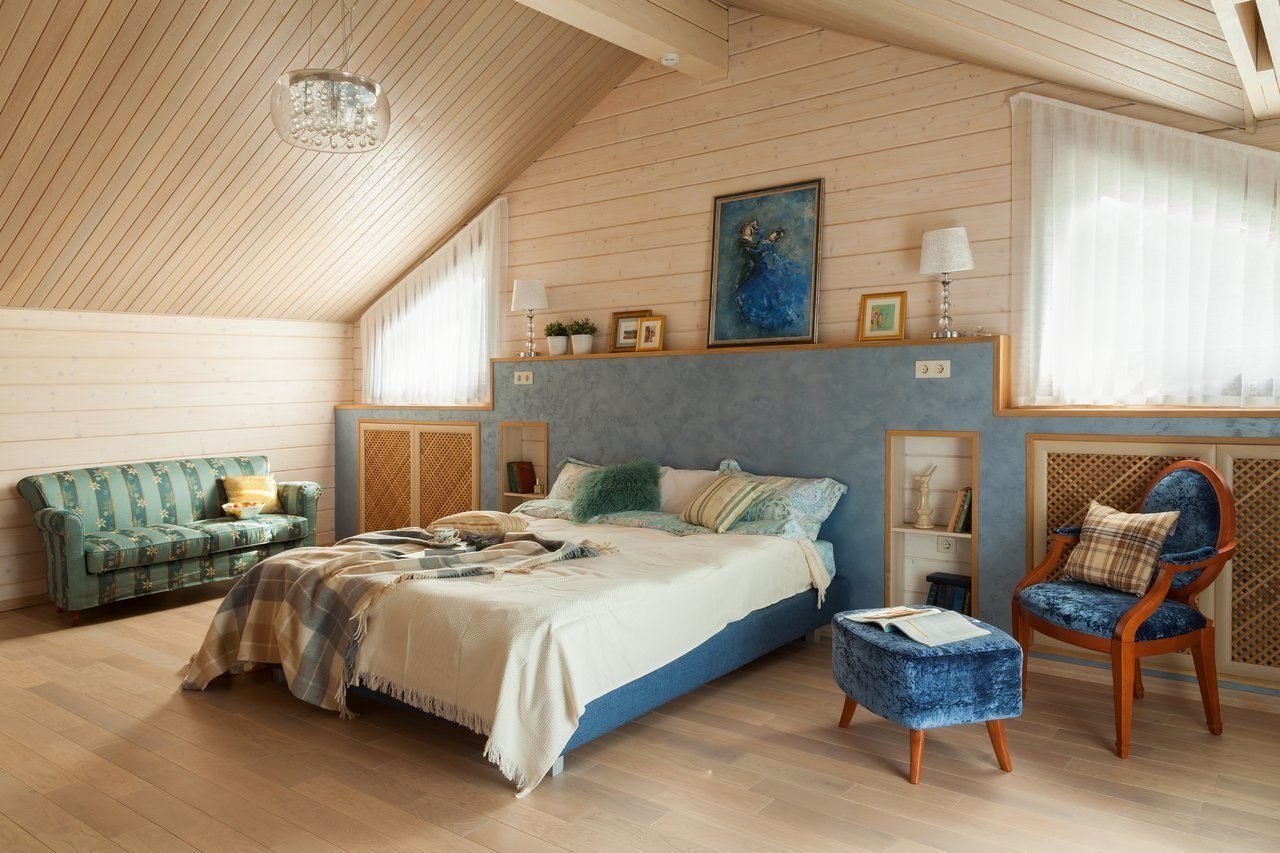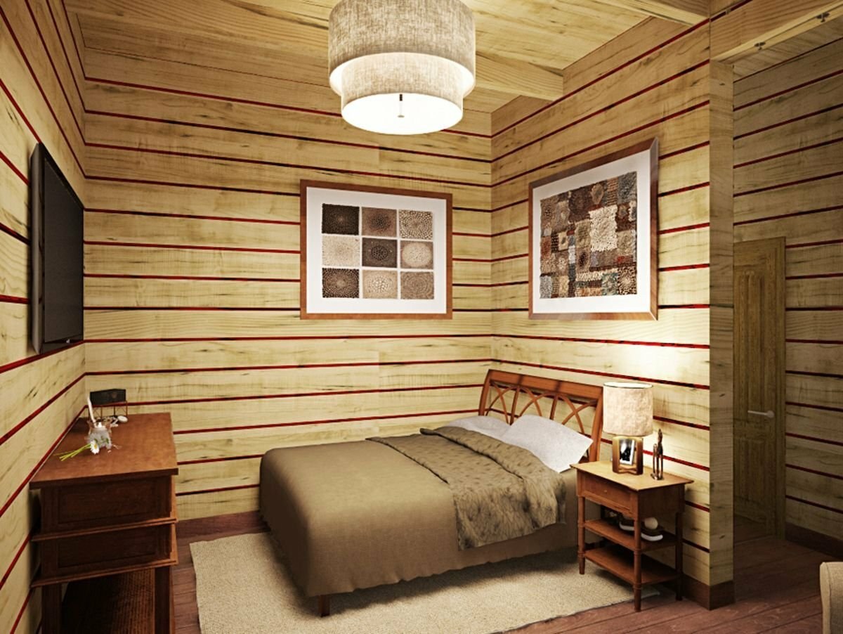 Интерьер спальни в деревянном доме