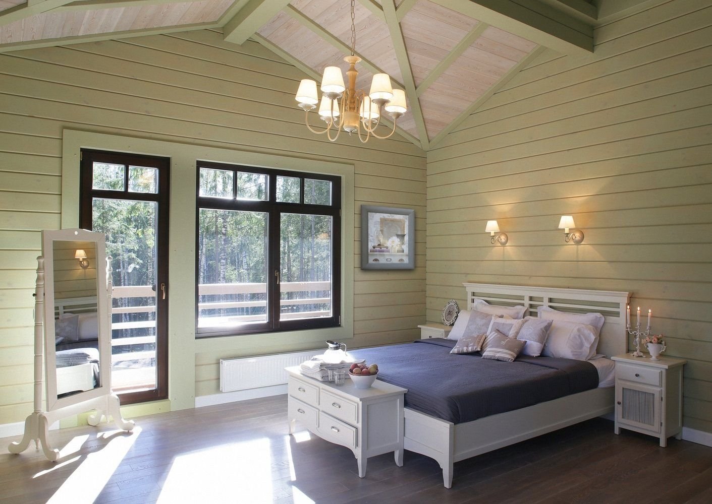 В какой цвет покрасить стены в спальне в деревянном доме (61 фото)