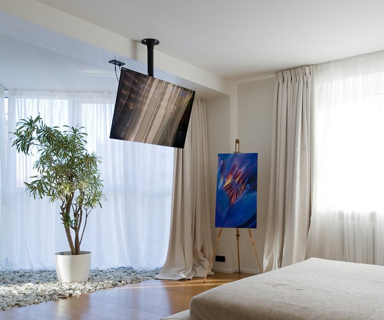 Телевизор на поворотном кронштейне в интерьере (56 фото)