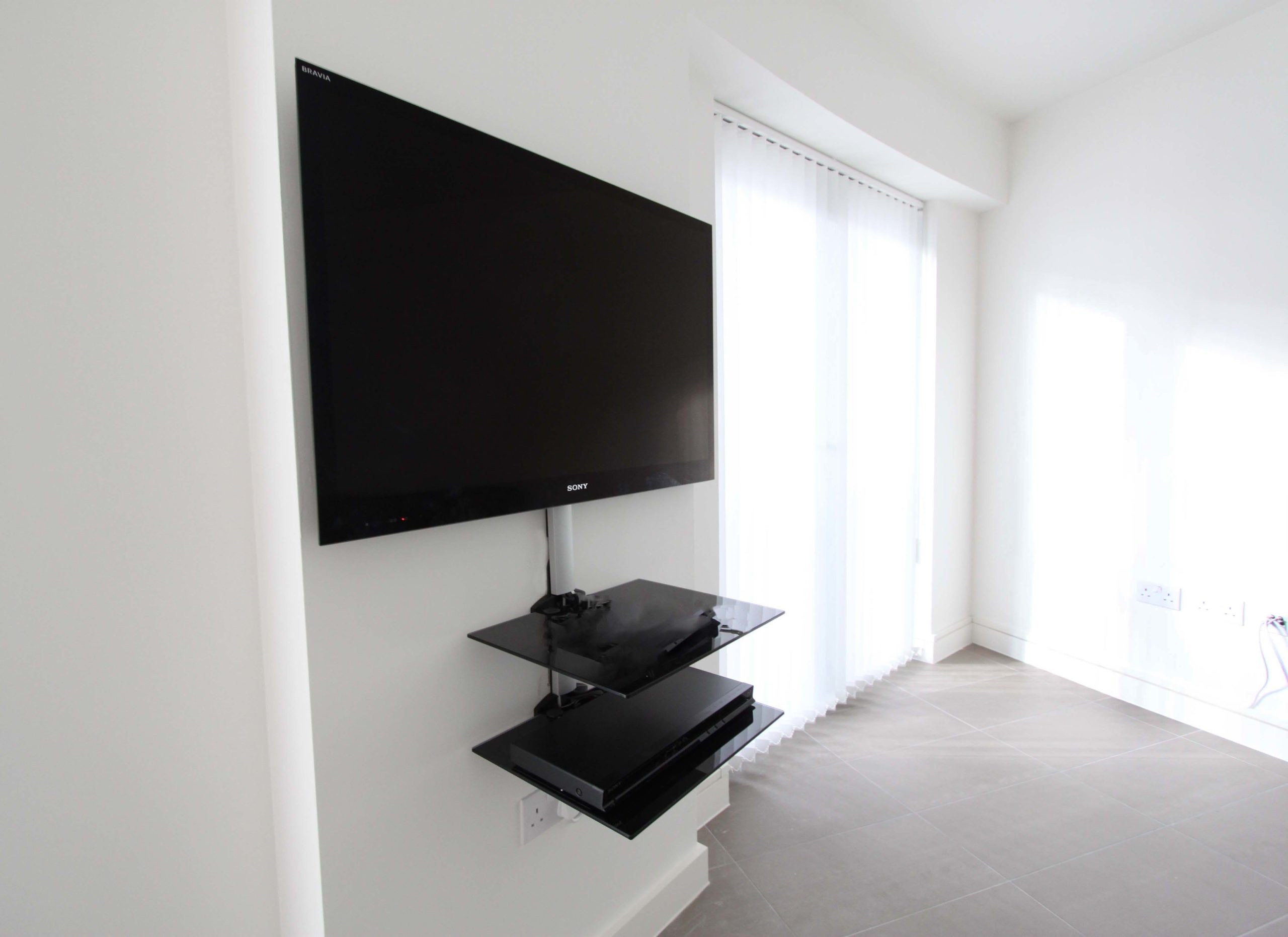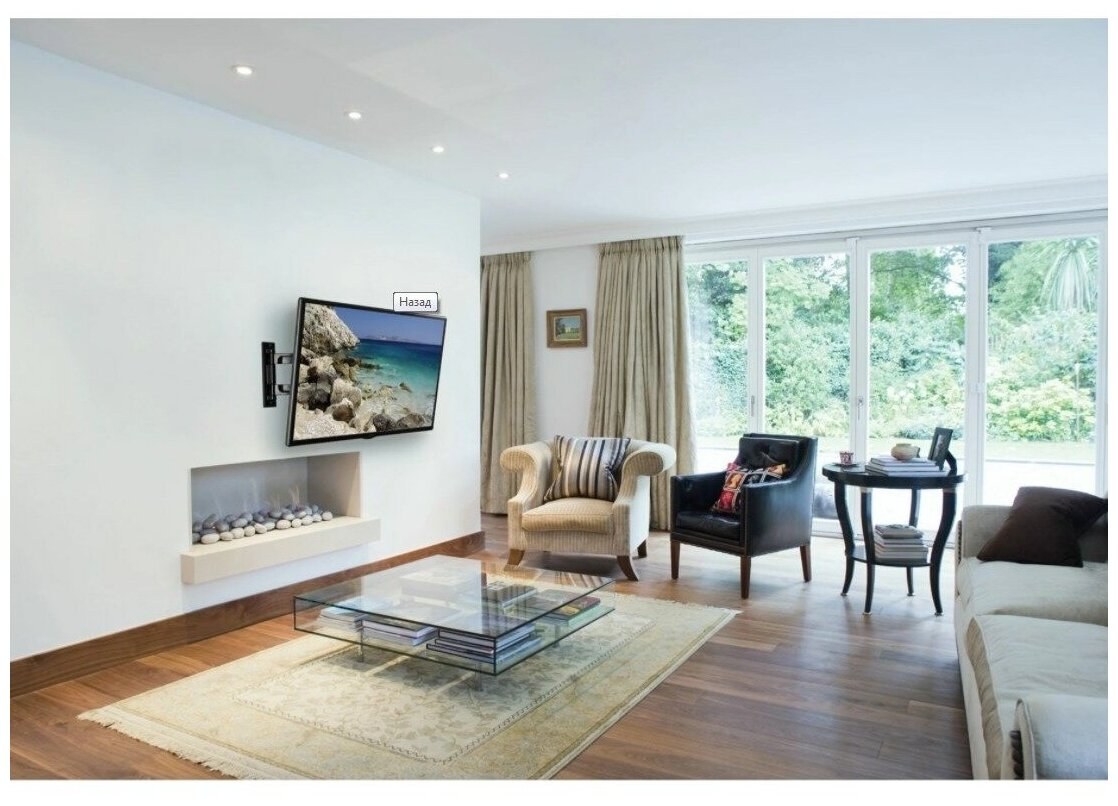 Телевизор на кронштейне поворотный в интерьере гостиной