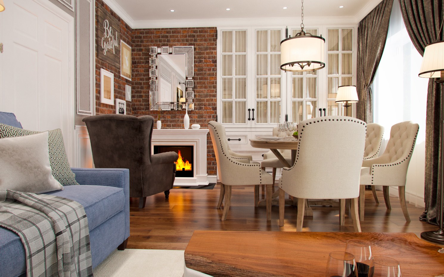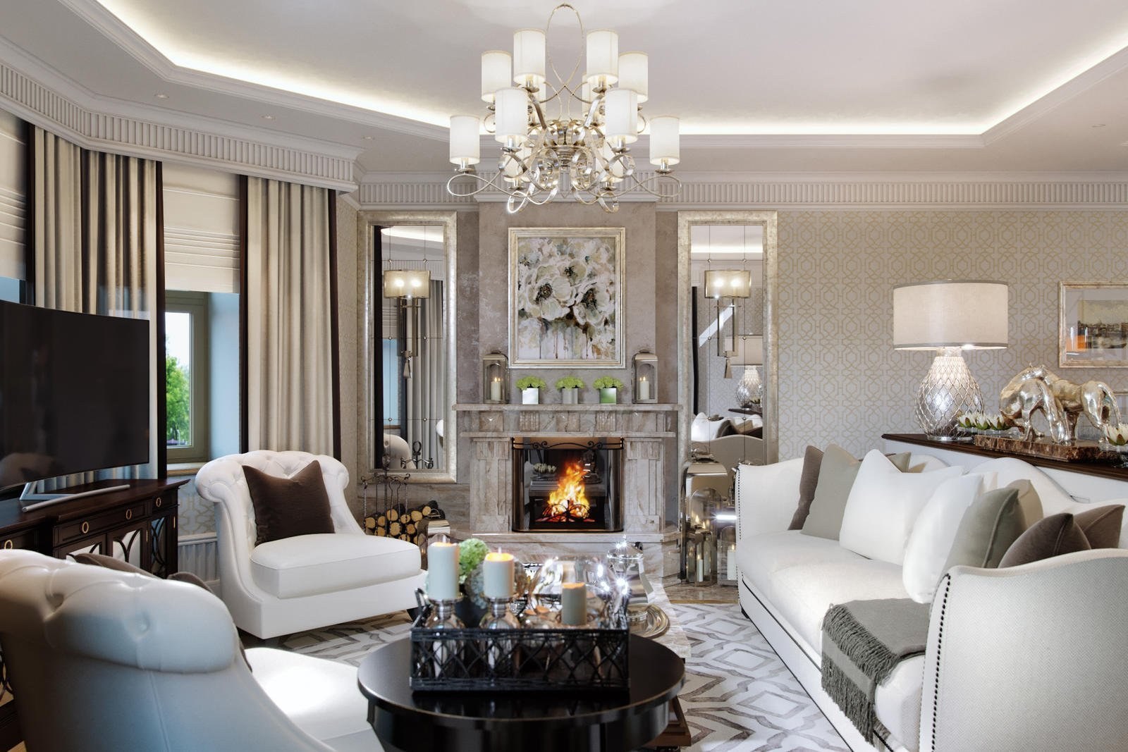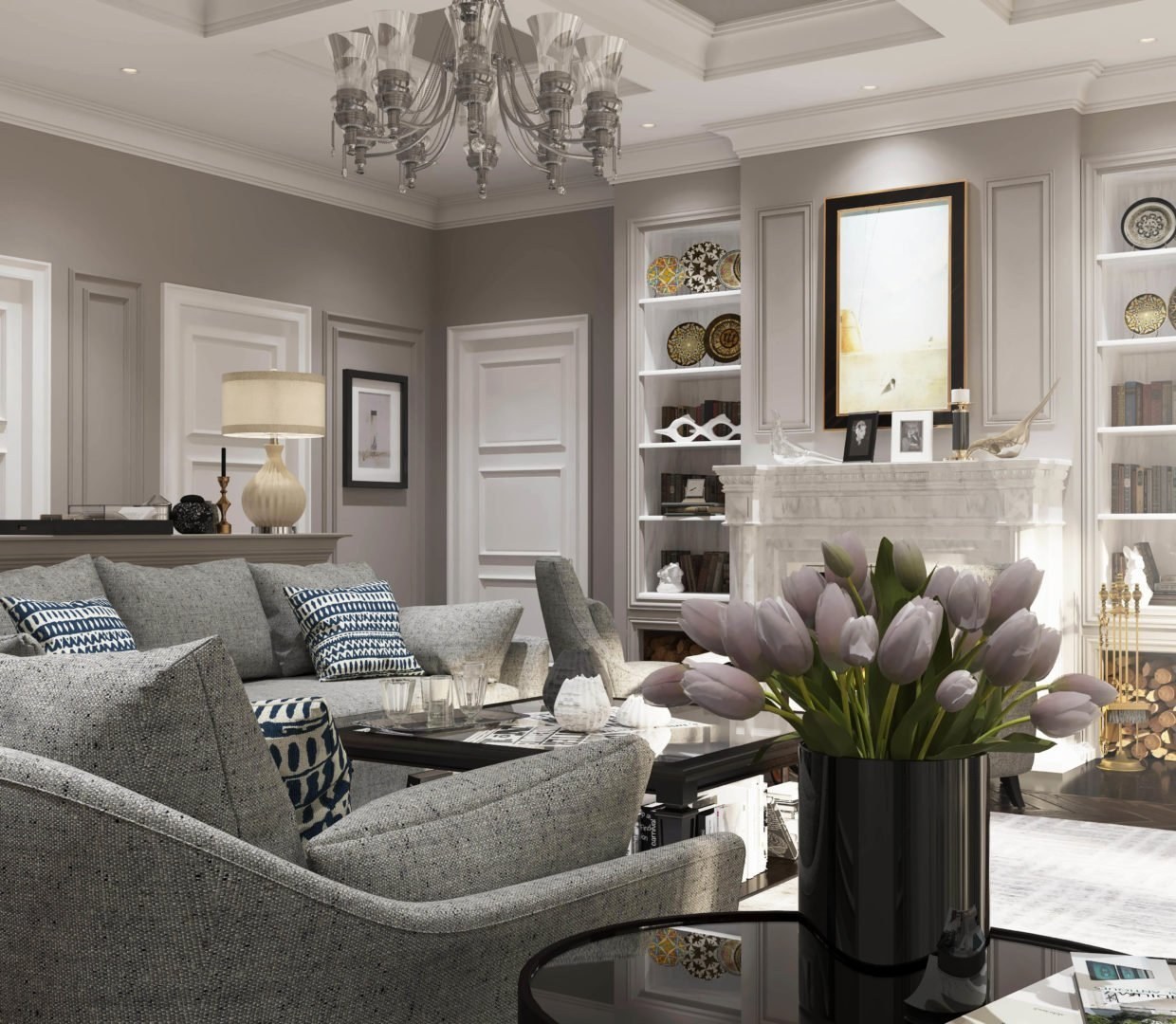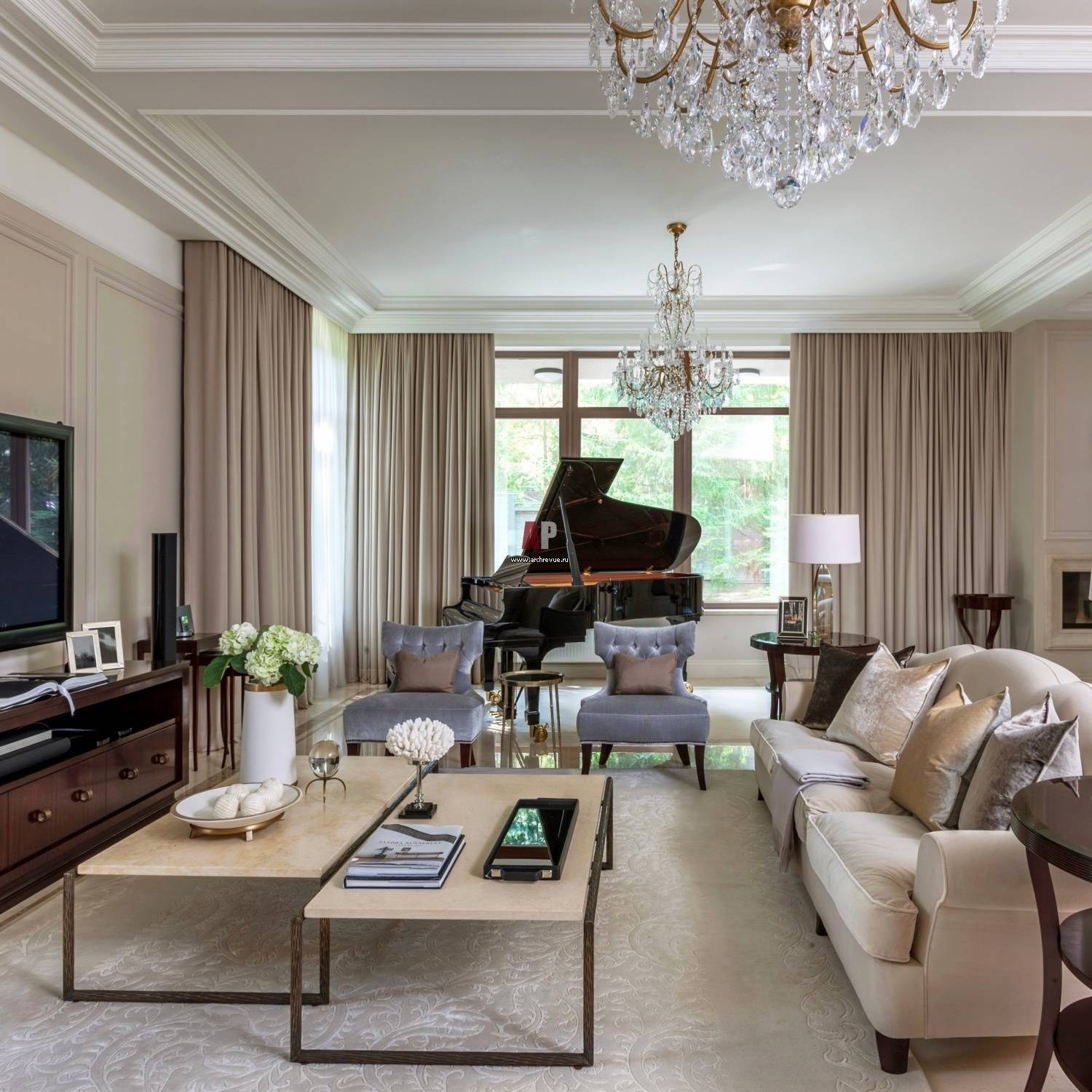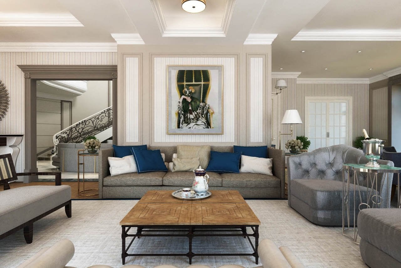 Американская Неоклассика в интерьере гостиной