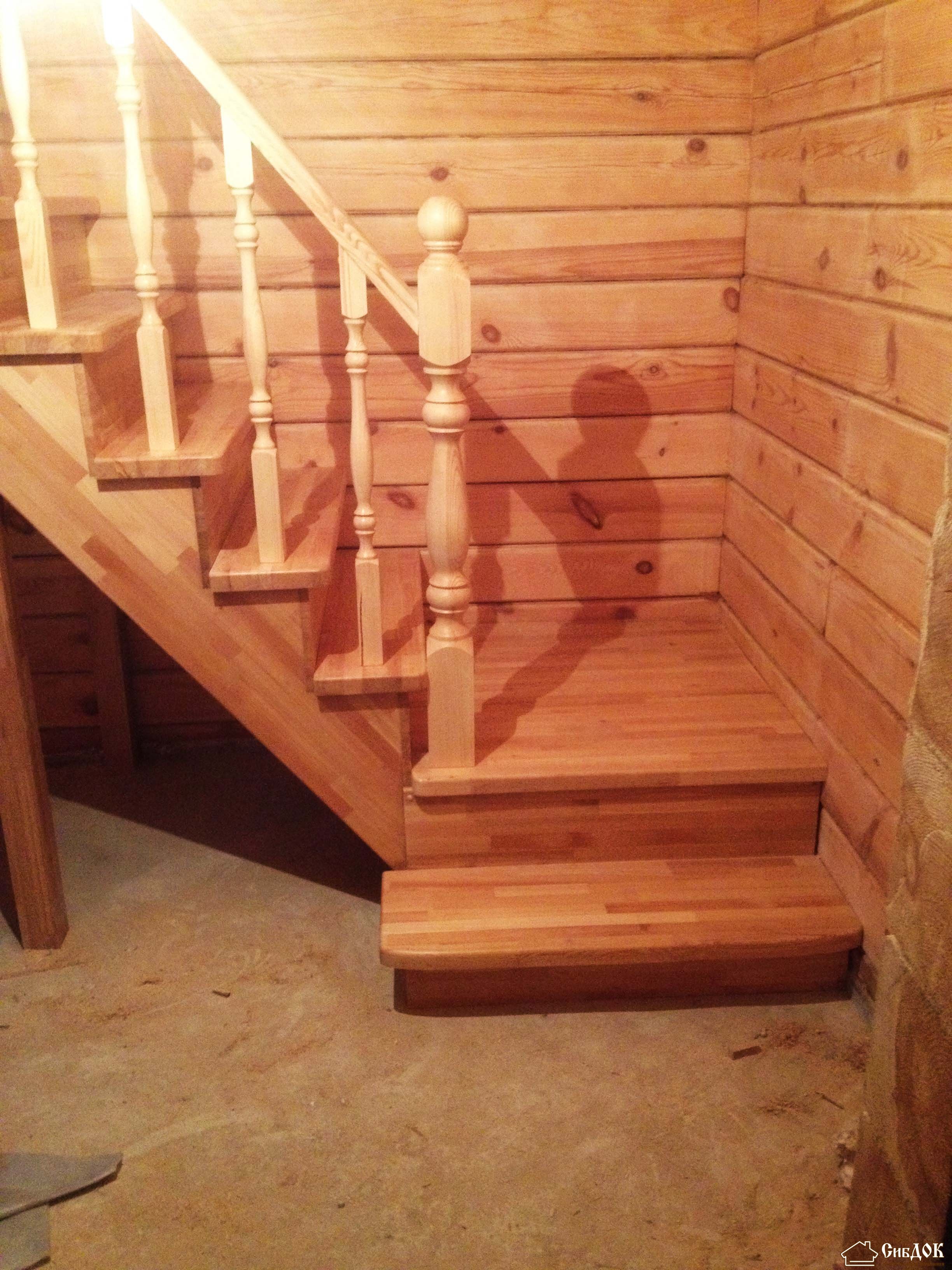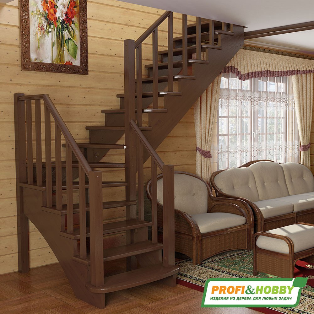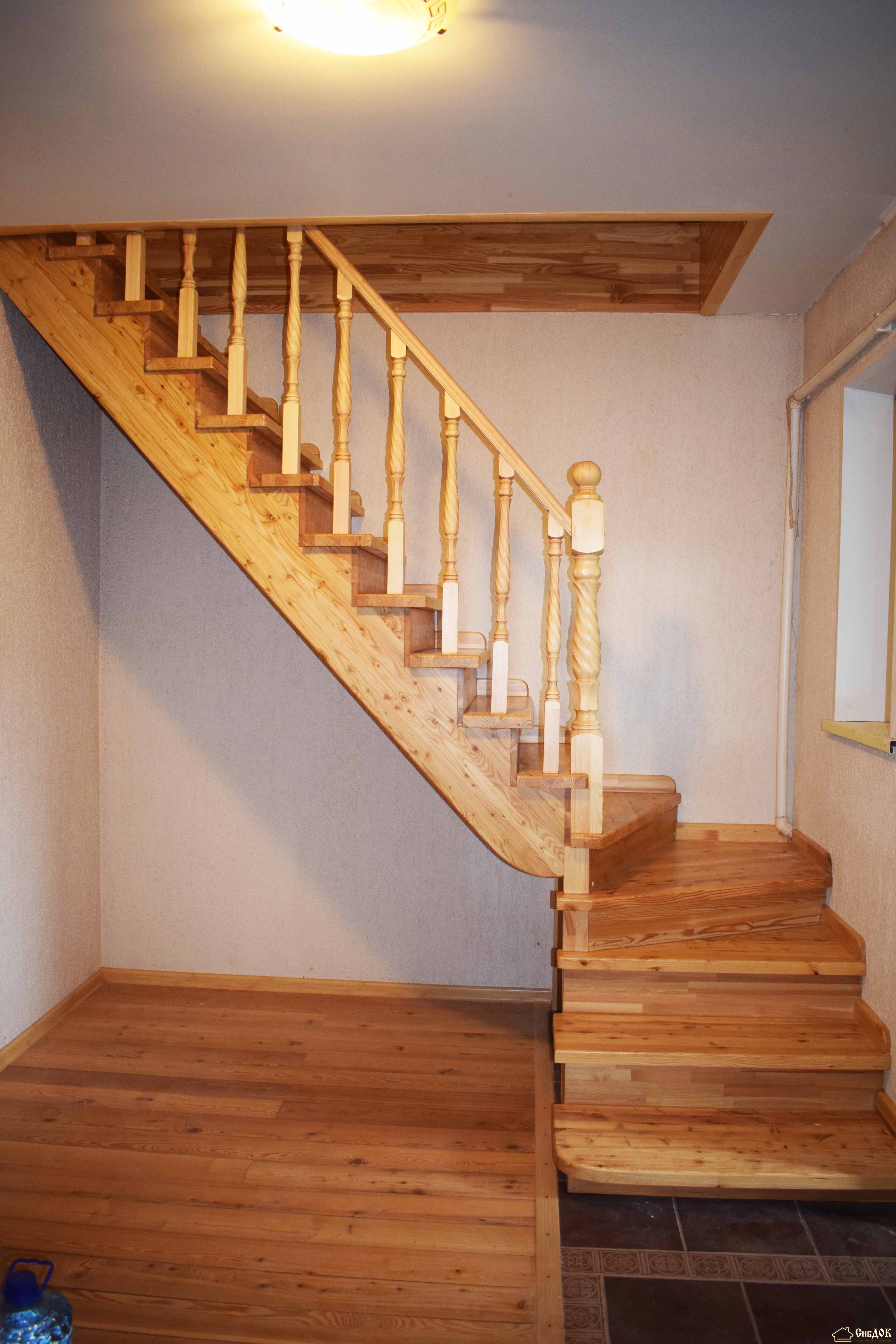 Деревянная лестница 180 градусов на второй этаж с забежными ступенями
