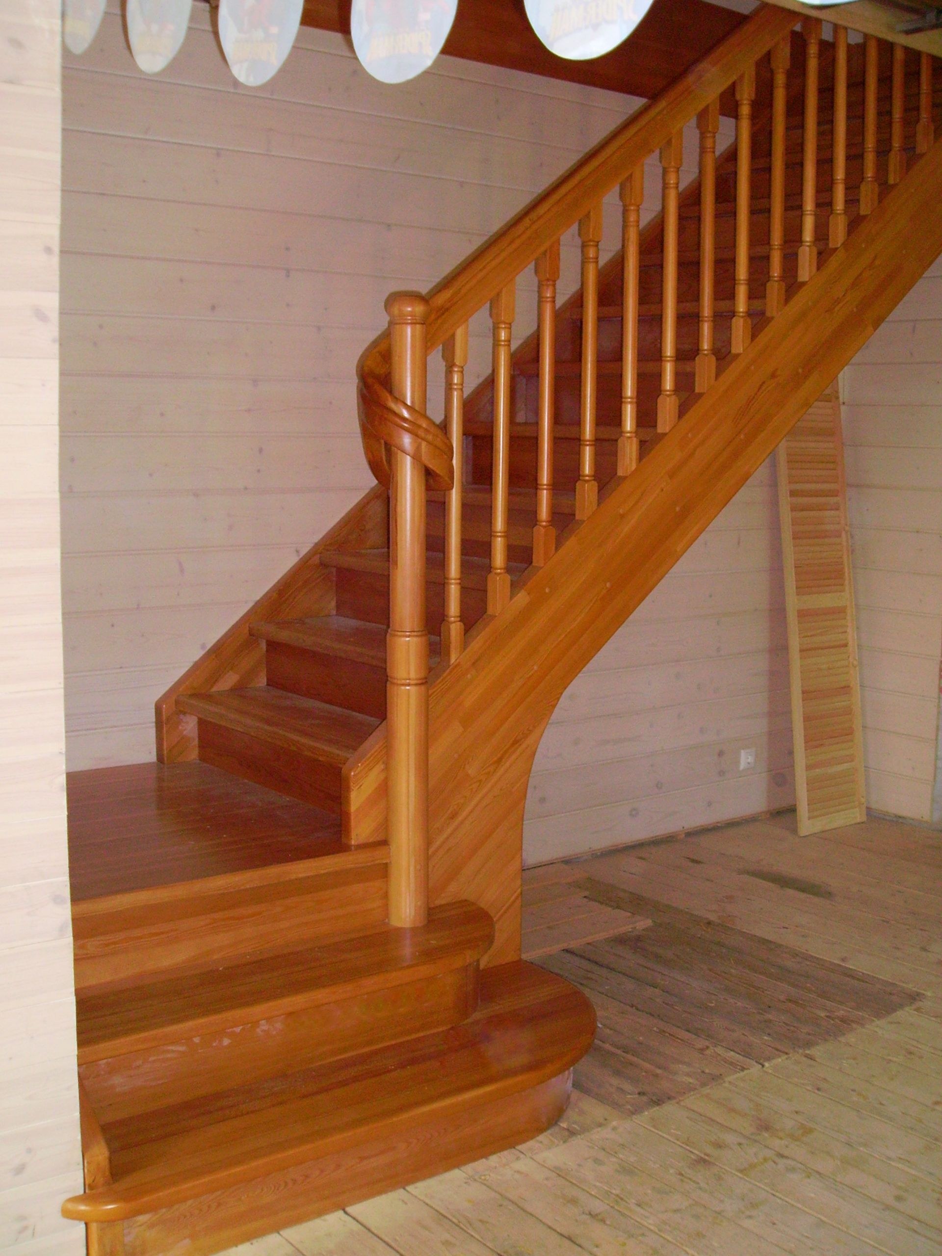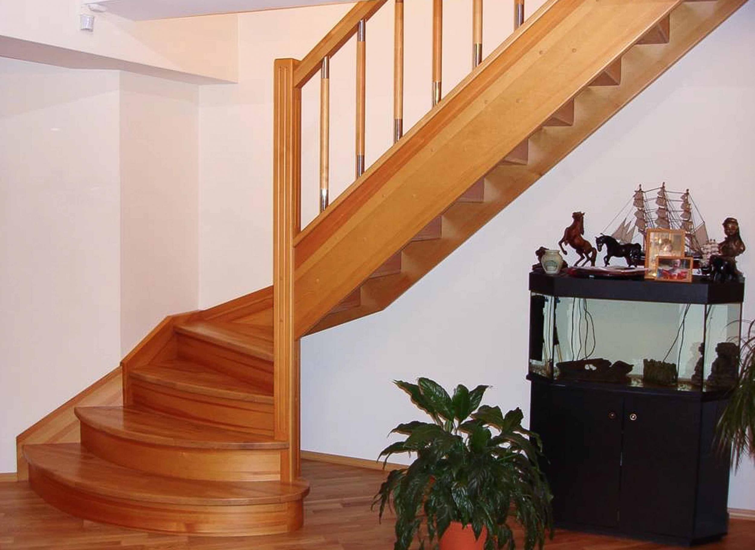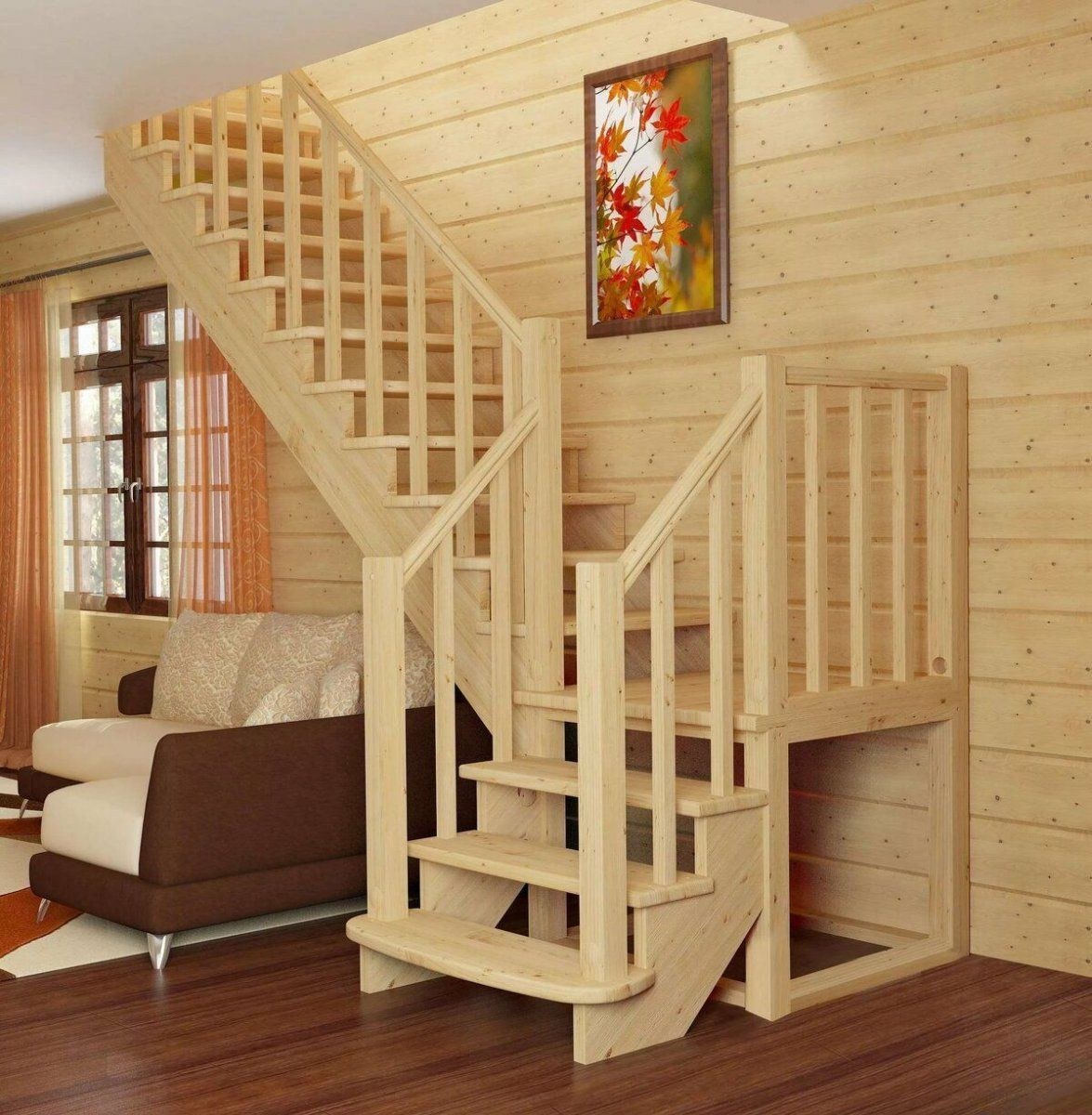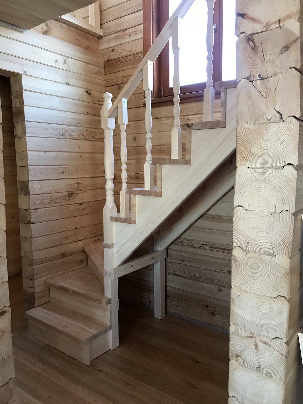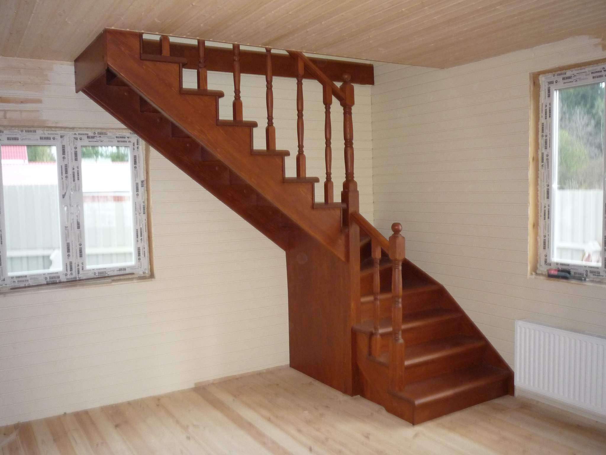 Деревянная лестница на второй этаж в частном доме с поворотом (55 фото)