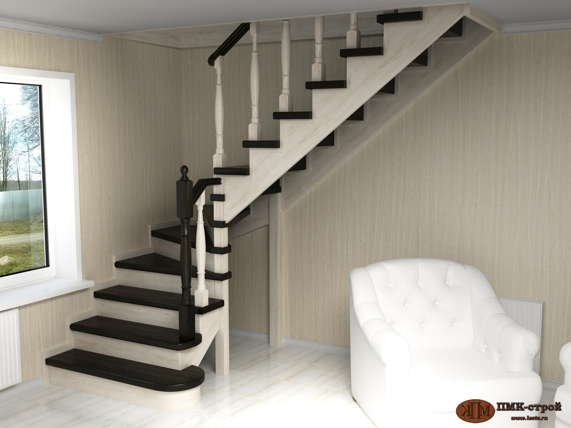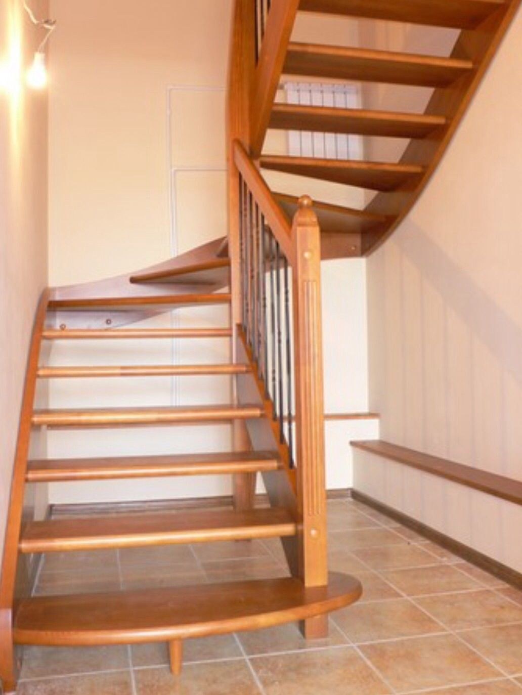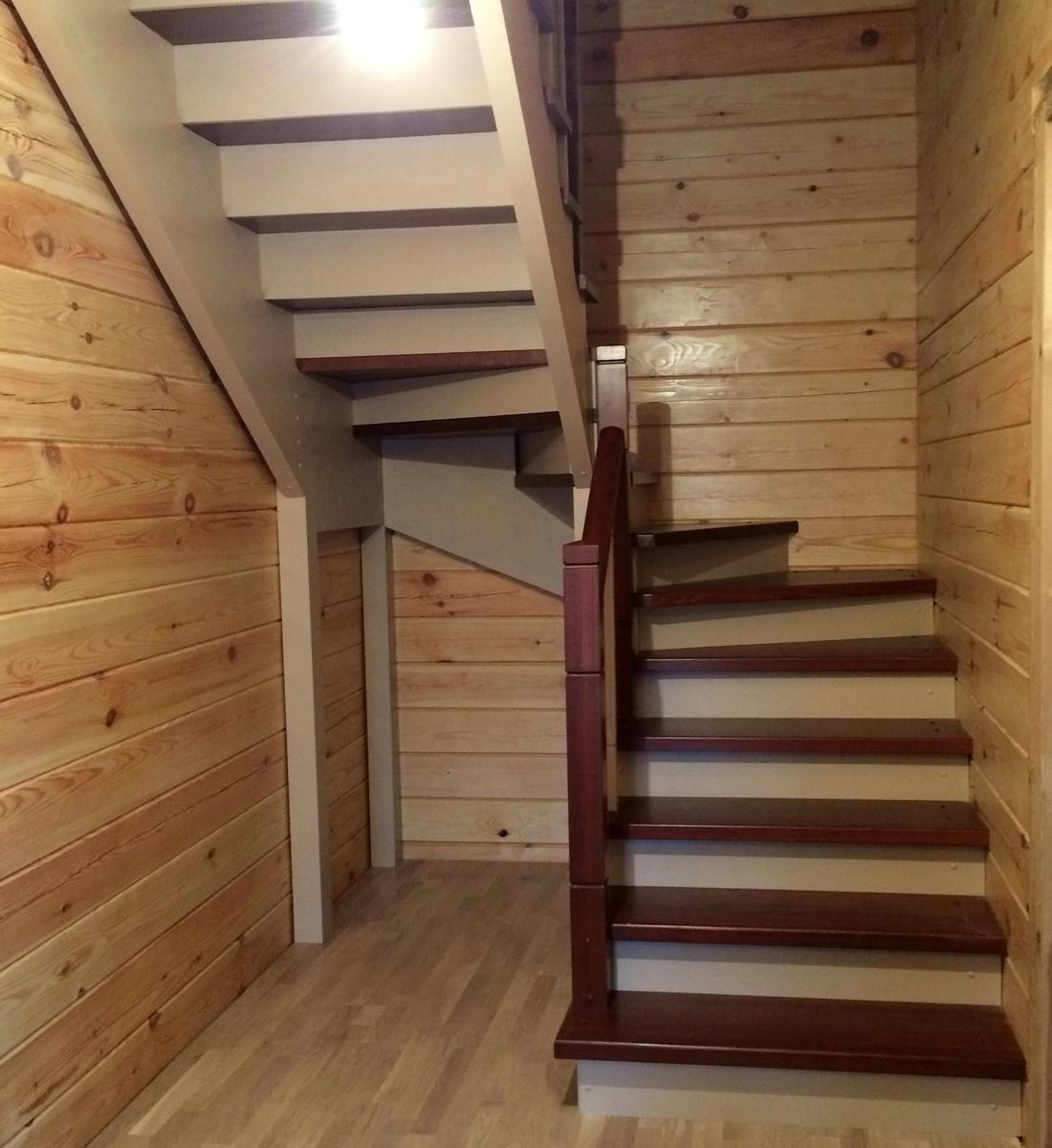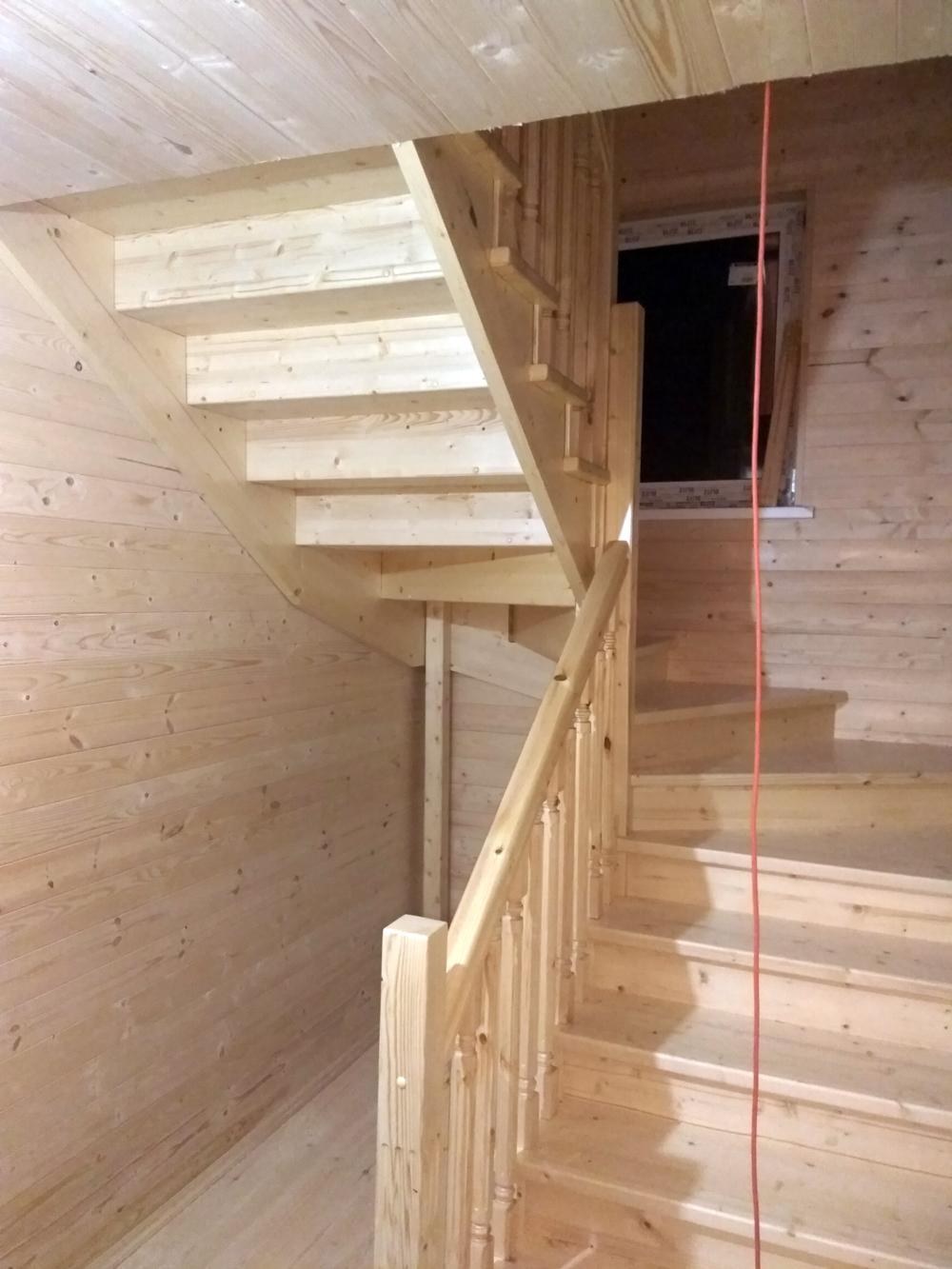 Деревянная лестница на второй этаж в частном доме с поворотом (55 фото)