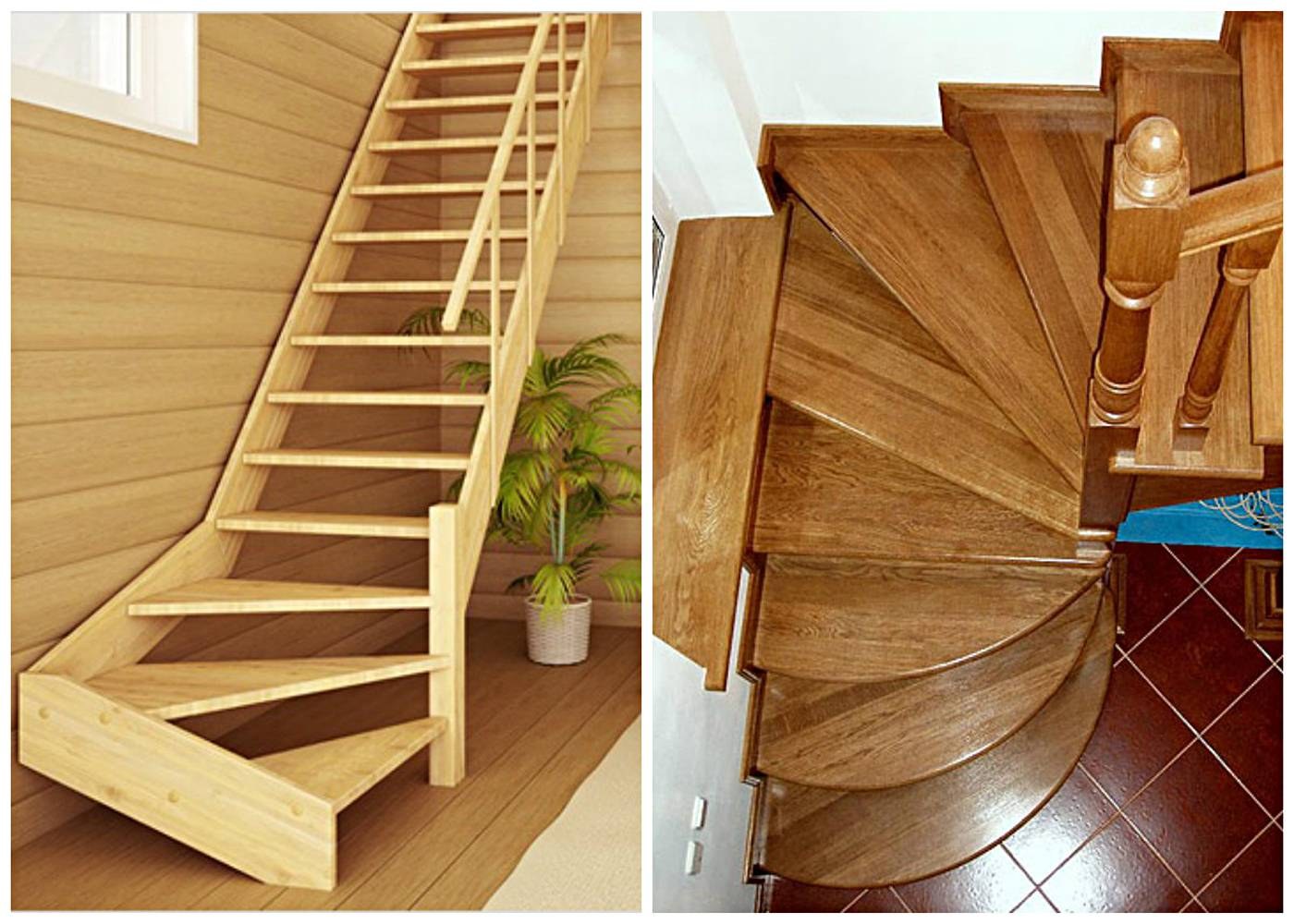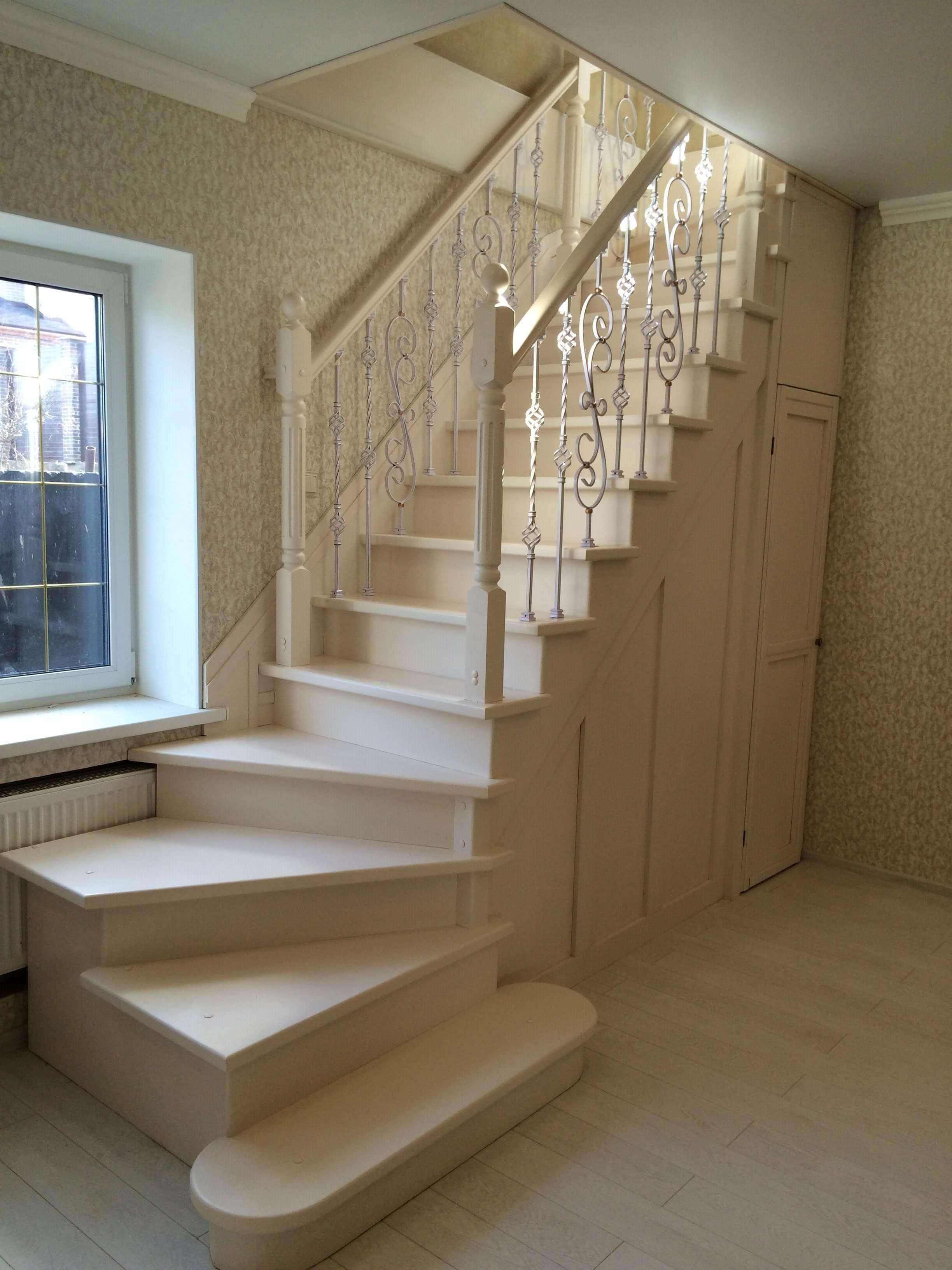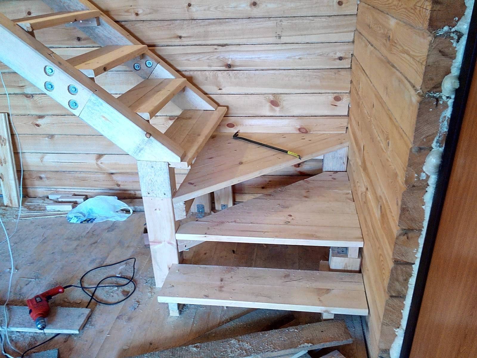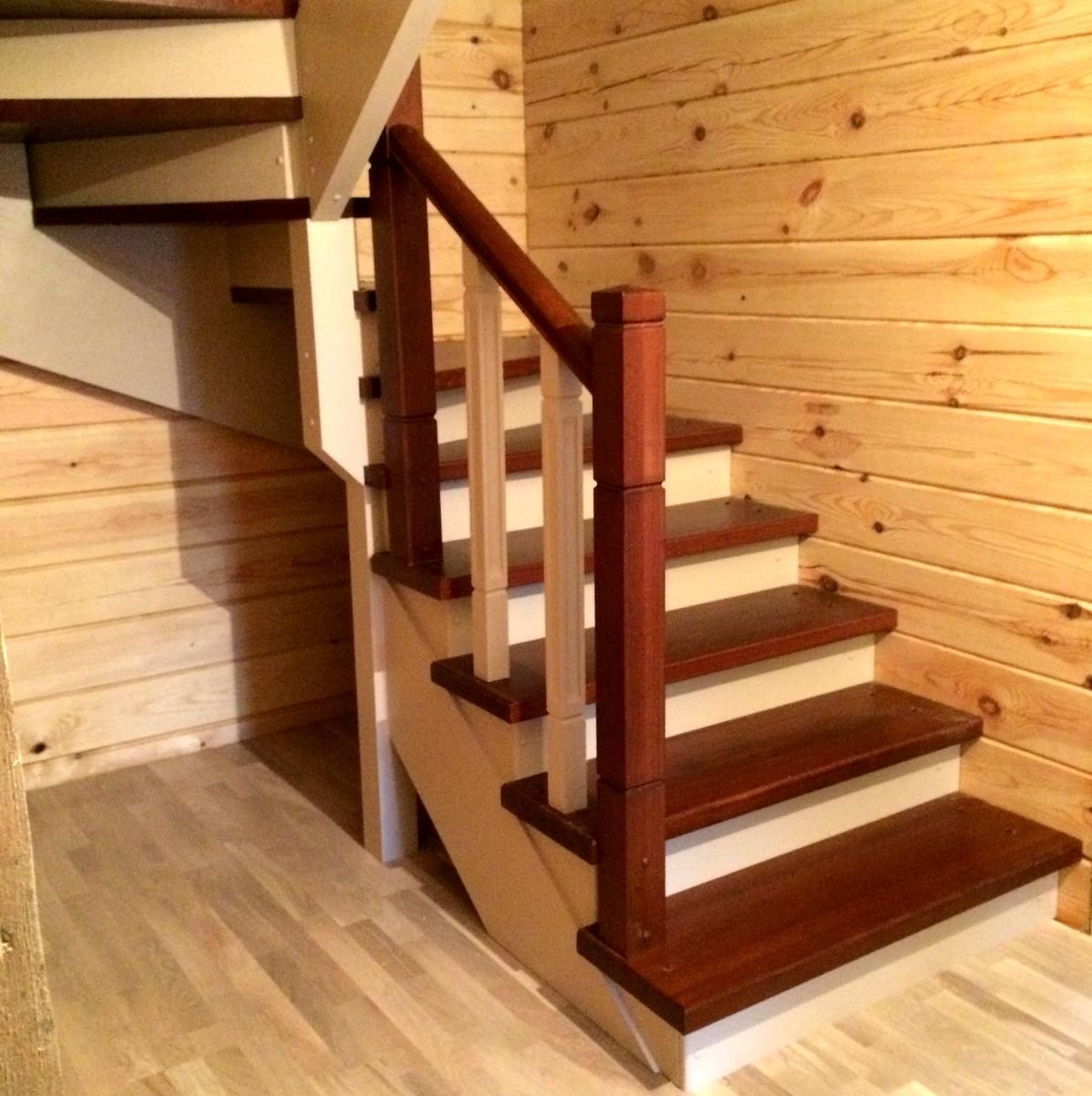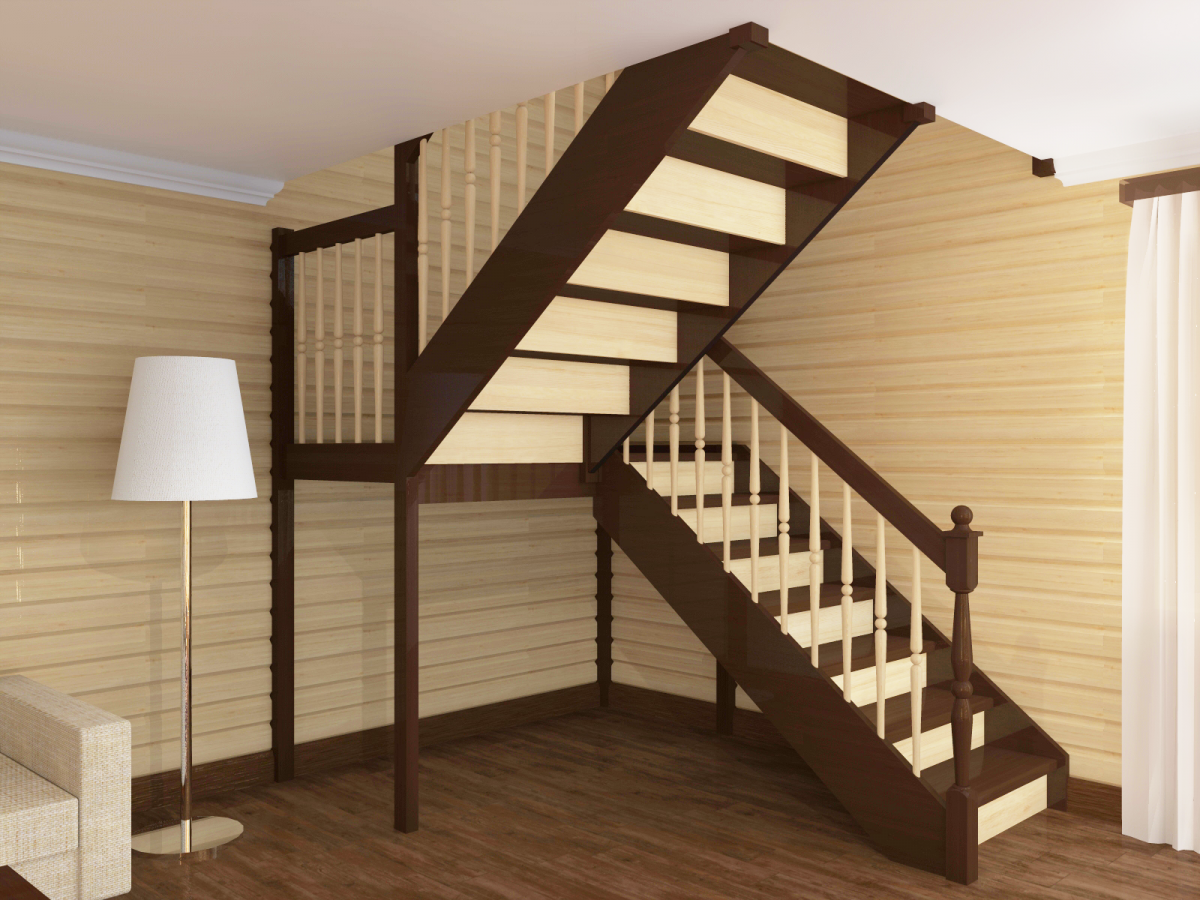 Деревянная лестница на второй этаж в частном доме с поворотом (55 фото)