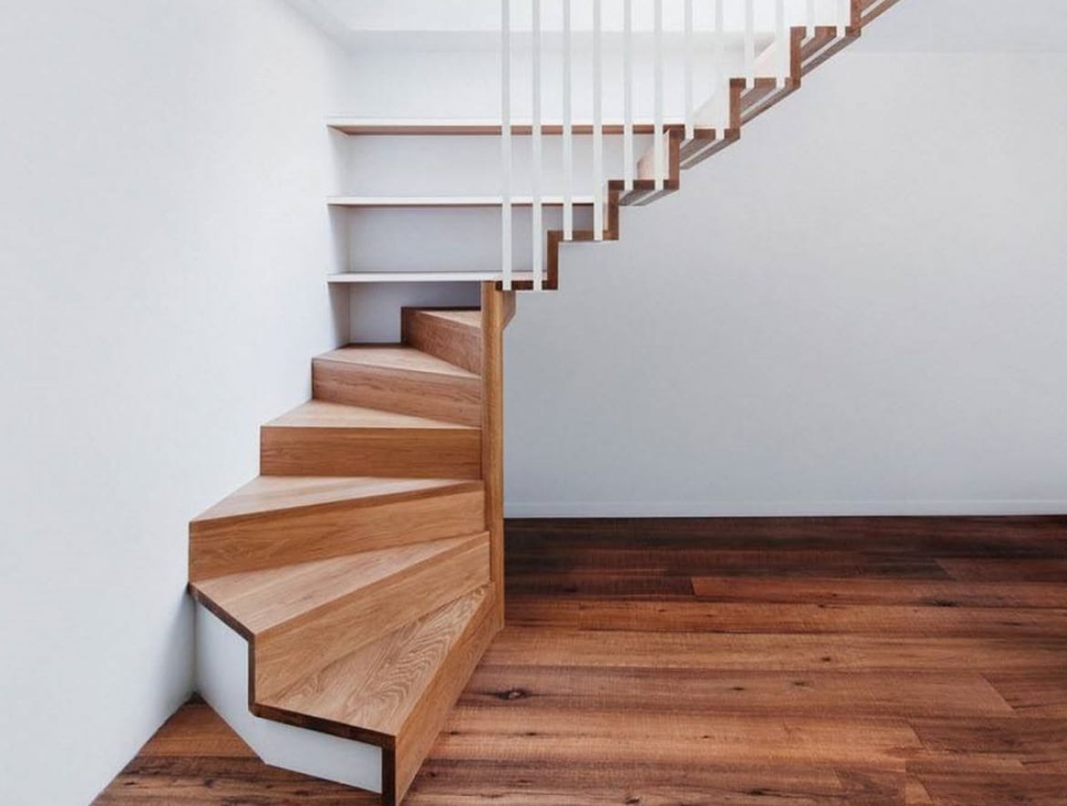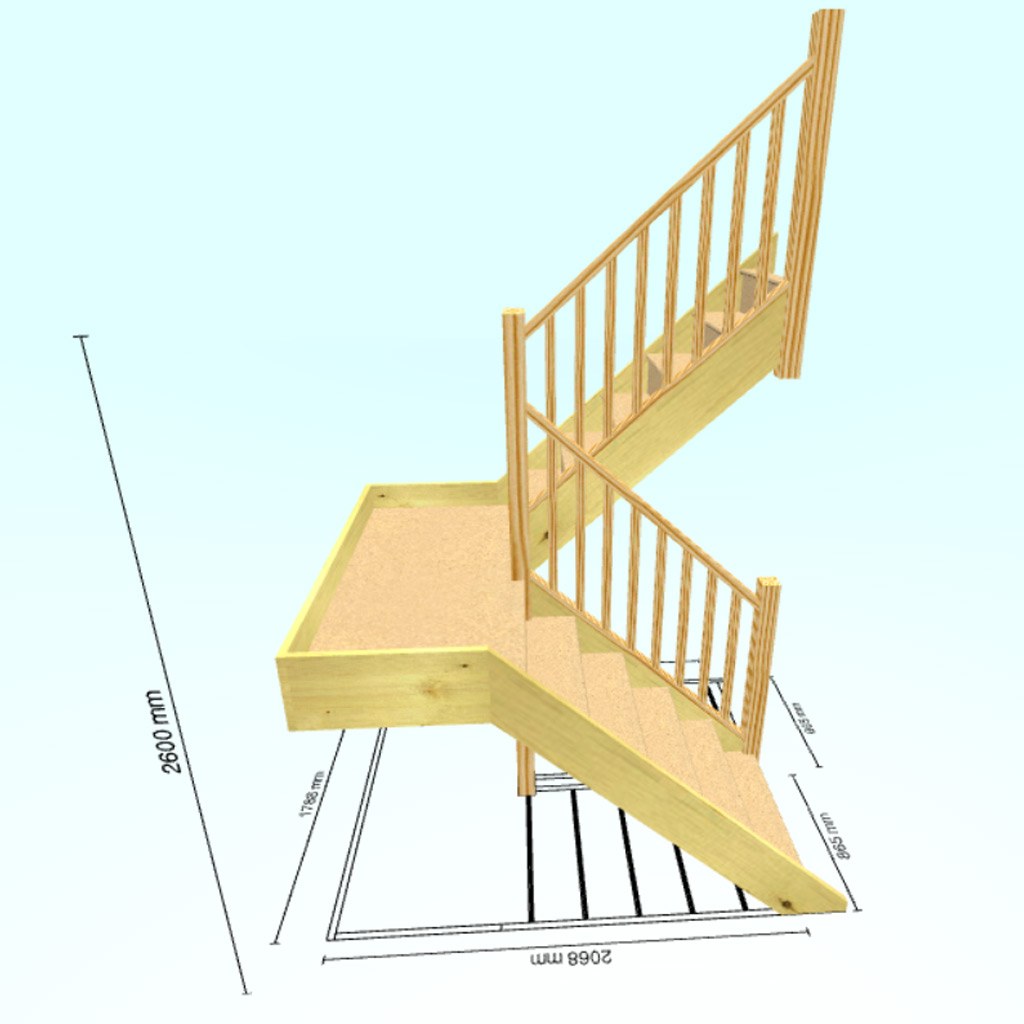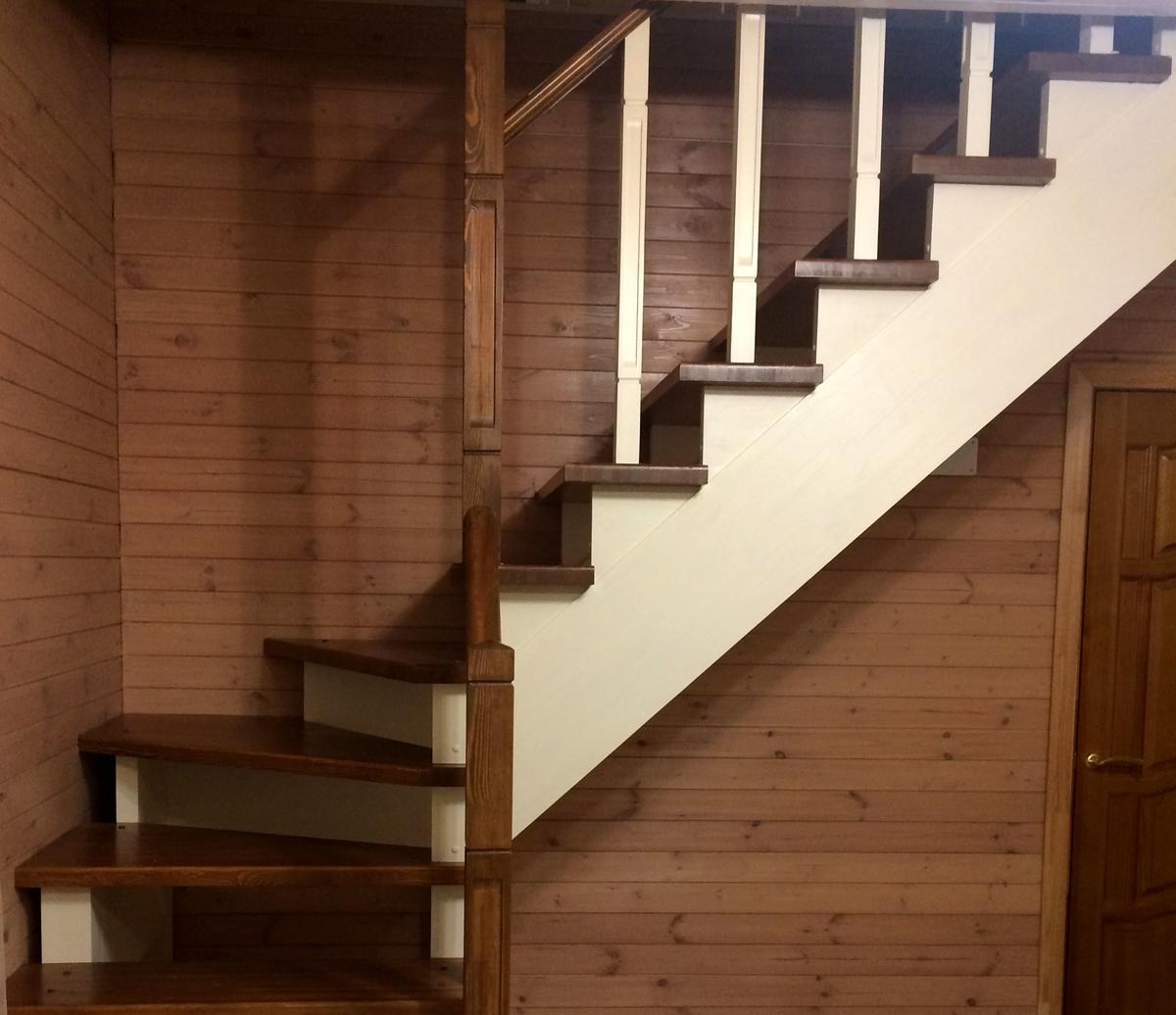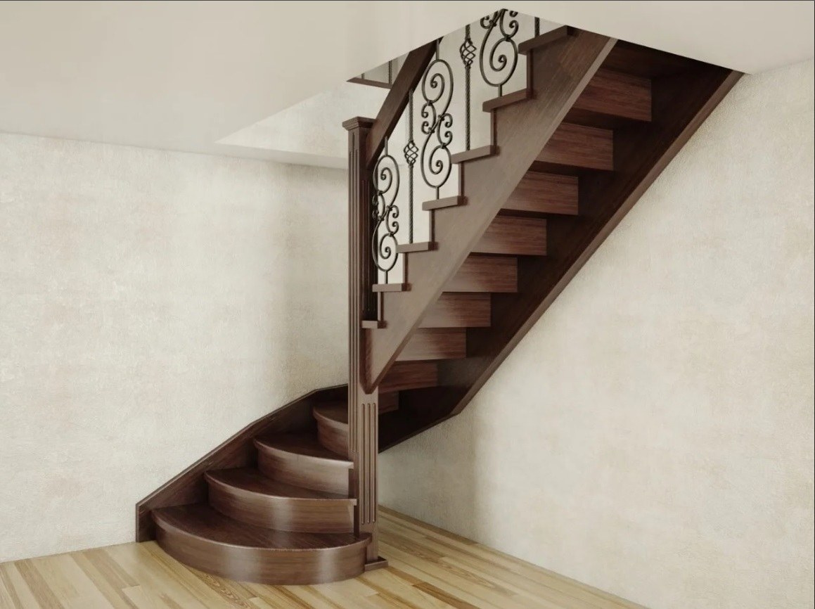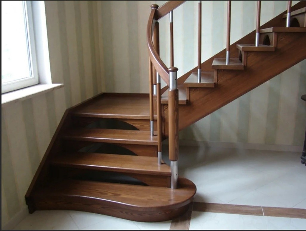 Лестница на второй этаж 90 градусов с забежными ступенями