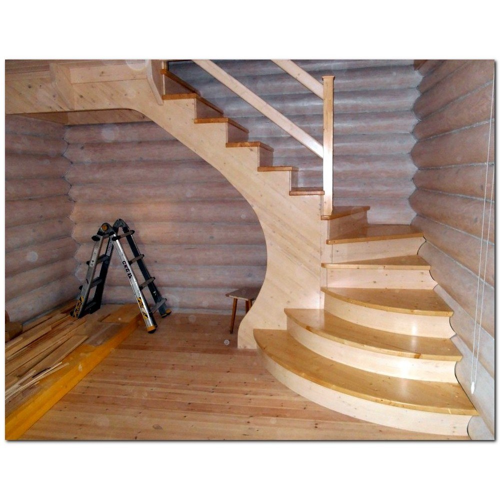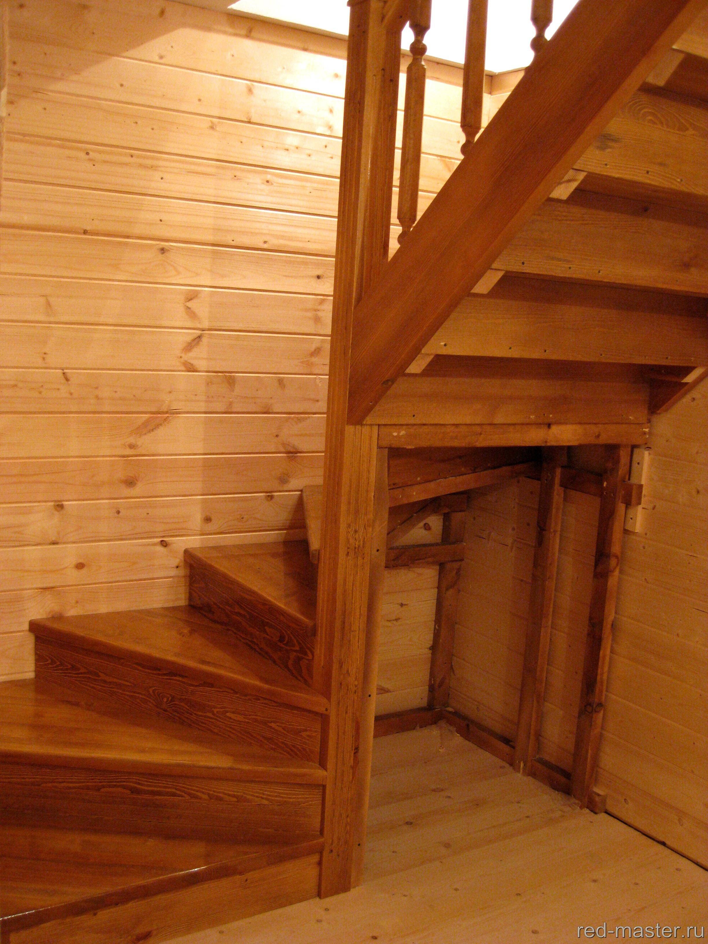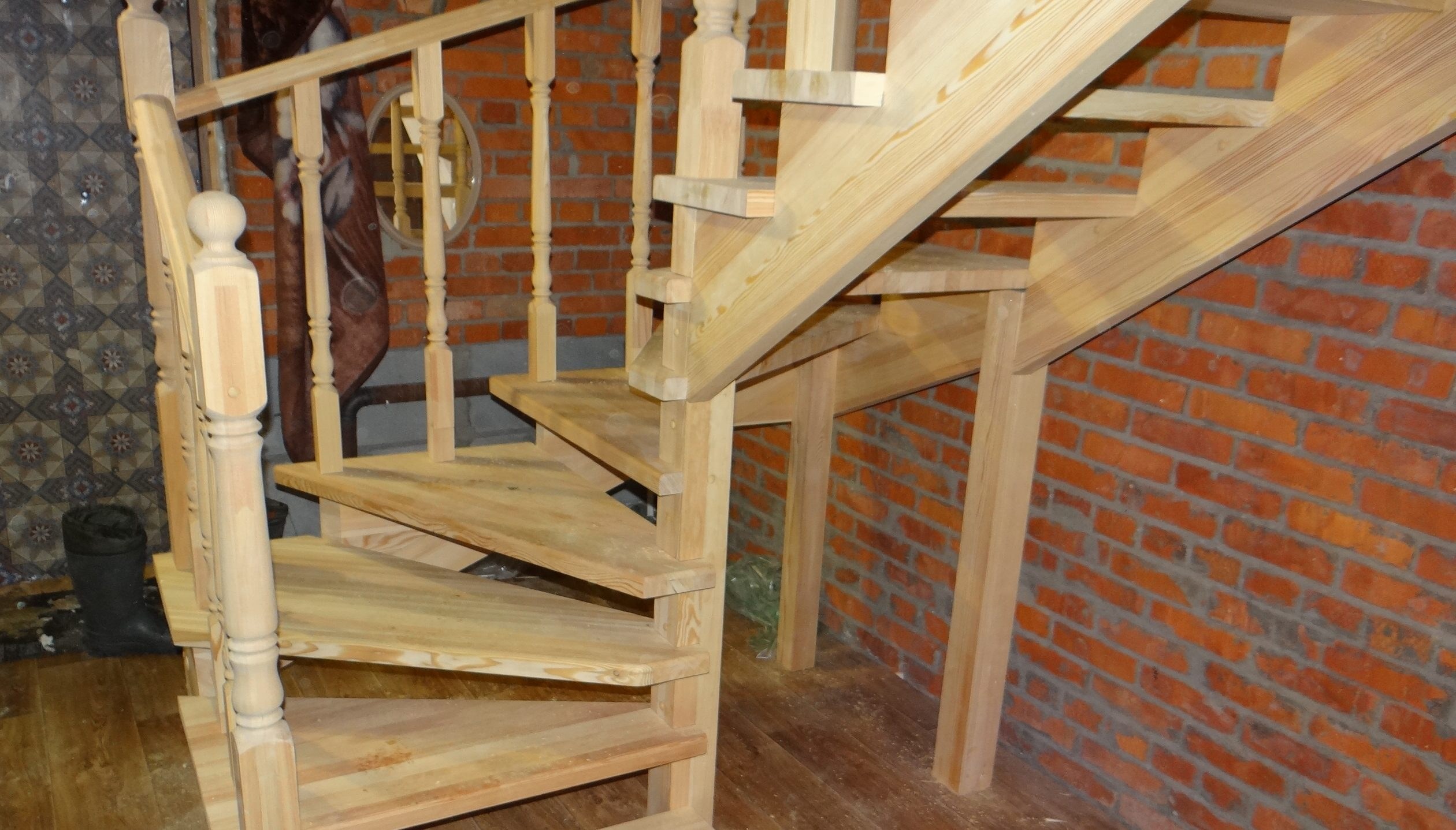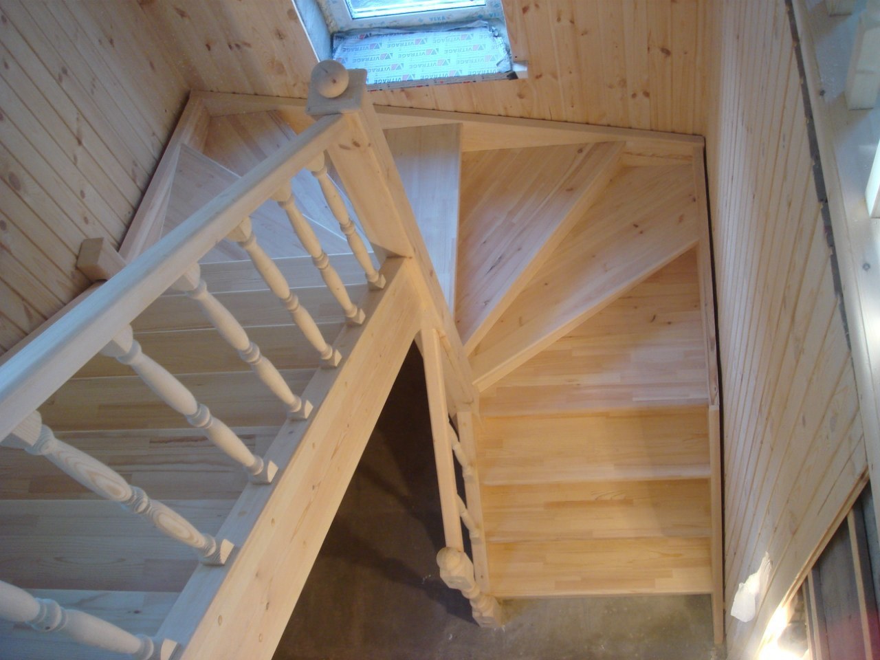 Лестница на второй этаж деревянная с забежными ступенями 90 градусов