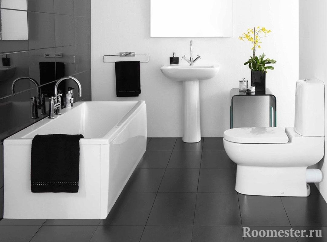 Черно белая ванная