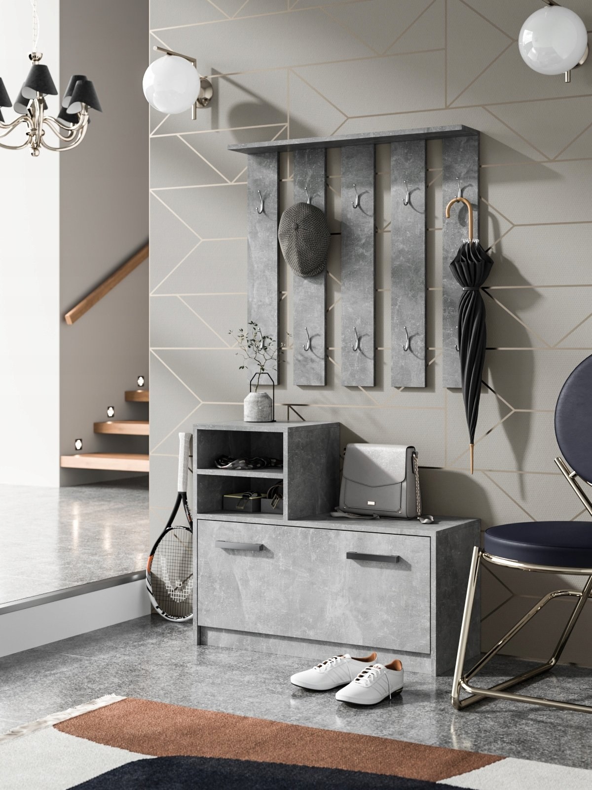 Вешалка в прихожую настенная под бетон