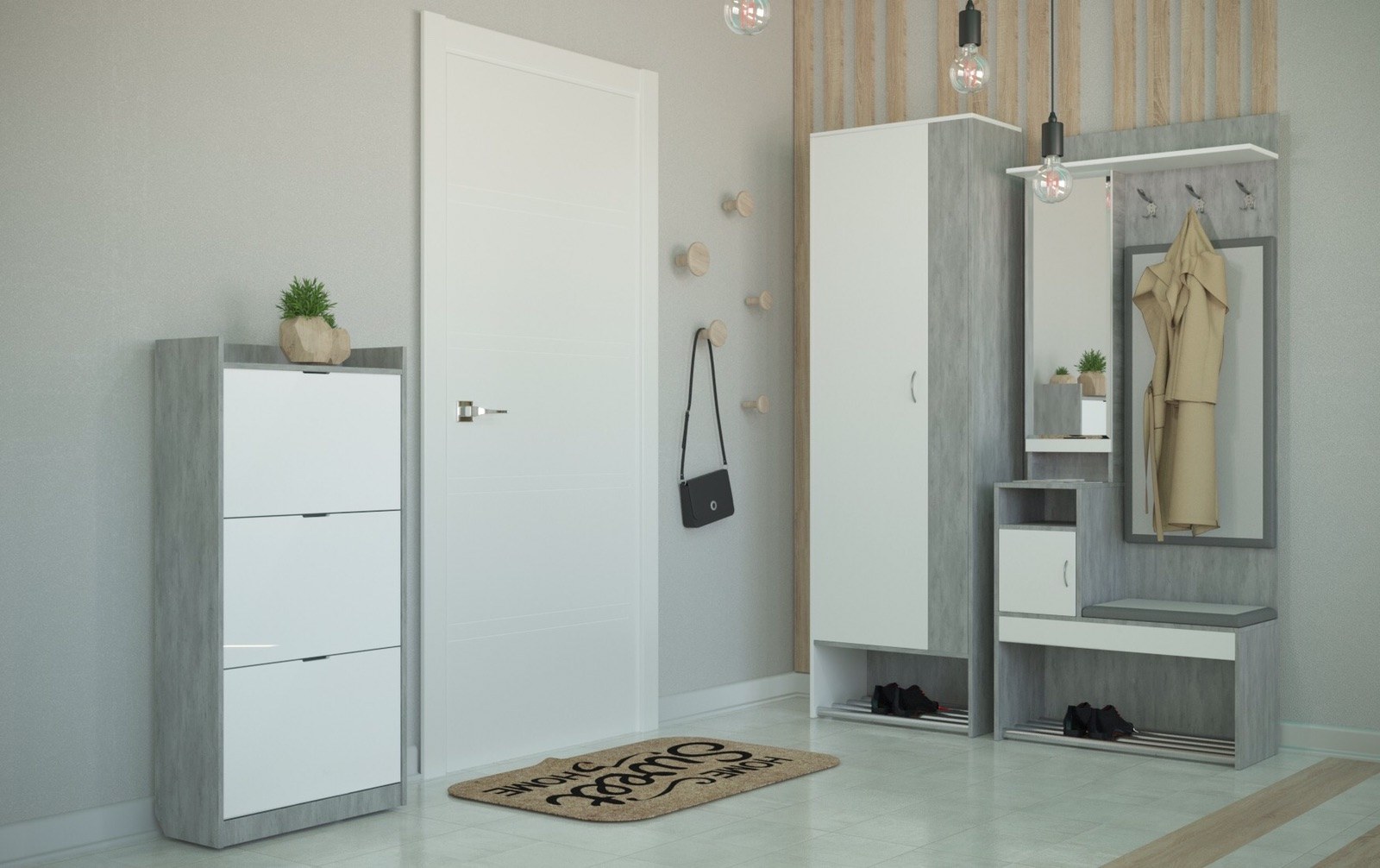 Прихожая серая с белым