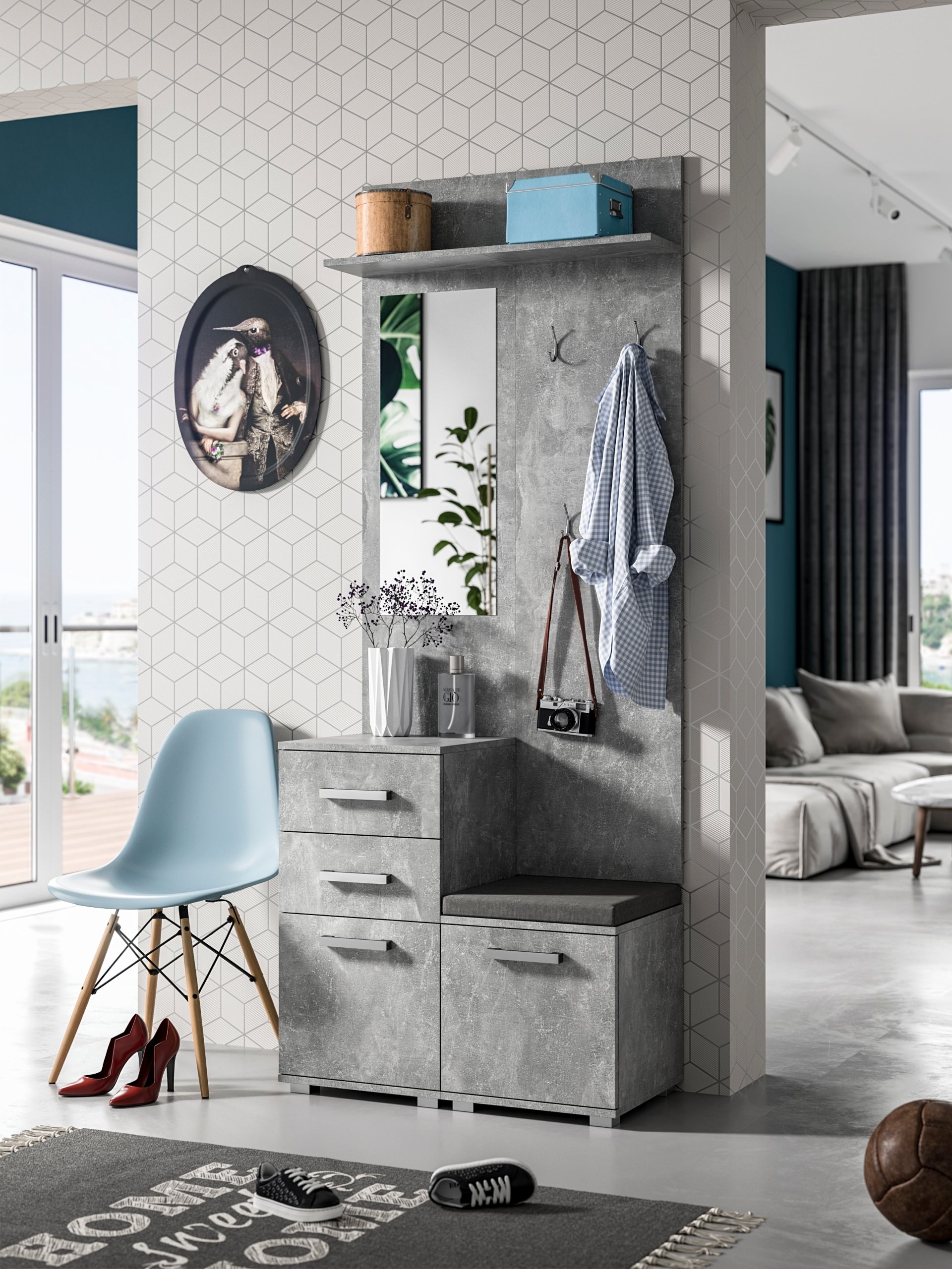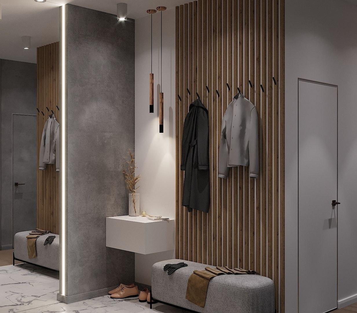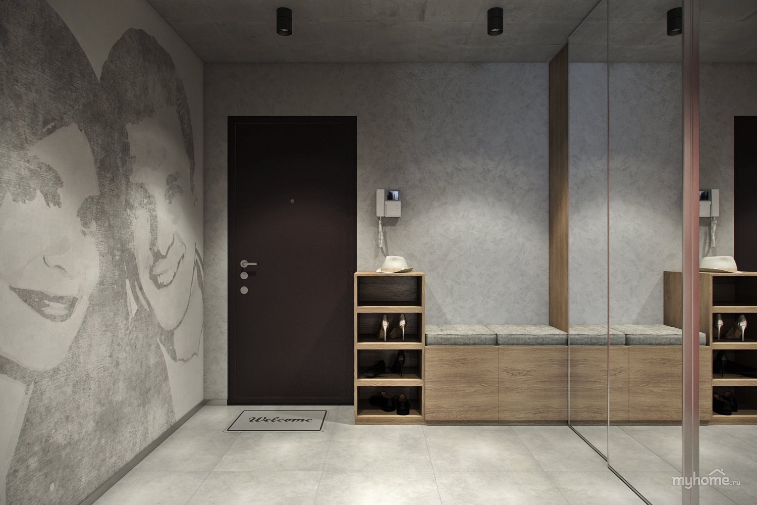 Прихожая бетонного цвета